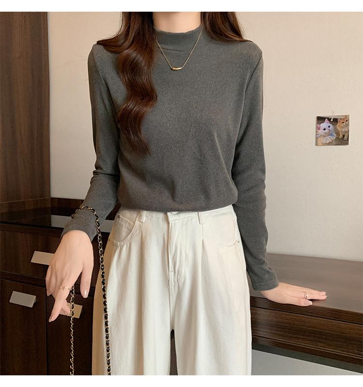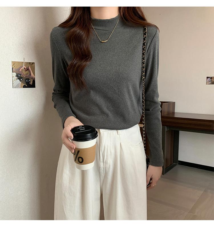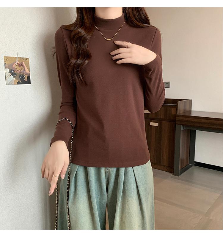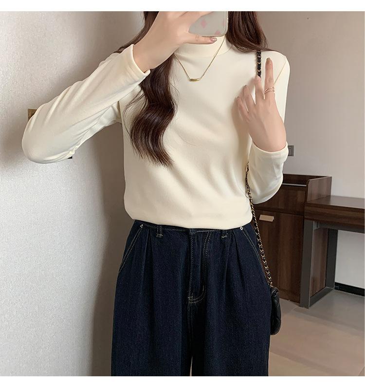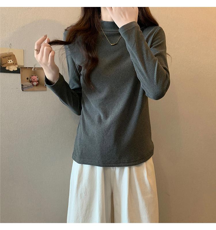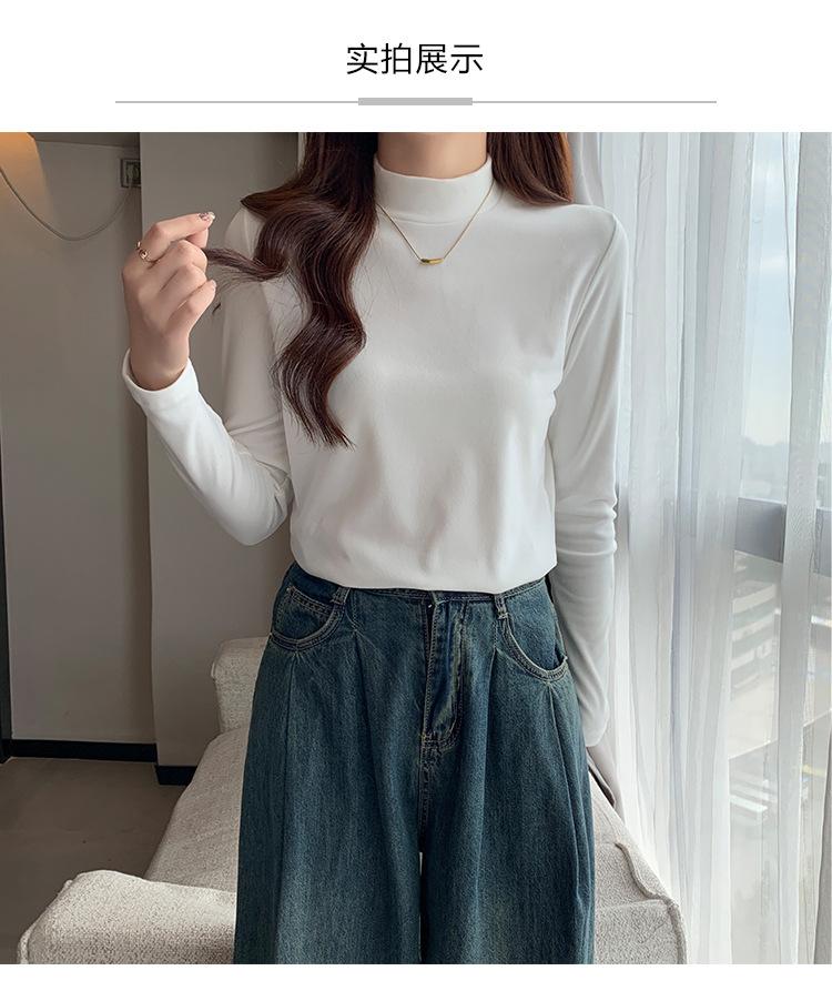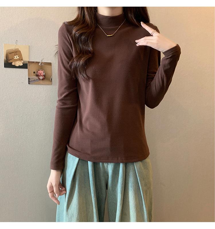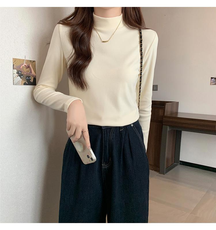 Camiseta básica de cuello alto de terciopelo de doble cara engrosada y cálida para mujer, ropa interior de otoño e invierno con forro polar, moda femenina