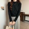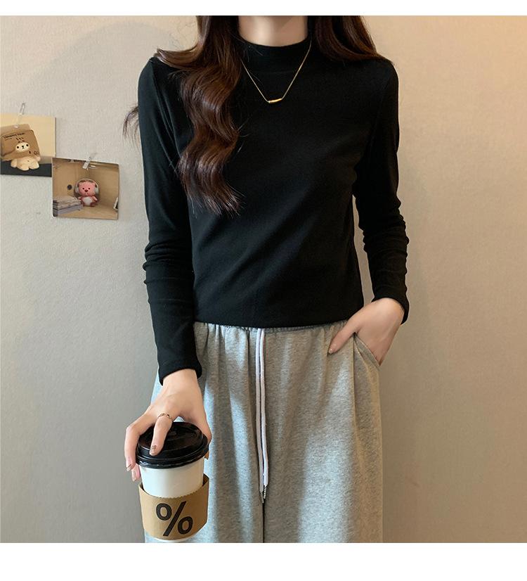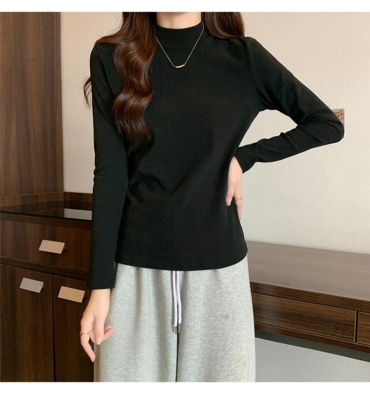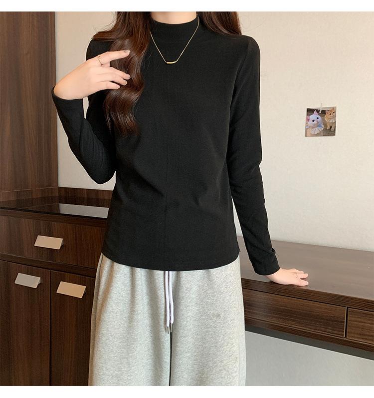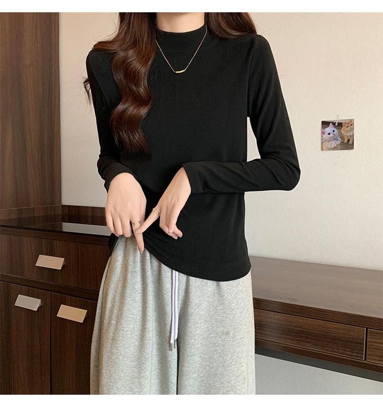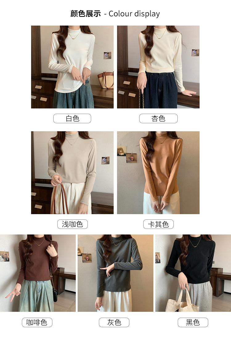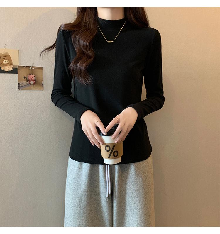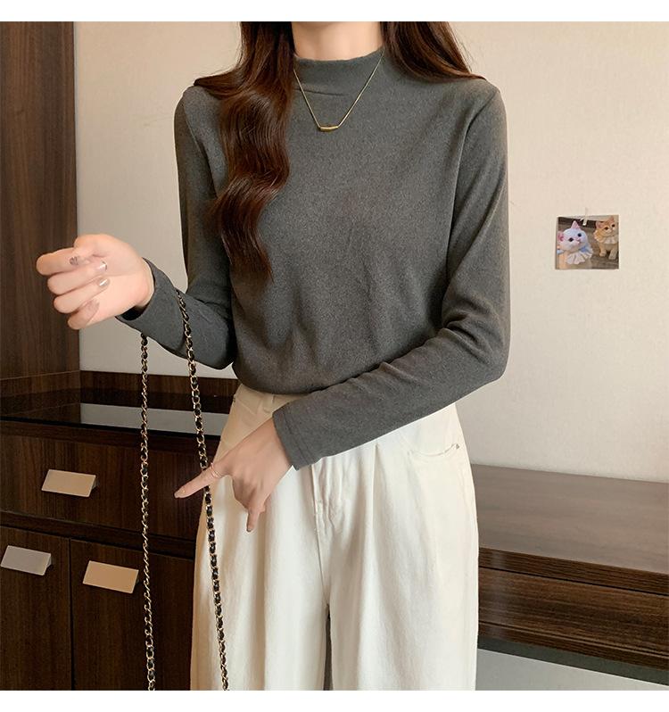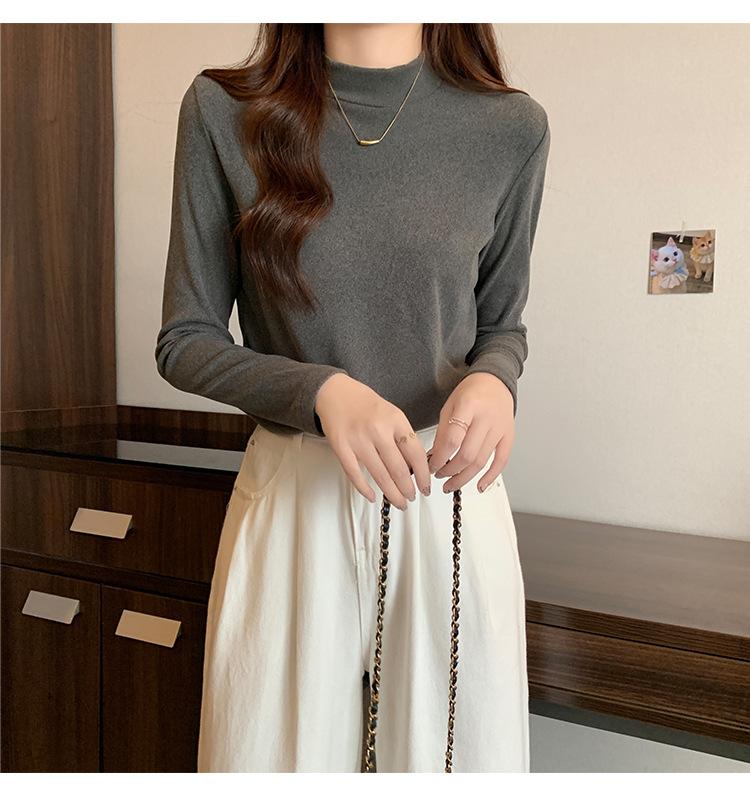 Camiseta básica de cuello alto de terciopelo de doble cara engrosada y cálida para mujer, ropa interior de otoño e invierno con forro polar, moda femenina