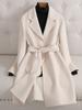 Prenda exterior de cachemira de doble cara para mujer de largo medio 2025 otoño e invierno nueva moda delgada elegante prenda exterior de lana para personas pequeñas