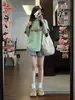 Camiseta de Algodón Puro Pesado Verde Manga Corta para Mujer Verano Trendy Marca Holgada Diseño Nicho Sentido Estilo Americano Manga Media Holgada