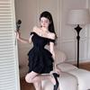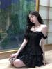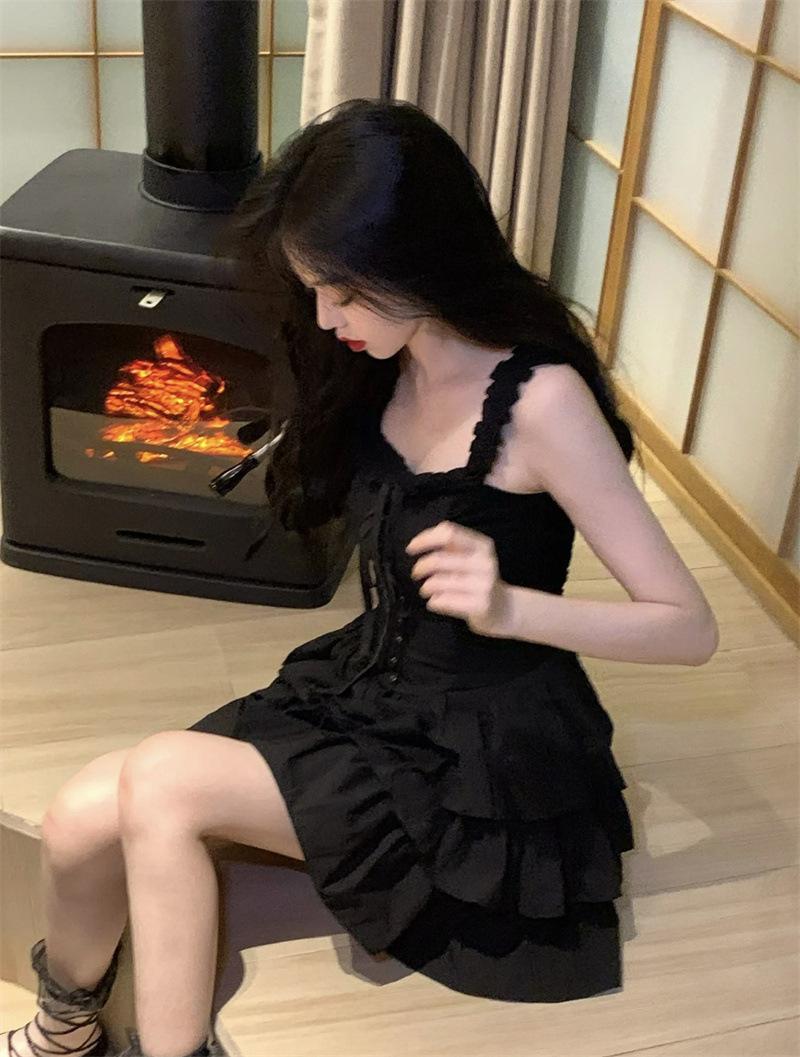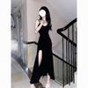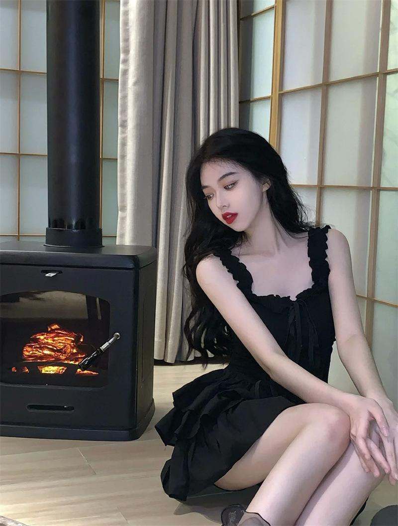 Vestido francés de verano para mujer, sexy, con volantes, elegante, de alta gama, con falda corta, color negro.
