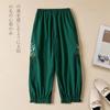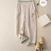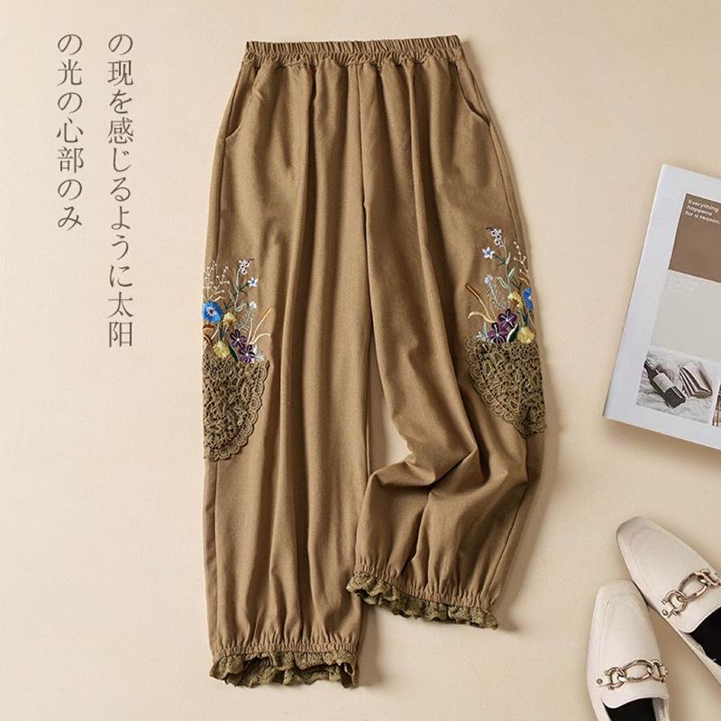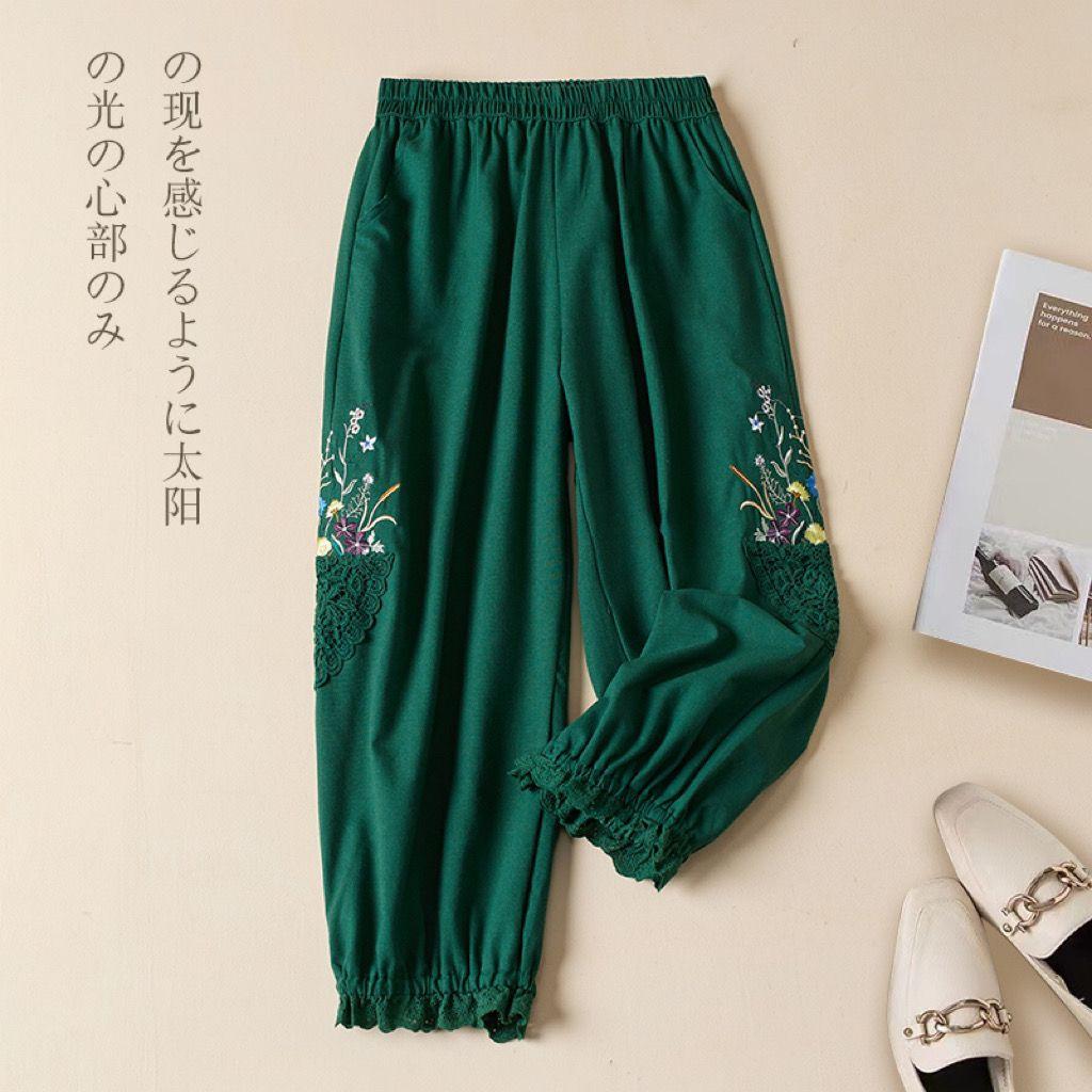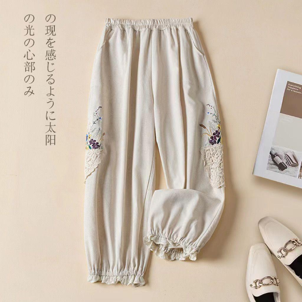 Verano 2025 Nuevo Algodón y Lino Bordado Chic Encaje Harem Pantalones Nueve Puntos Pantalones Casuales para Mujer Sueltos Modernos