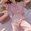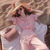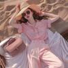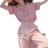 Conjunto de verano para mujer, hermoso y moderno estilo occidental europeo antiedad, ligero, de lujo, de alta gama, con pantalón casual rosa.