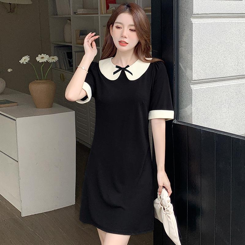 Vestido de cuello de muñeca estilo francés para mujer, novedad de verano 2024, dulce, fino, elegante, adelgazante, de manga corta, falda acampanada