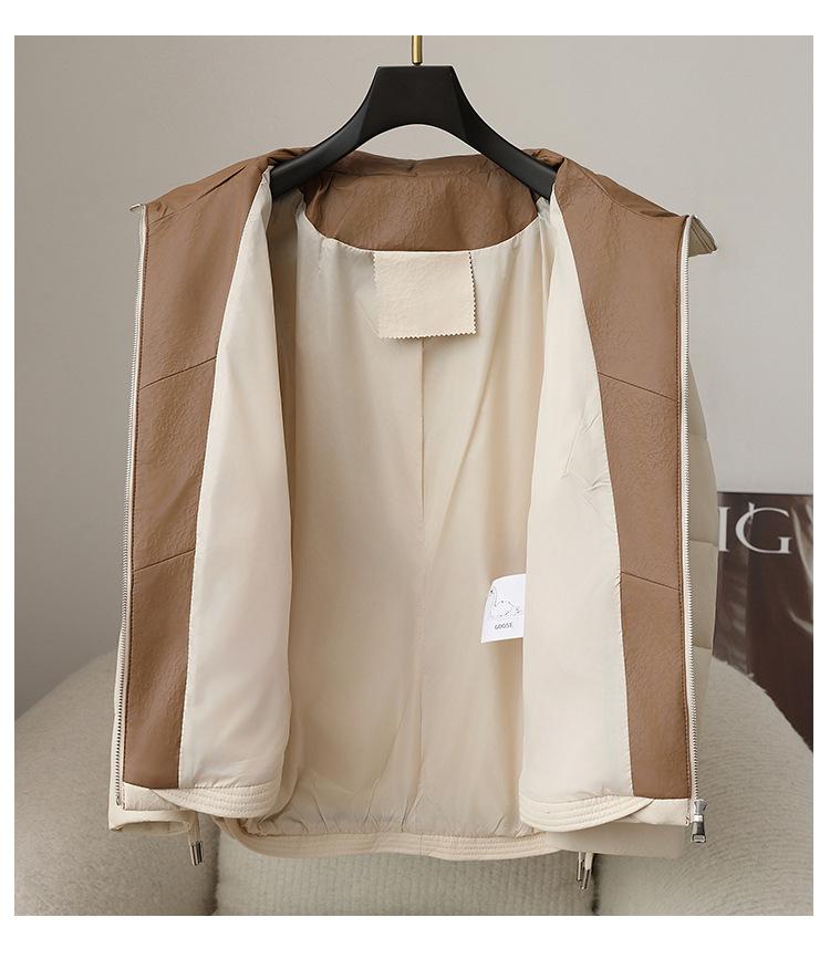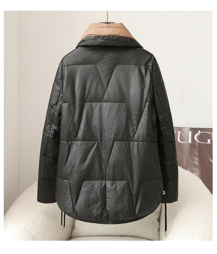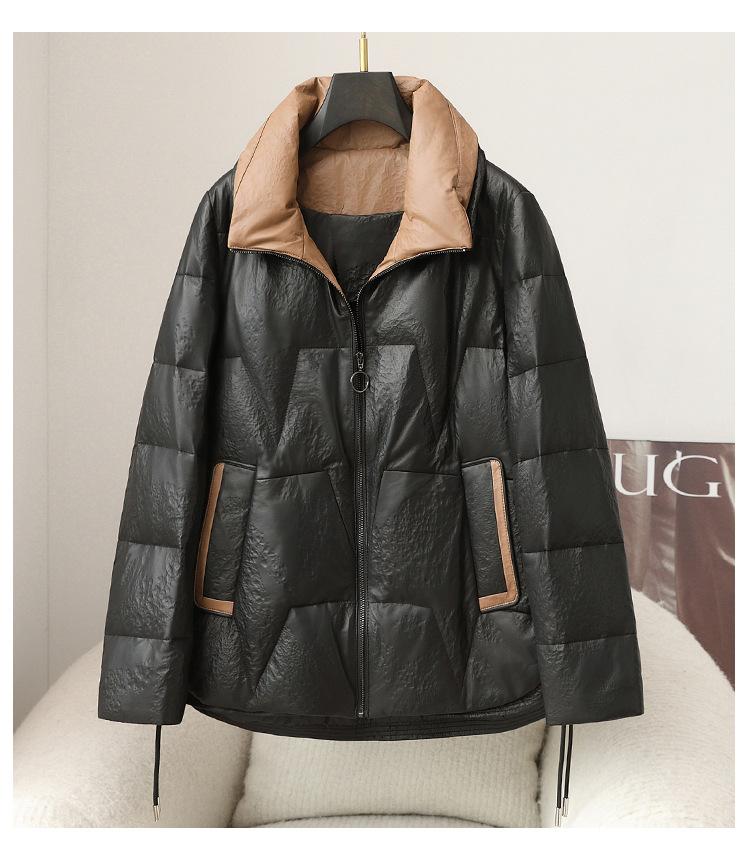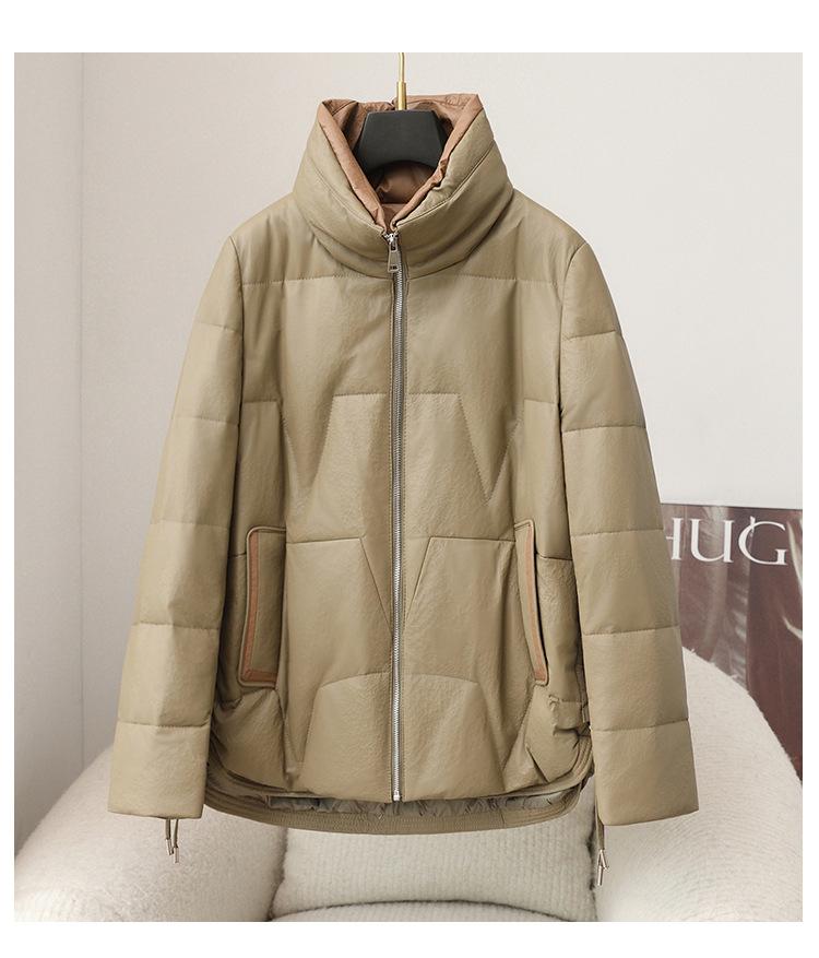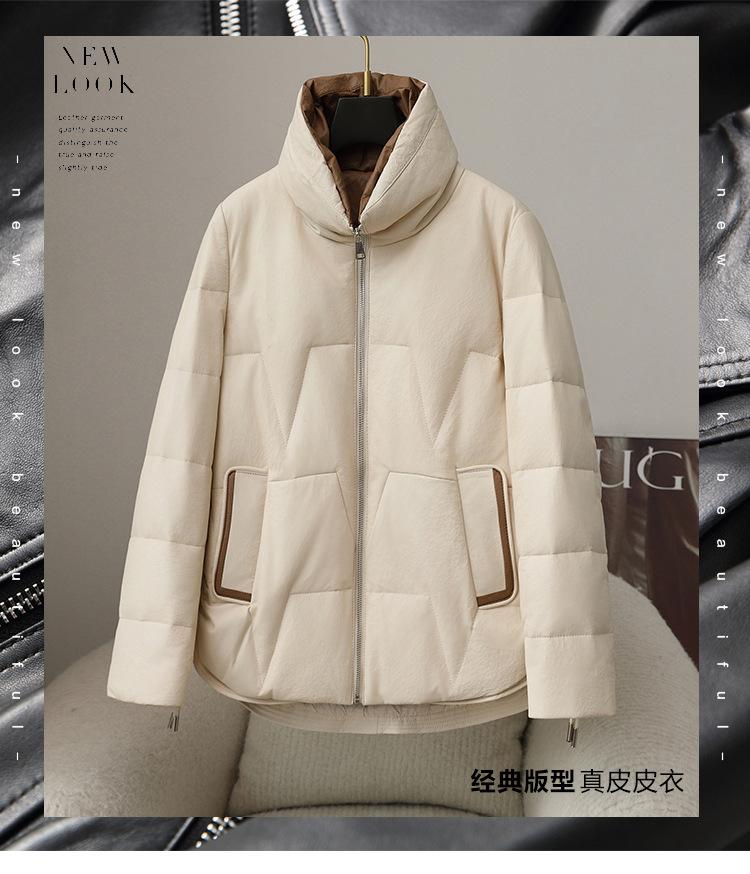 2025 Otoño e Invierno Nueva Chaqueta de Plumón de Piel de Oveja para Mujer Corta de Plumón de Ganso Gruesa Cálida Chaqueta Haining Cuero Chaqueta de Plumón
