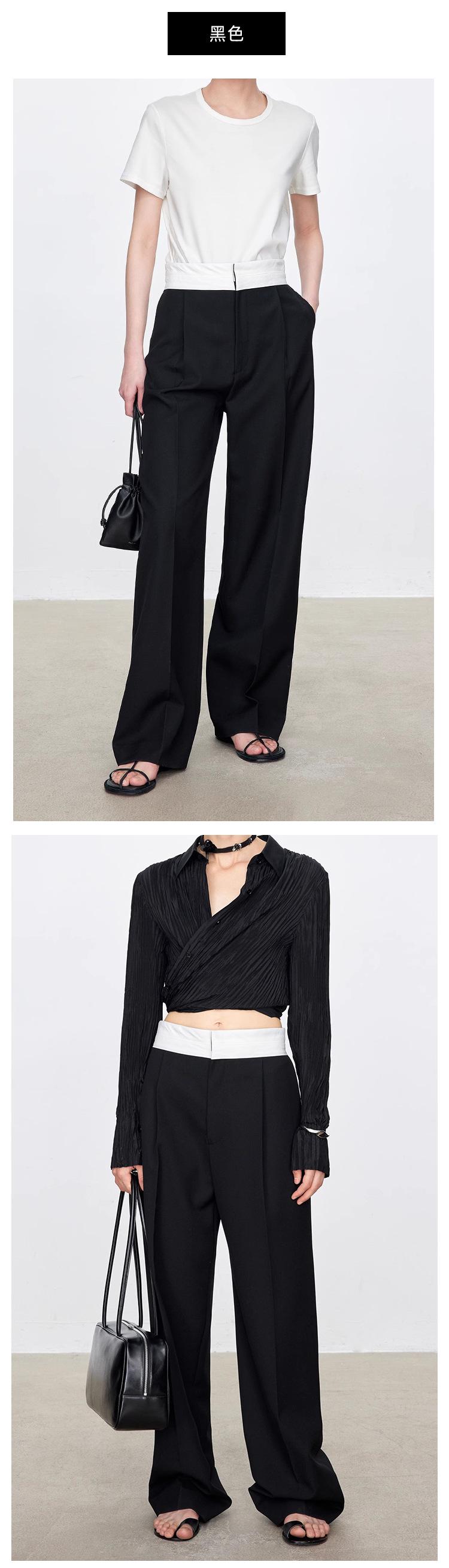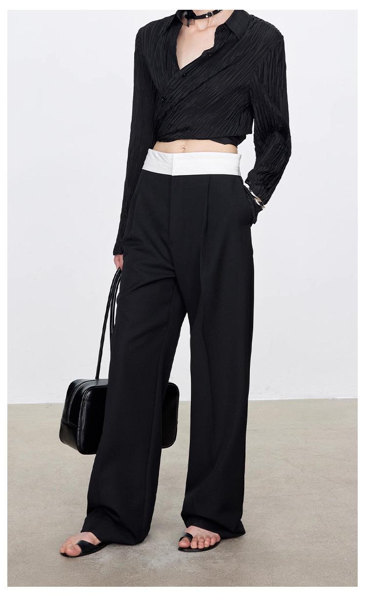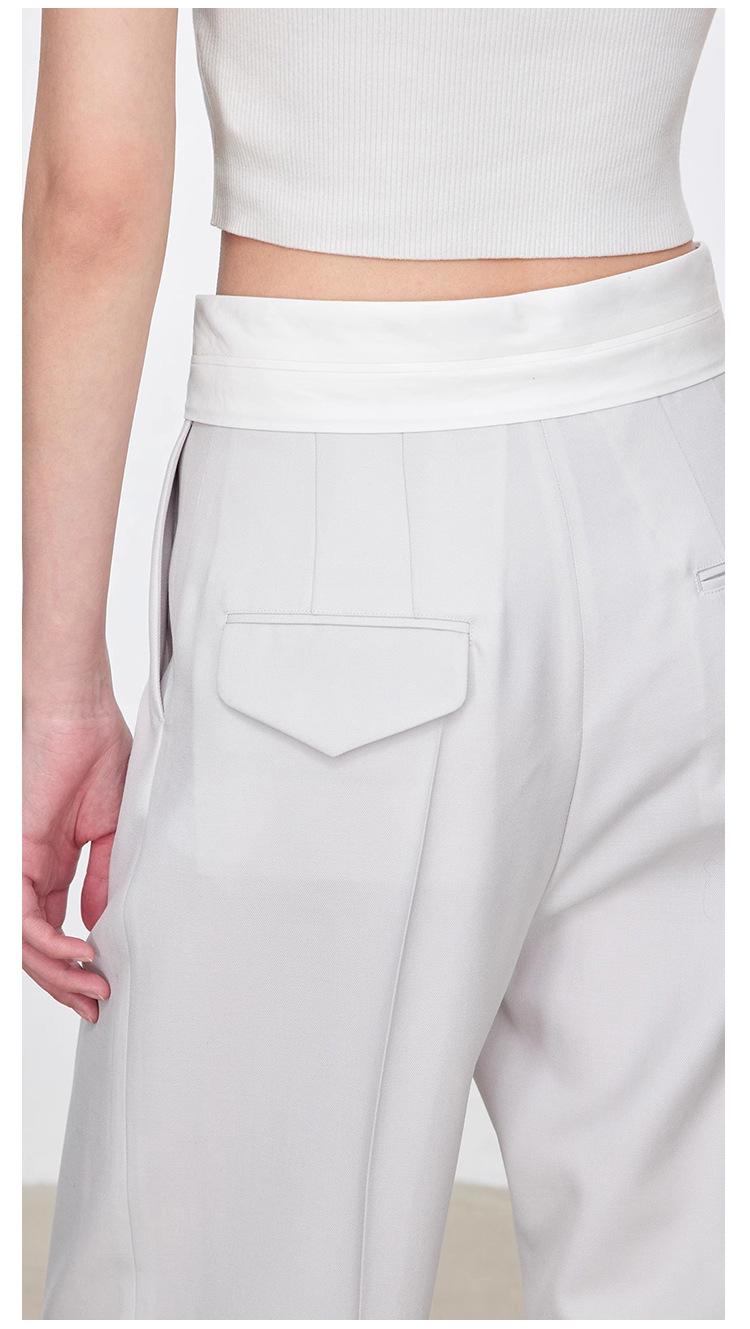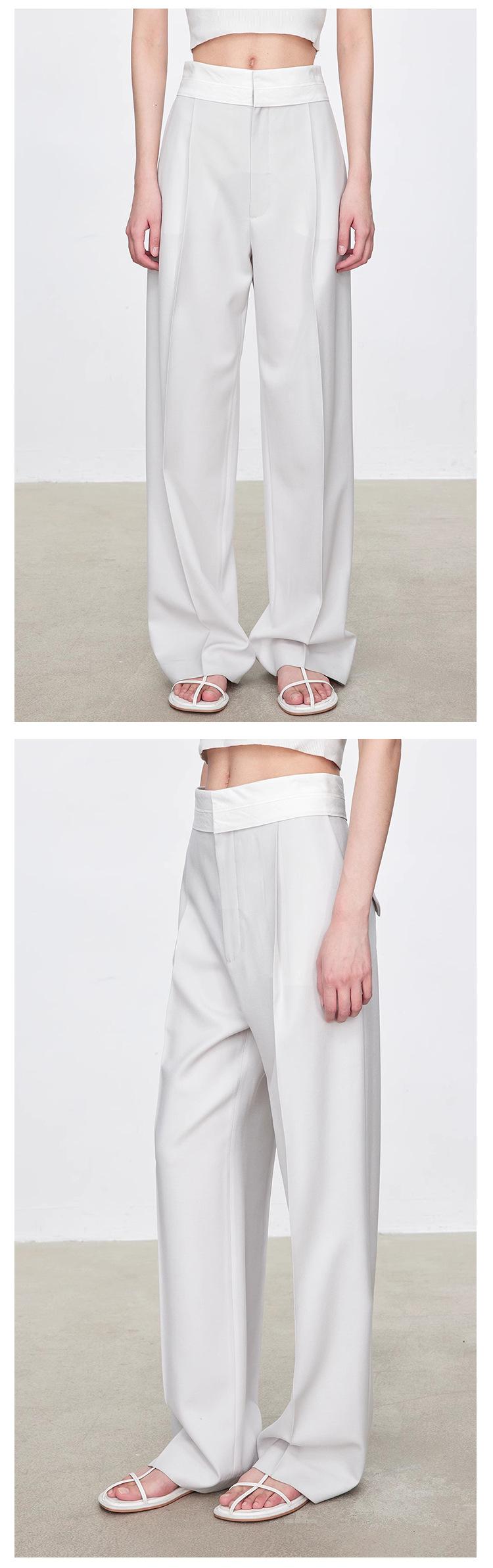 Fila Primavera y Verano Nuevos Pantalones Blancos de Cintura Alta con Textura Media, Doble Pinza, Pierna Ancha Rectos, Look Adelgazante, Ropa de Trabajo Pantalones con Look Adelgazante