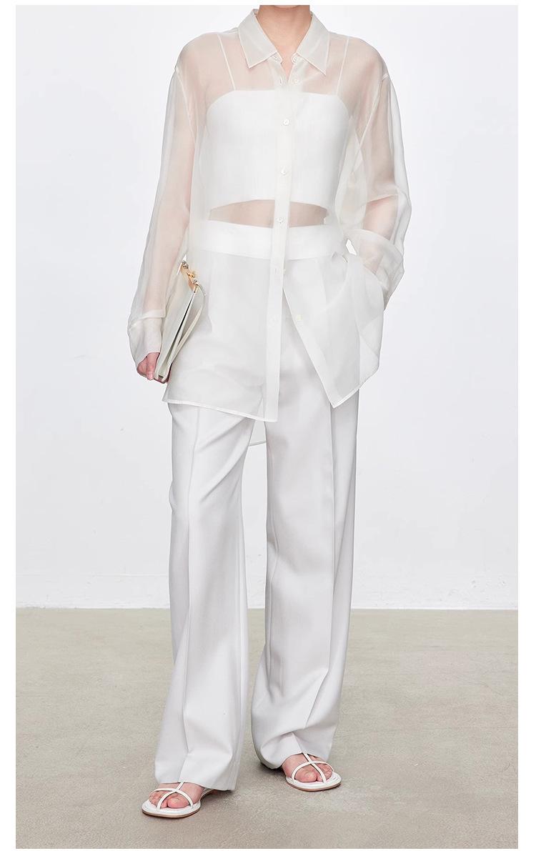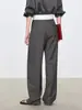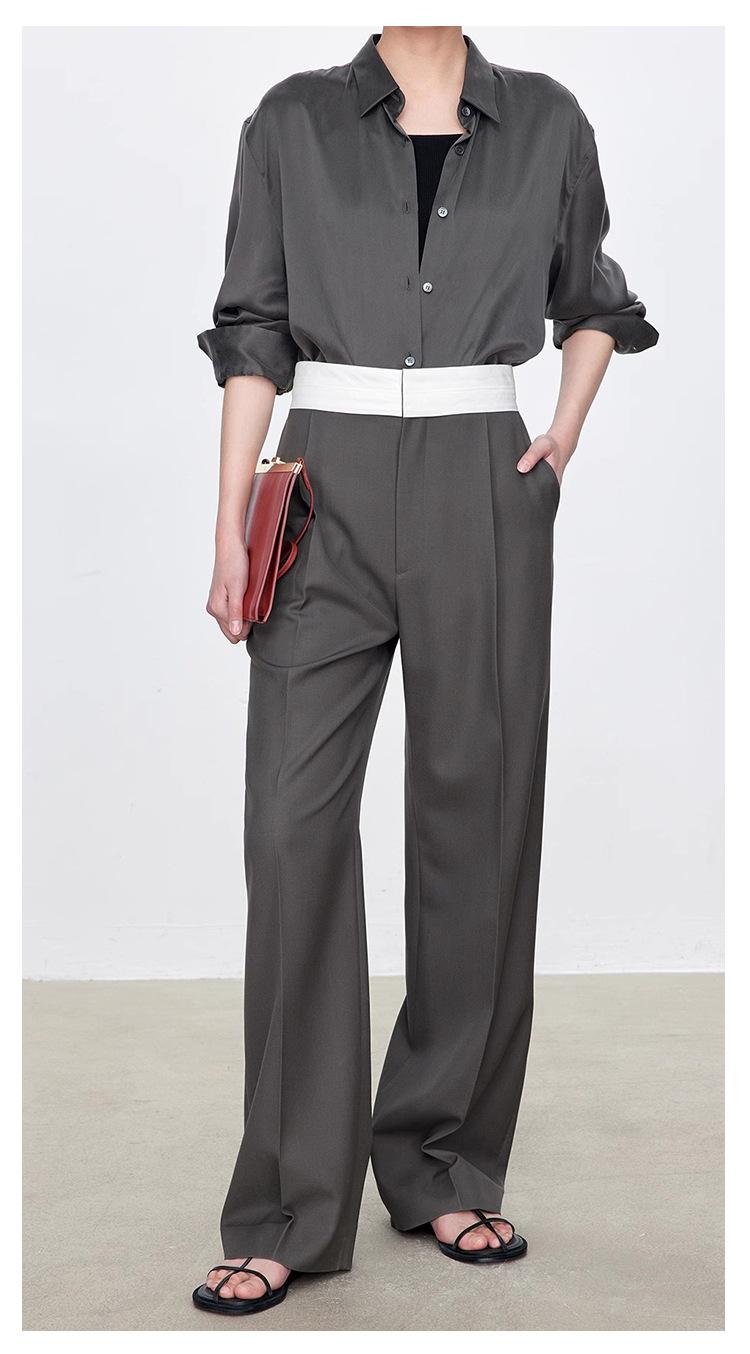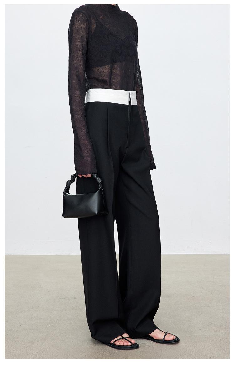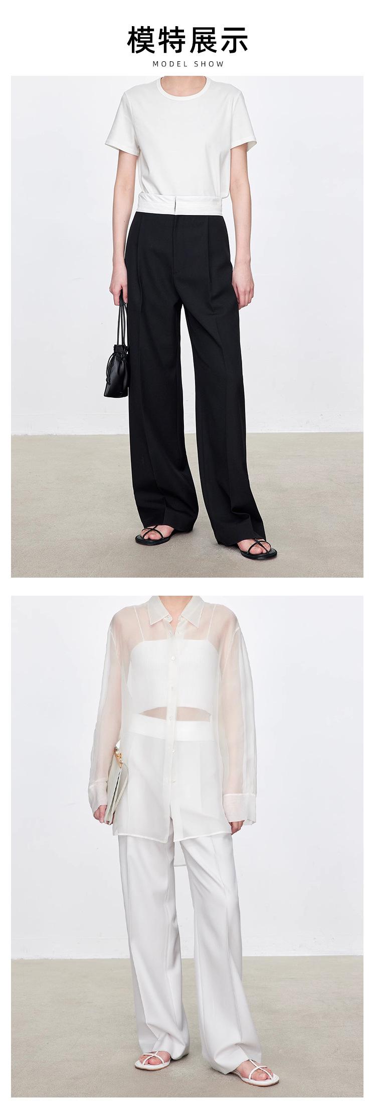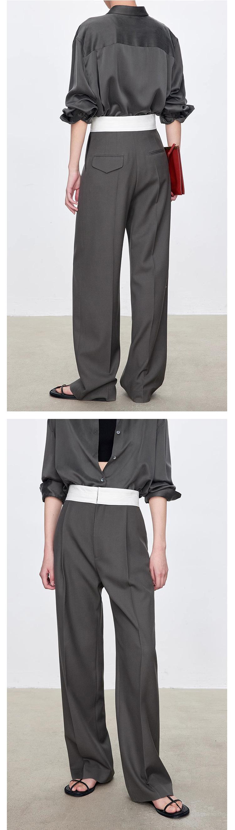 Fila Primavera y Verano Nuevos Pantalones Blancos de Cintura Alta con Textura Media, Doble Pinza, Pierna Ancha Rectos, Look Adelgazante, Ropa de Trabajo Pantalones con Look Adelgazante