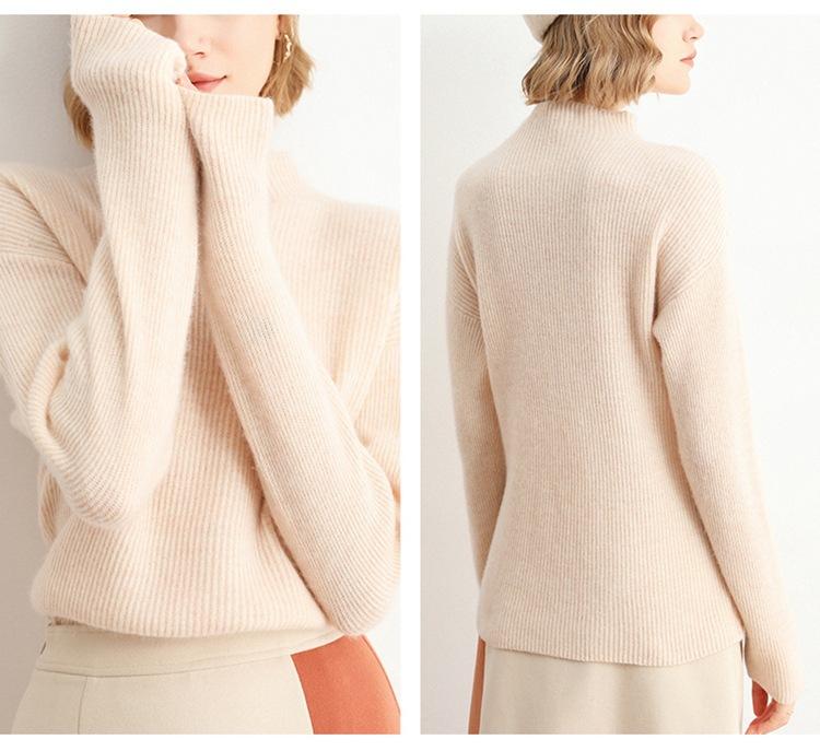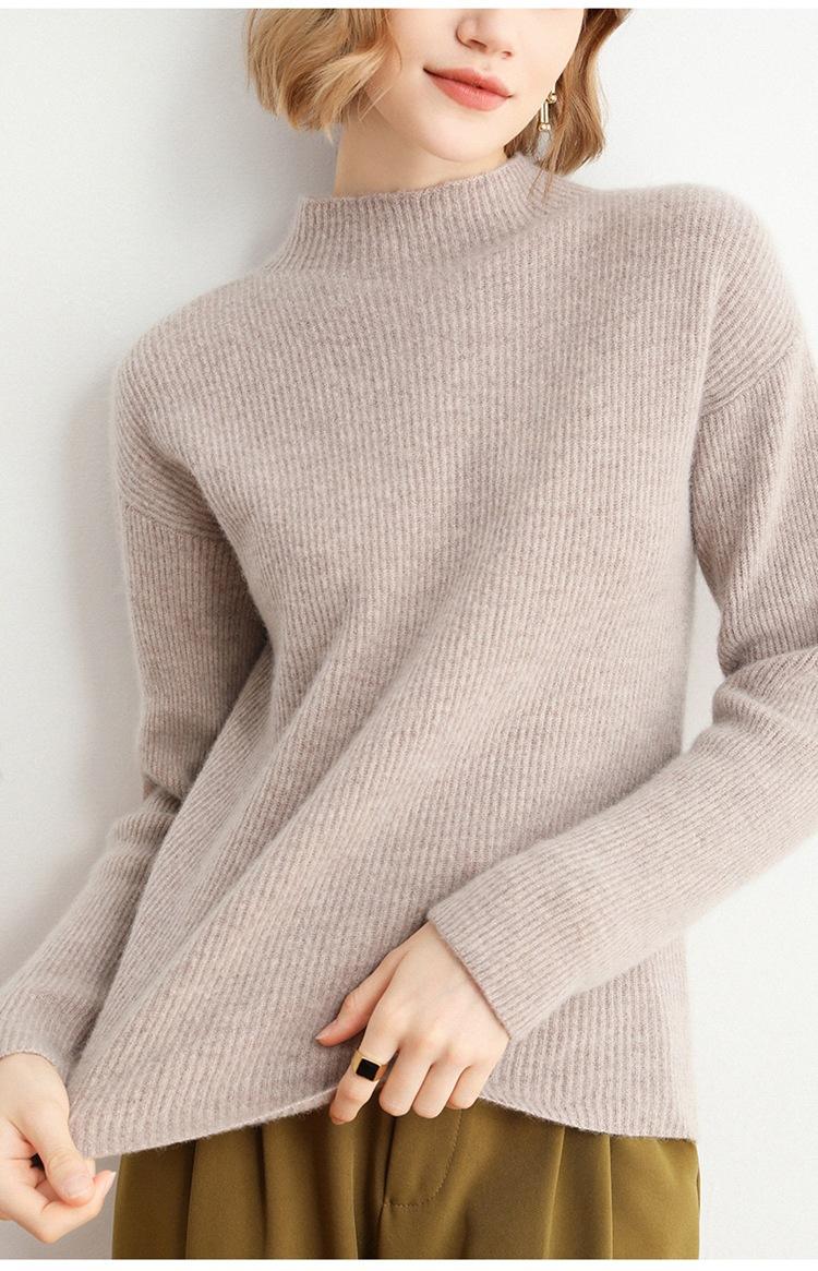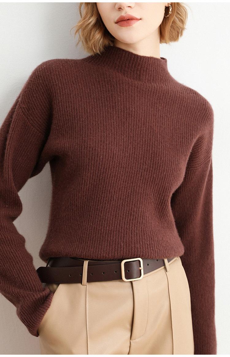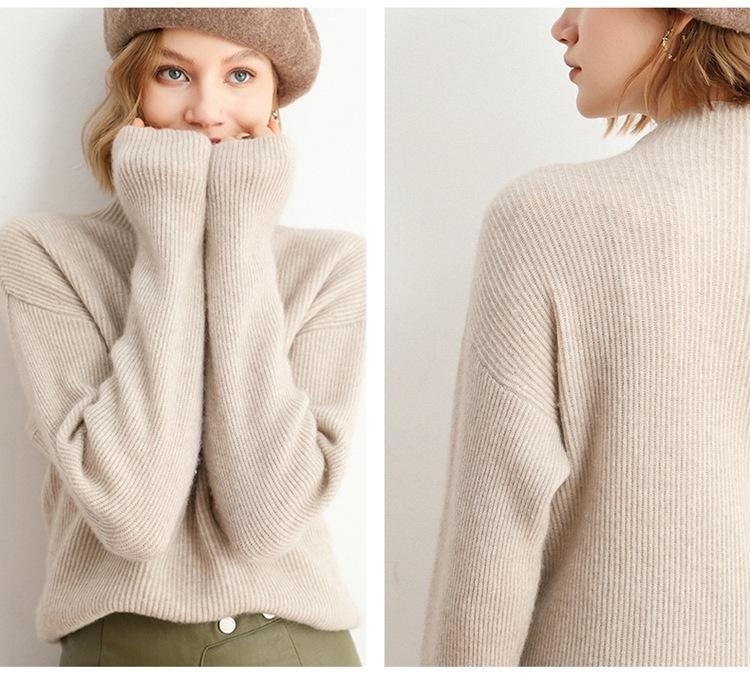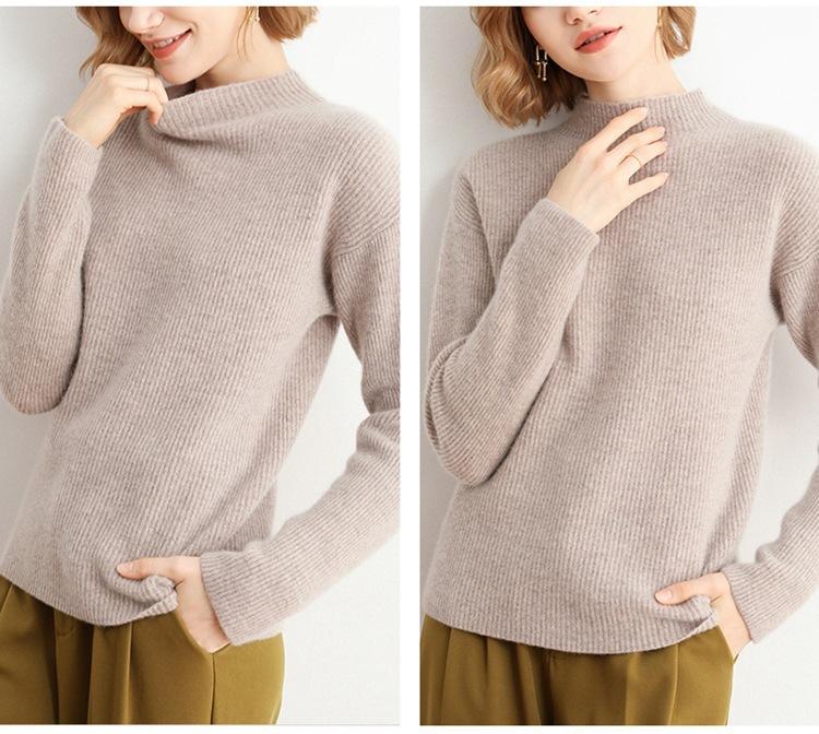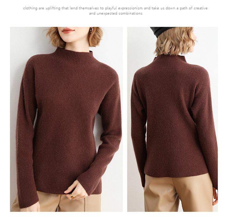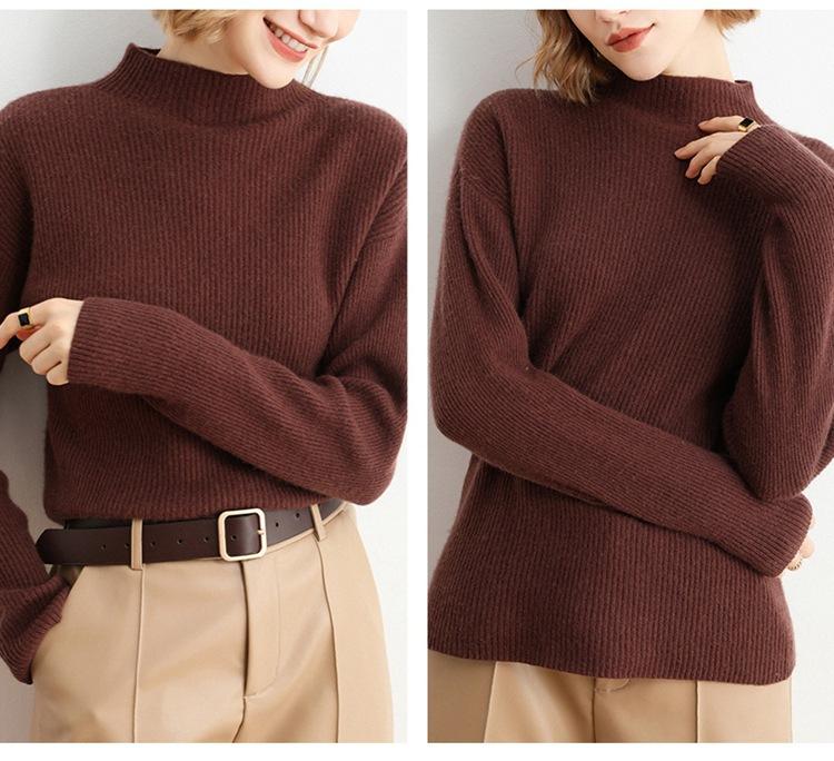 Suéter de lana de cuello alto para mujer otoño e invierno interior delgado camisa base de lana top suéter con cordón para mujer al por mayor