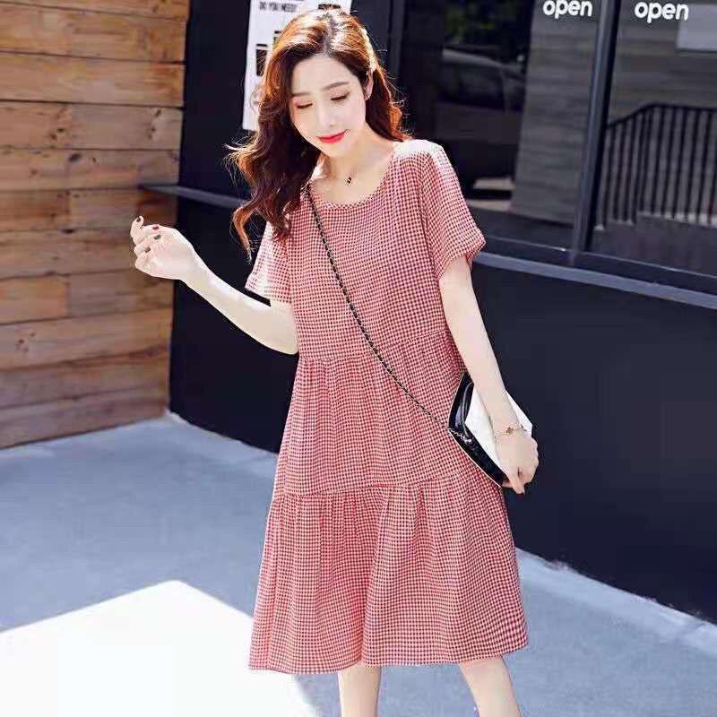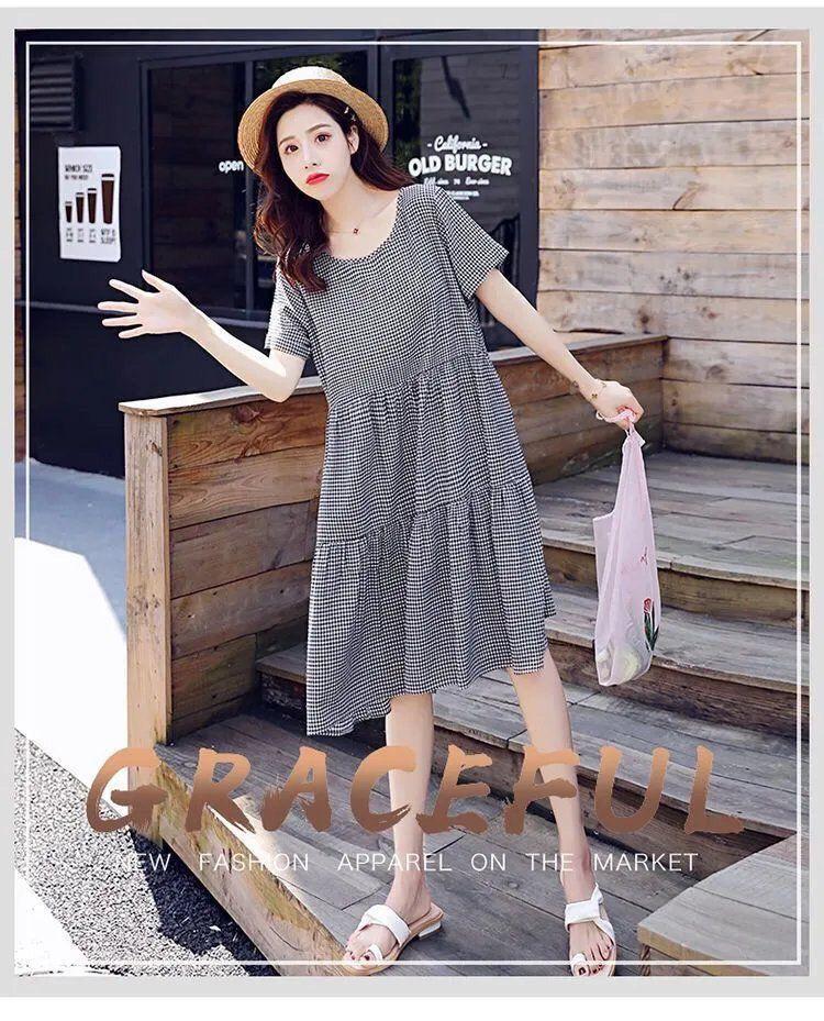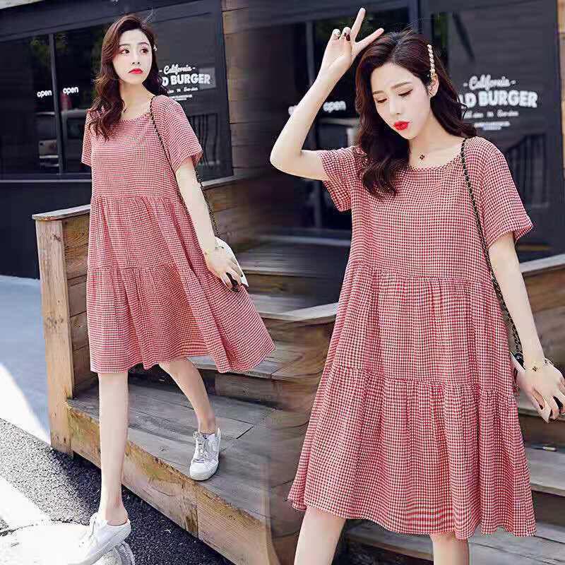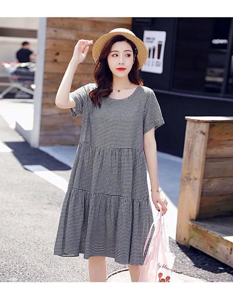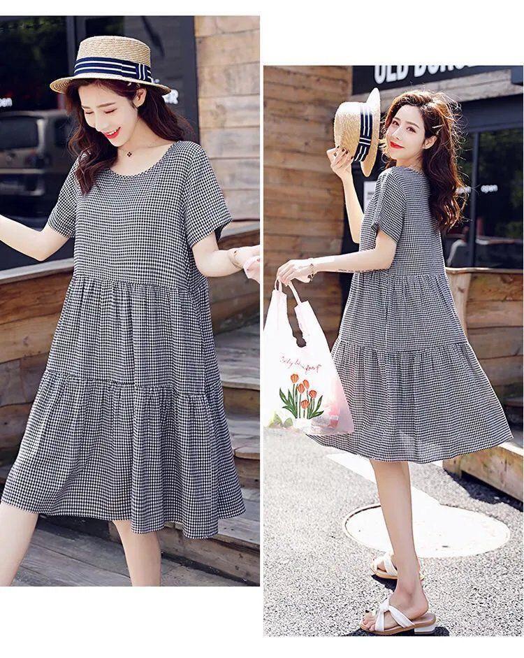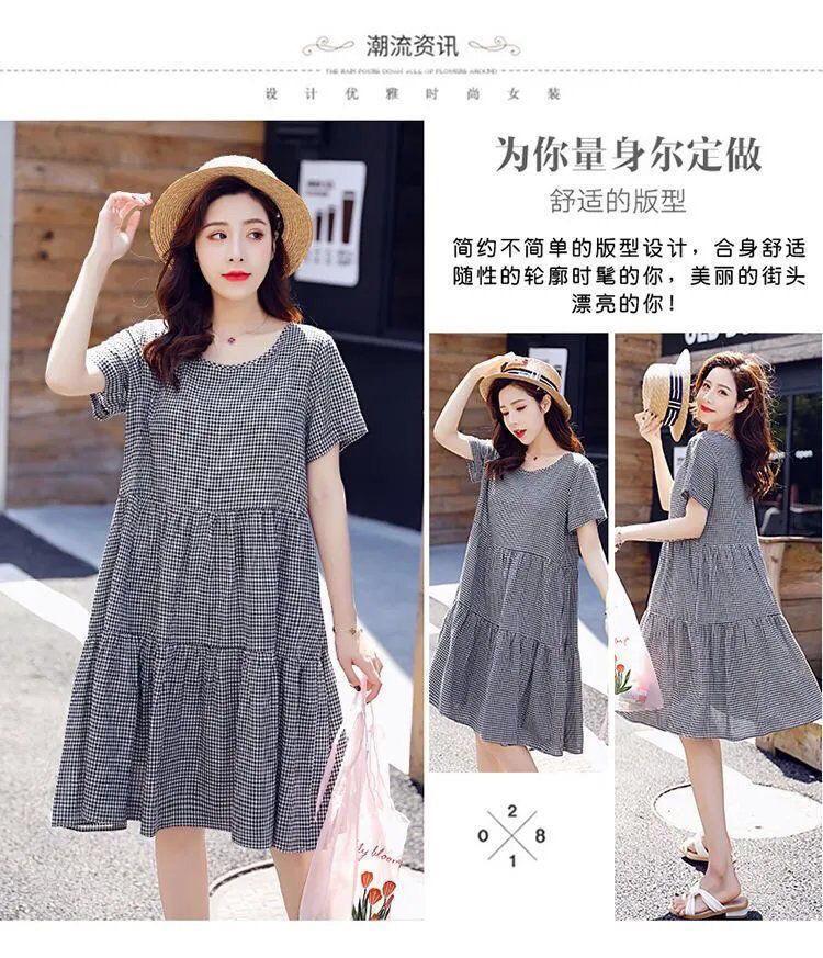 Vestido largo para embarazadas, nueva falda de moda de verano para mujer, talla grande, suelta, a cuadros, corte A, falda para embarazadas