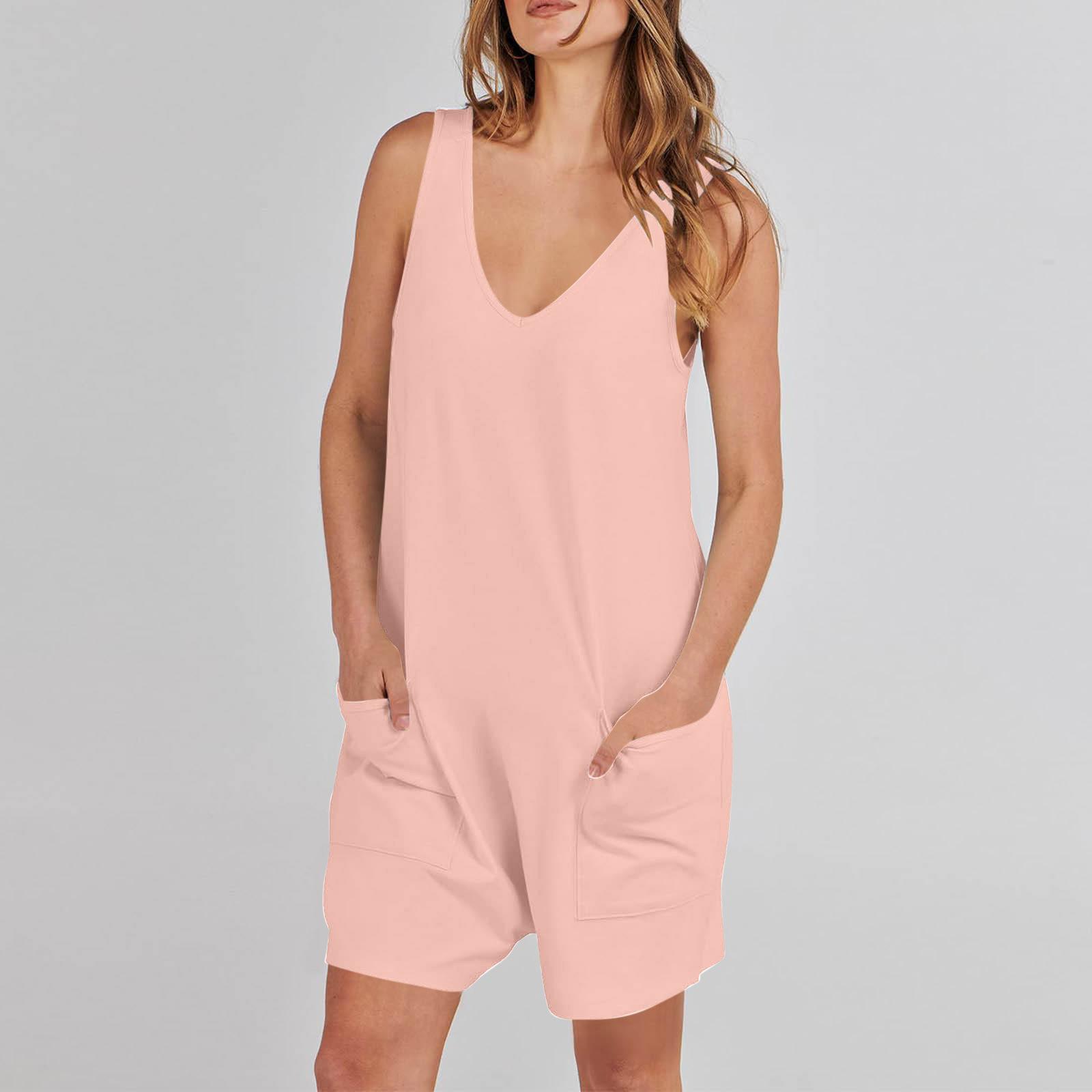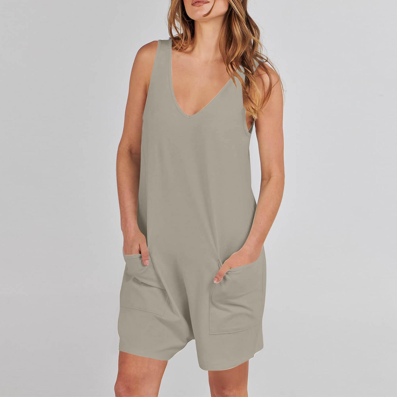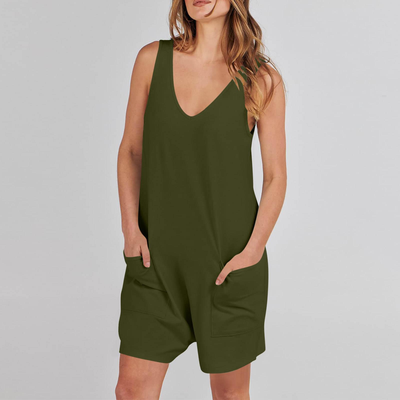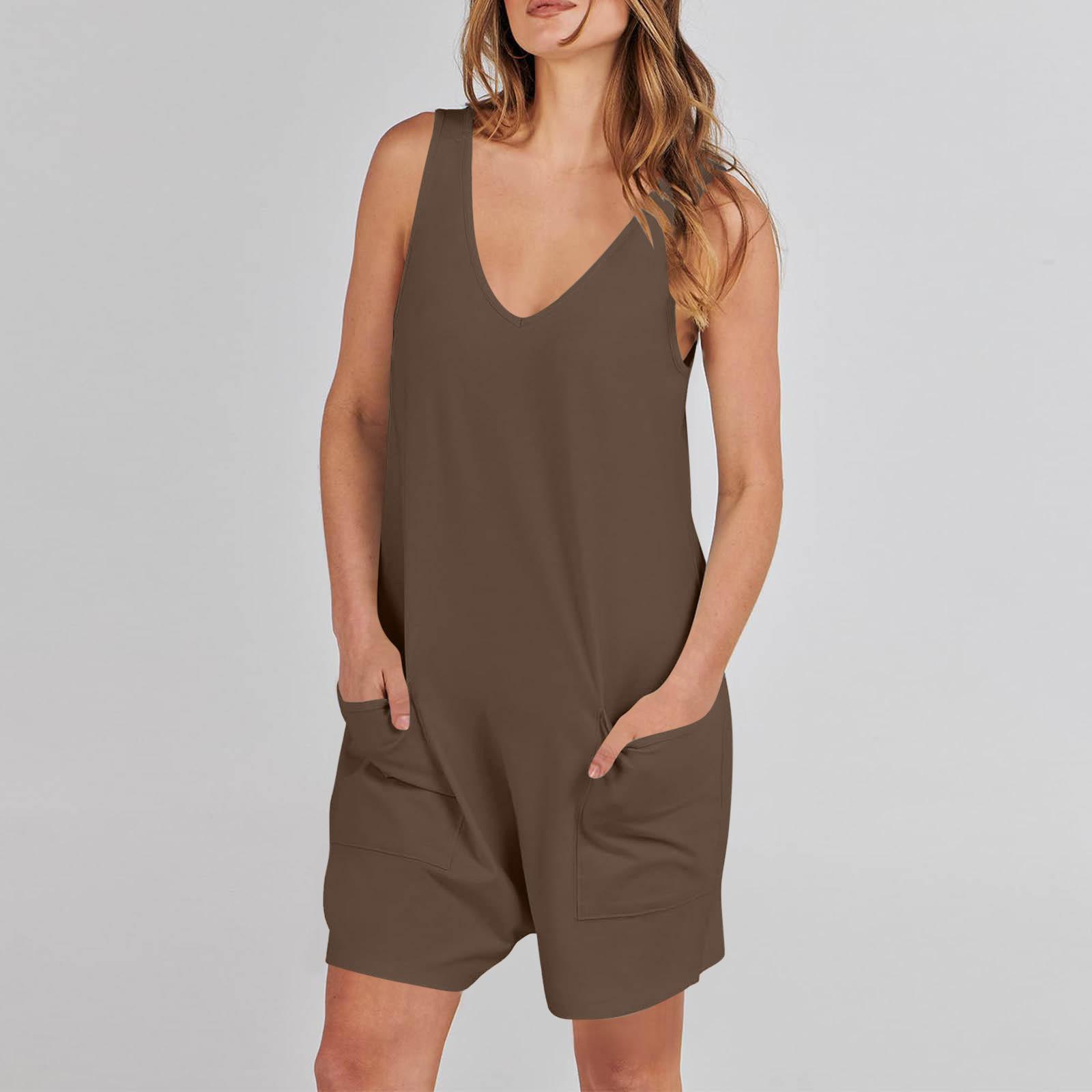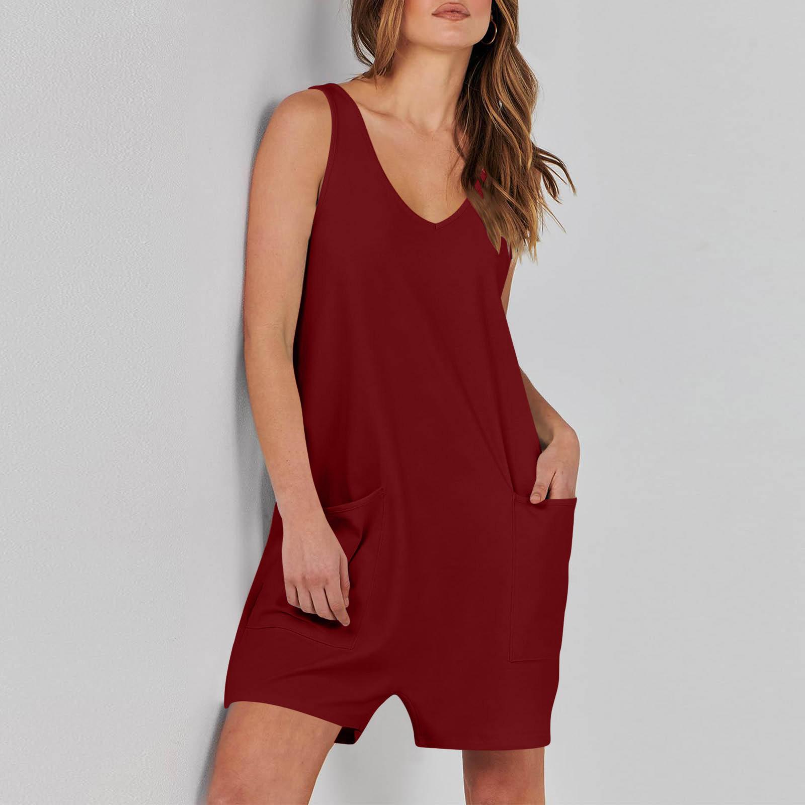 Mono corto informal sin mangas de verano para mujer europea y americana de Amazon TEMU 2024, mono holgado, ropa para el hogar