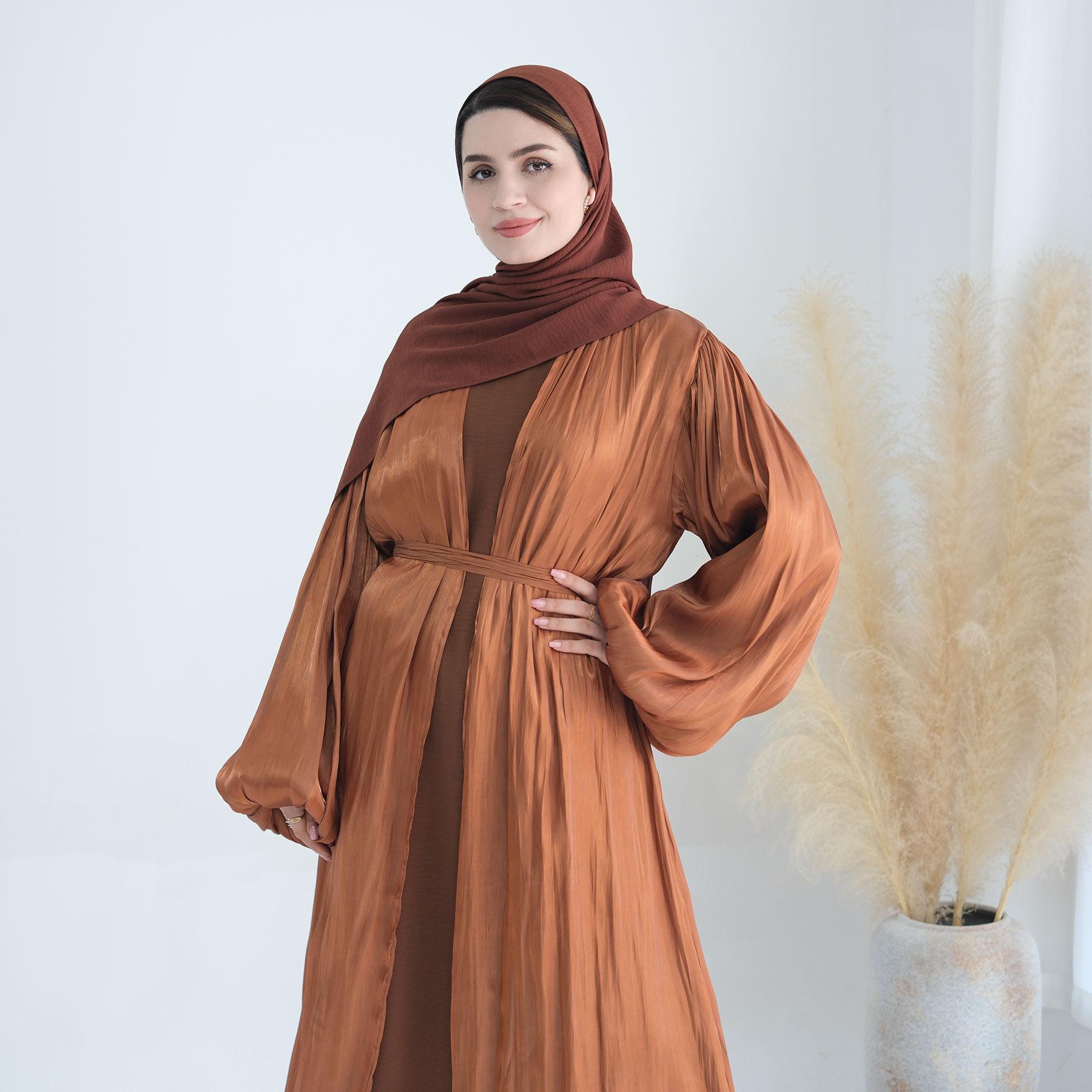 Cárdigan Loriya Amazon de manga abullonada en la cintura, verano 2024 europeo y americano Dubái elegante falda larga LR451
