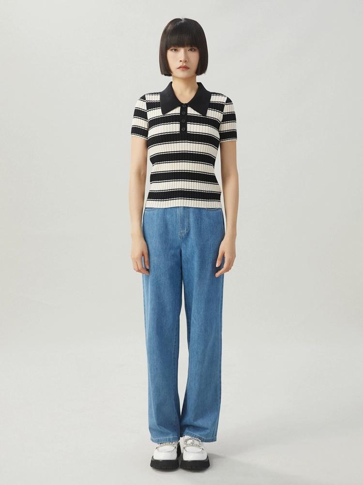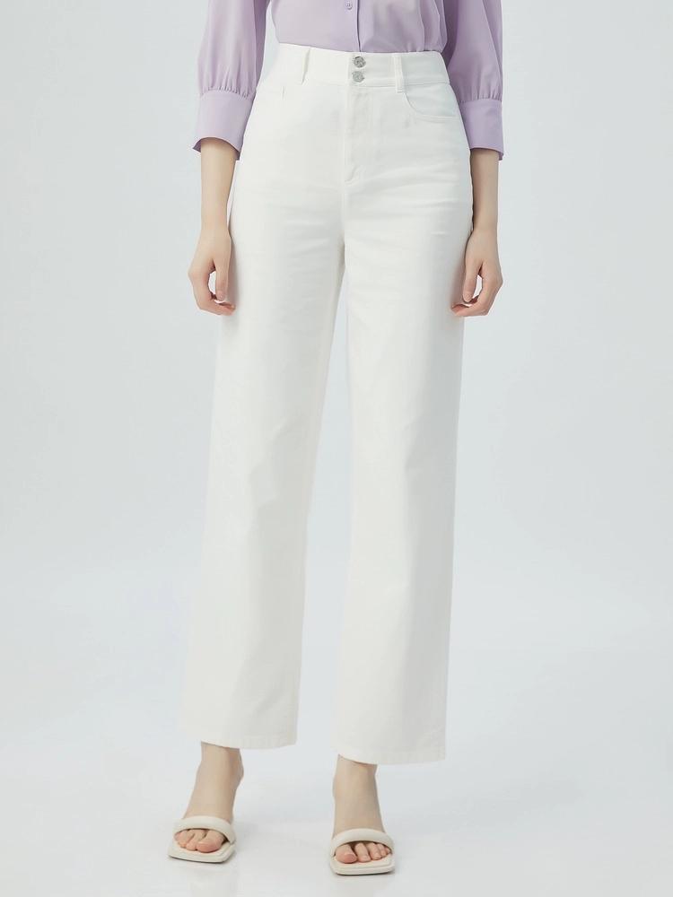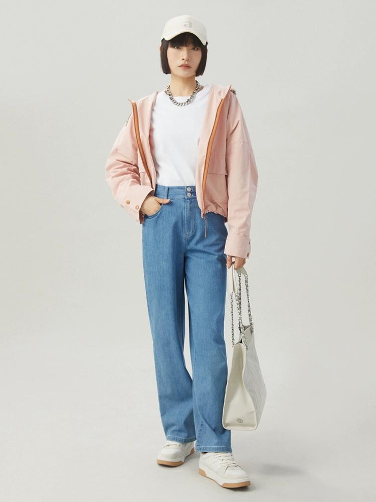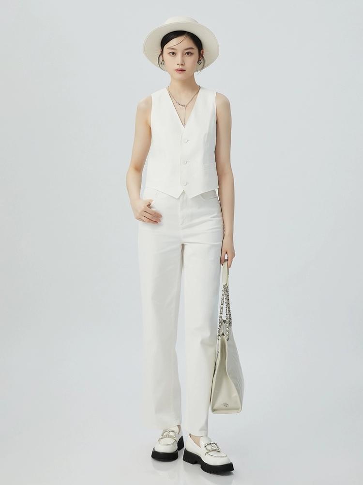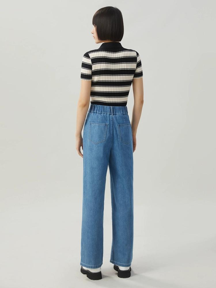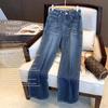 Descuento comercio exterior otoño 2024 casual elástico cintura alta dos botones pantalones rectos de pierna ancha jeans banana para mujer