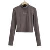 2022 Otoño e Invierno Top de Cuello Alto Medio Camiseta Básica para Mujer con Bordado de Letras Slim Estudiante Color Puro Terciopelo Camiseta de Manga Larga para Mujer