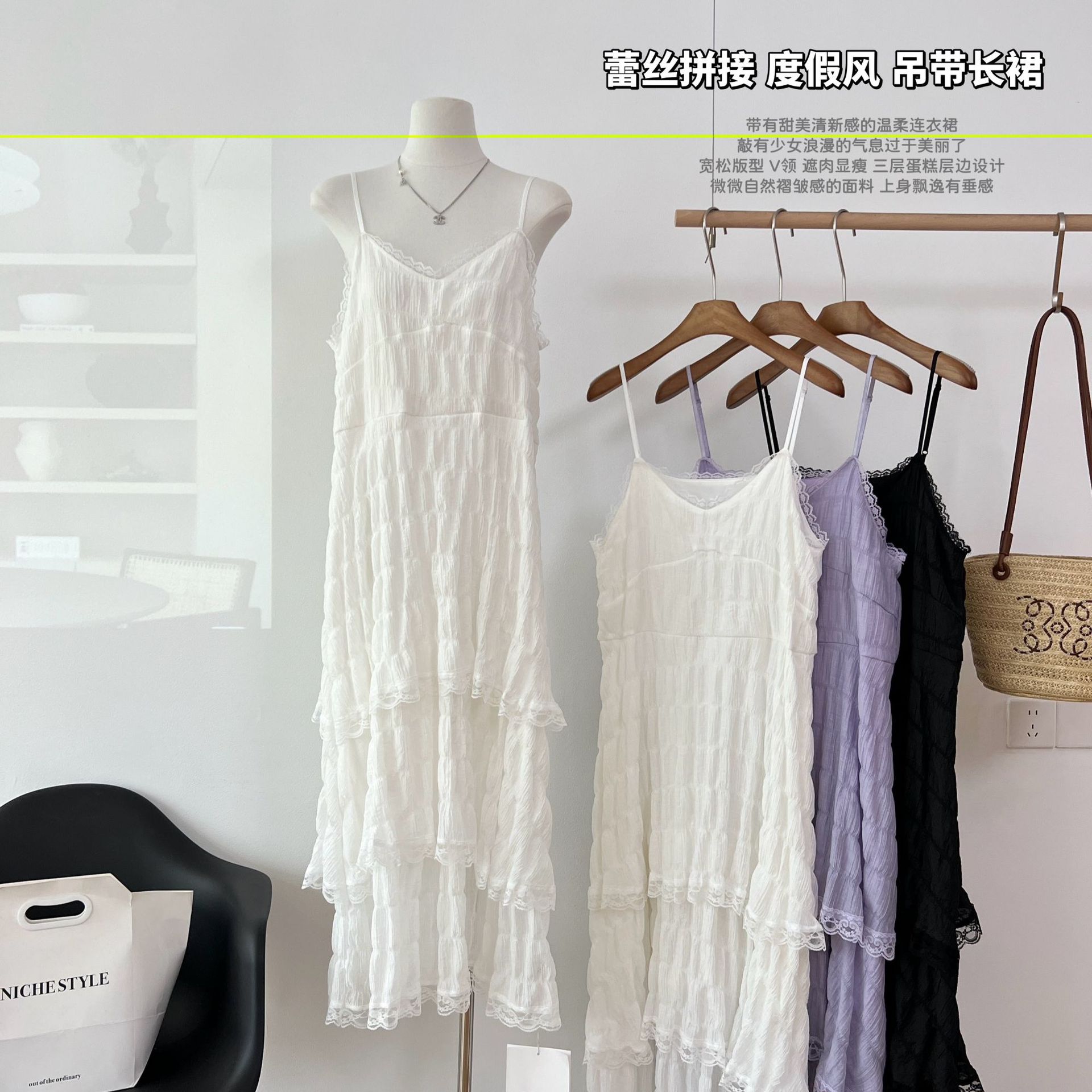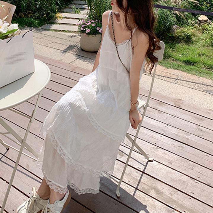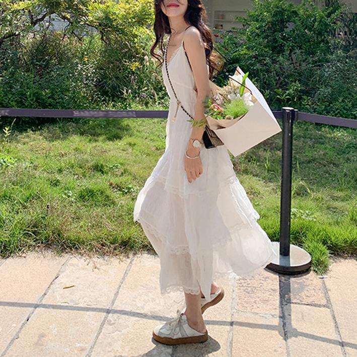 Vestido Blanco de Tirantes de Talla Grande para Mujer, Nuevo Estilo de Verano, Vestido Pastel Estilo Resort Costero, Vestido Largo de Playa