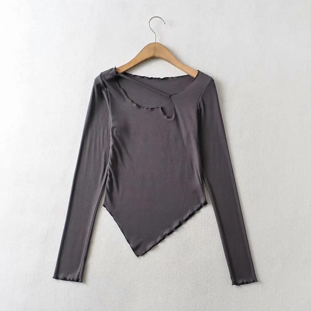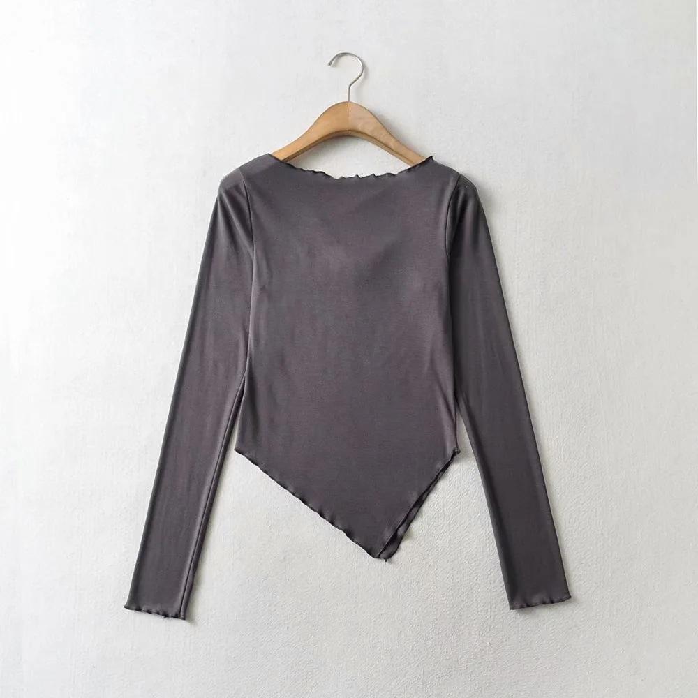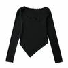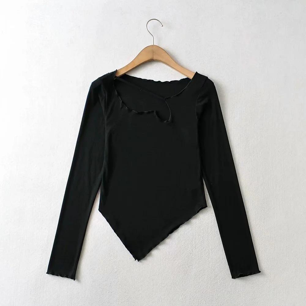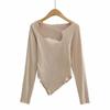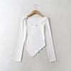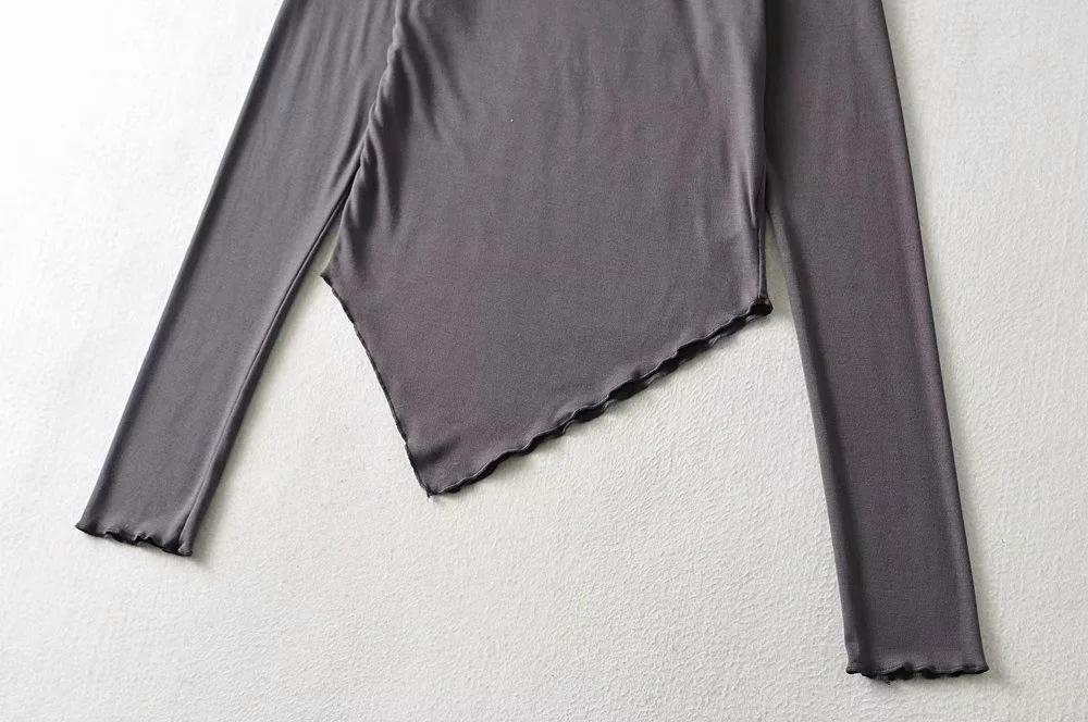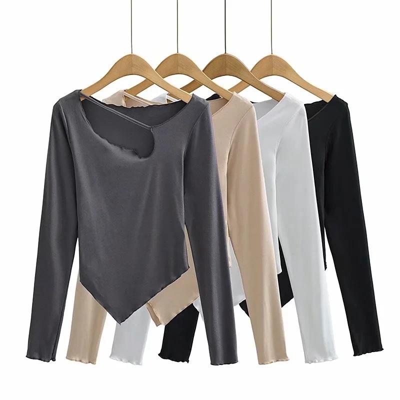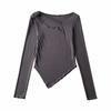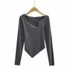 Camiseta de manga corta ajustada y adelgazante con dobladillo irregular para mujer, de otoño, de una sola cuerda, de color sólido, a la moda europea y americana