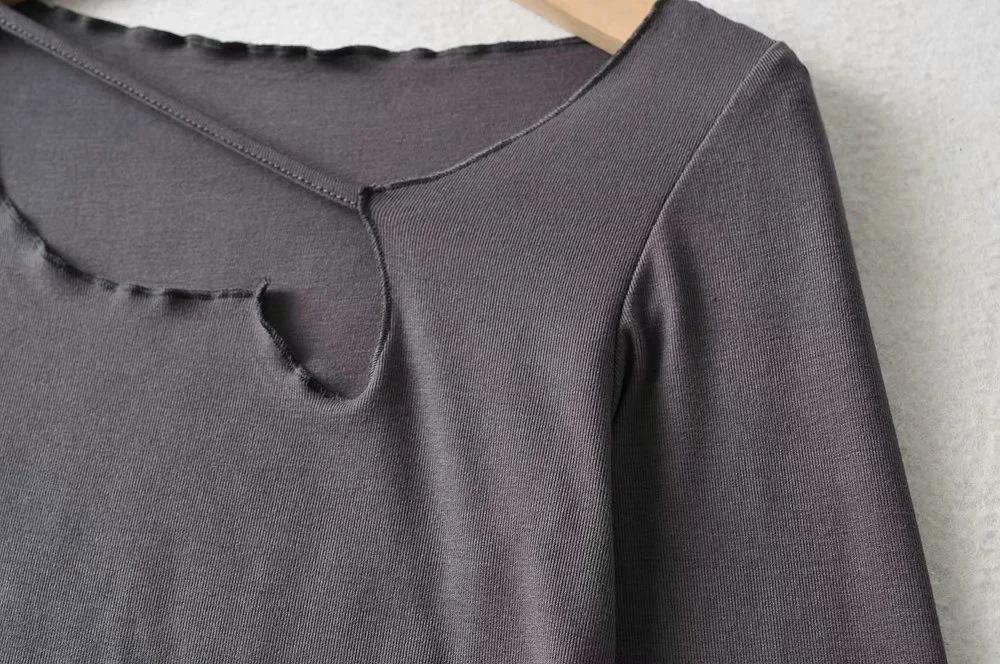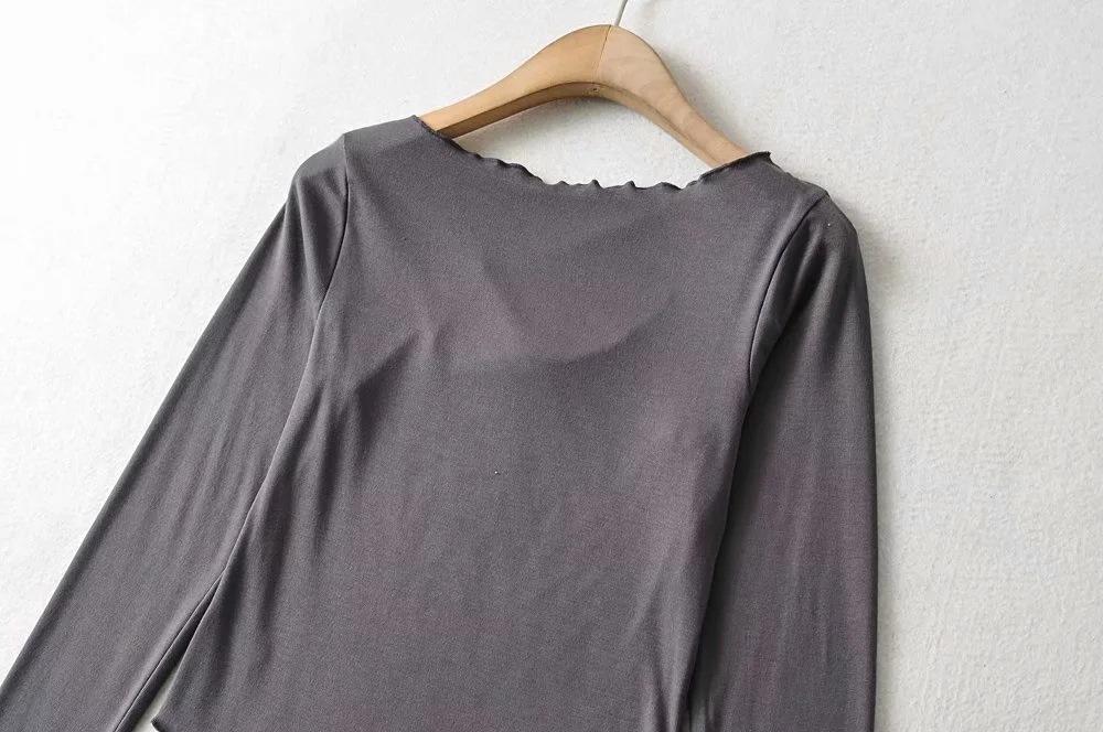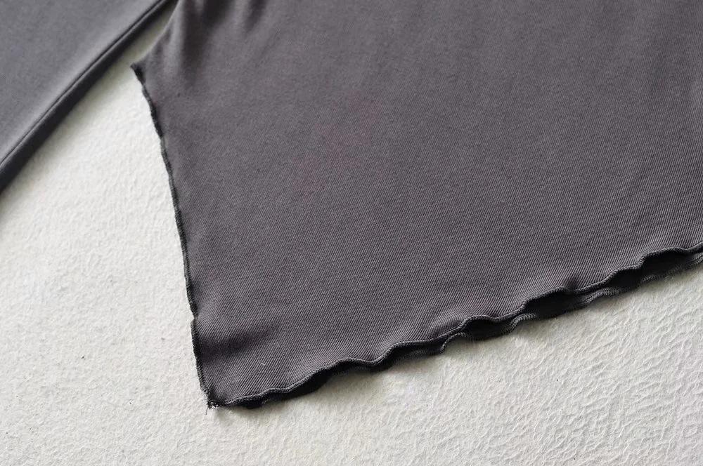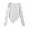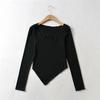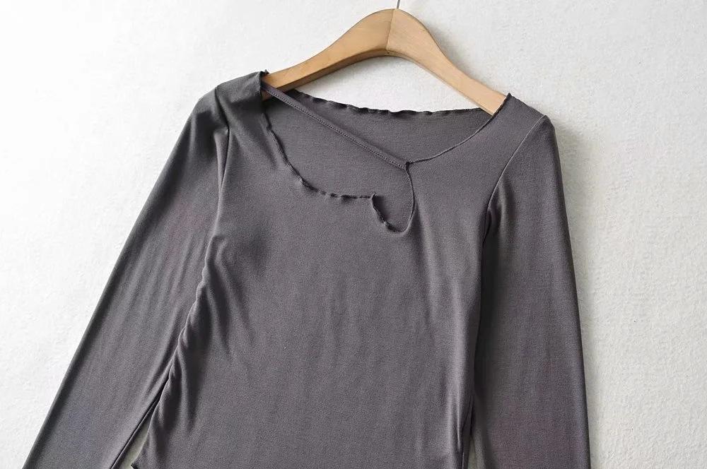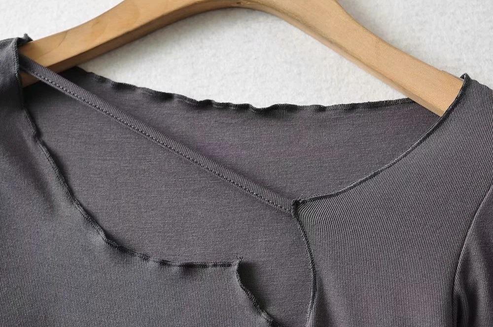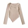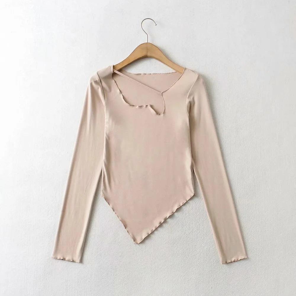 Camiseta de manga corta ajustada y adelgazante con dobladillo irregular para mujer, de otoño, de una sola cuerda, de color sólido, a la moda europea y americana