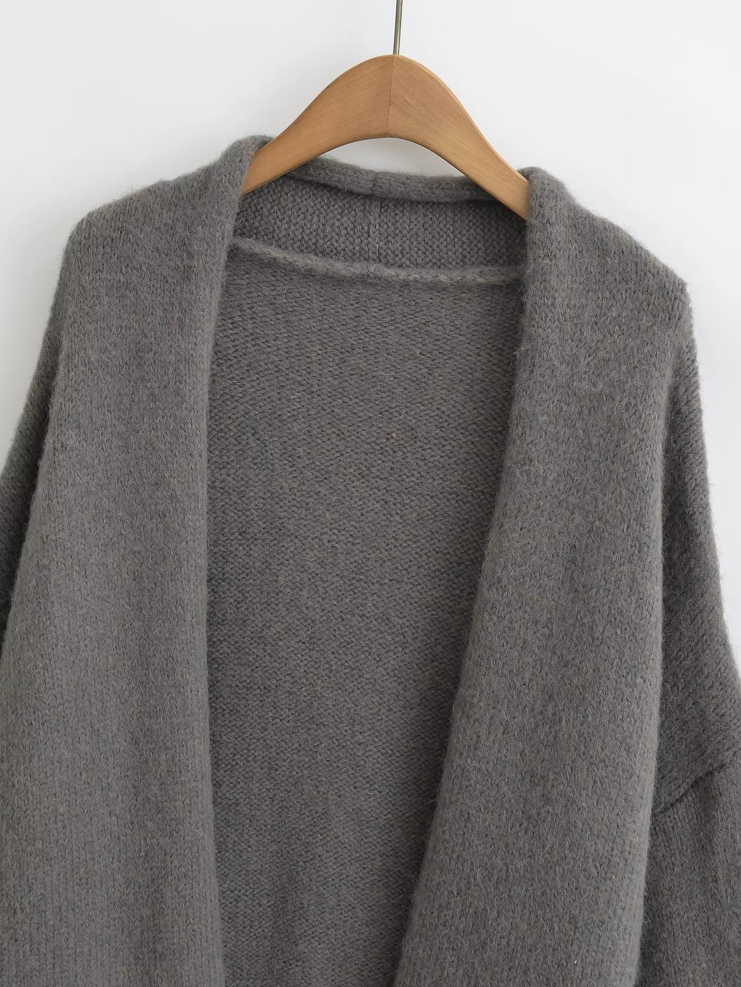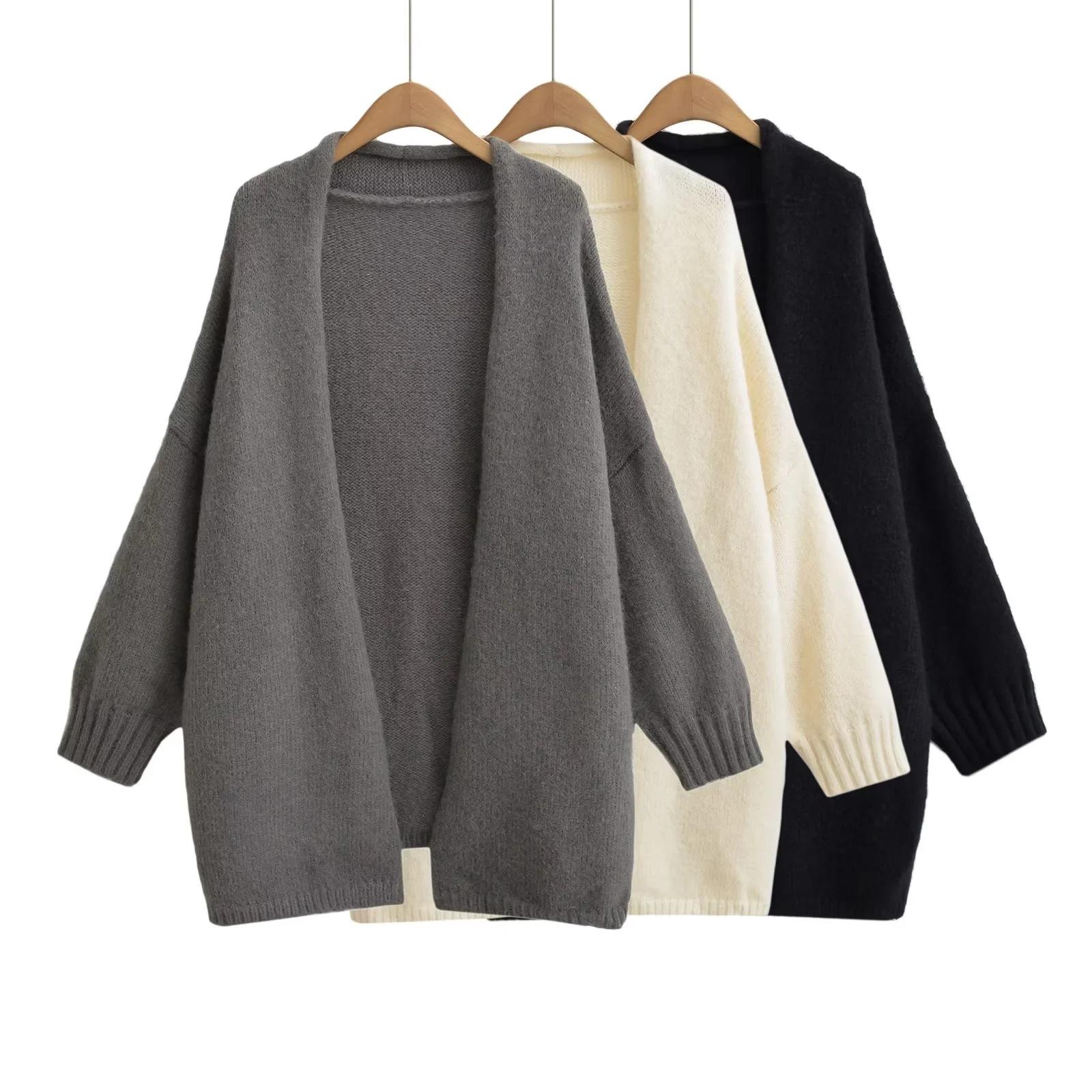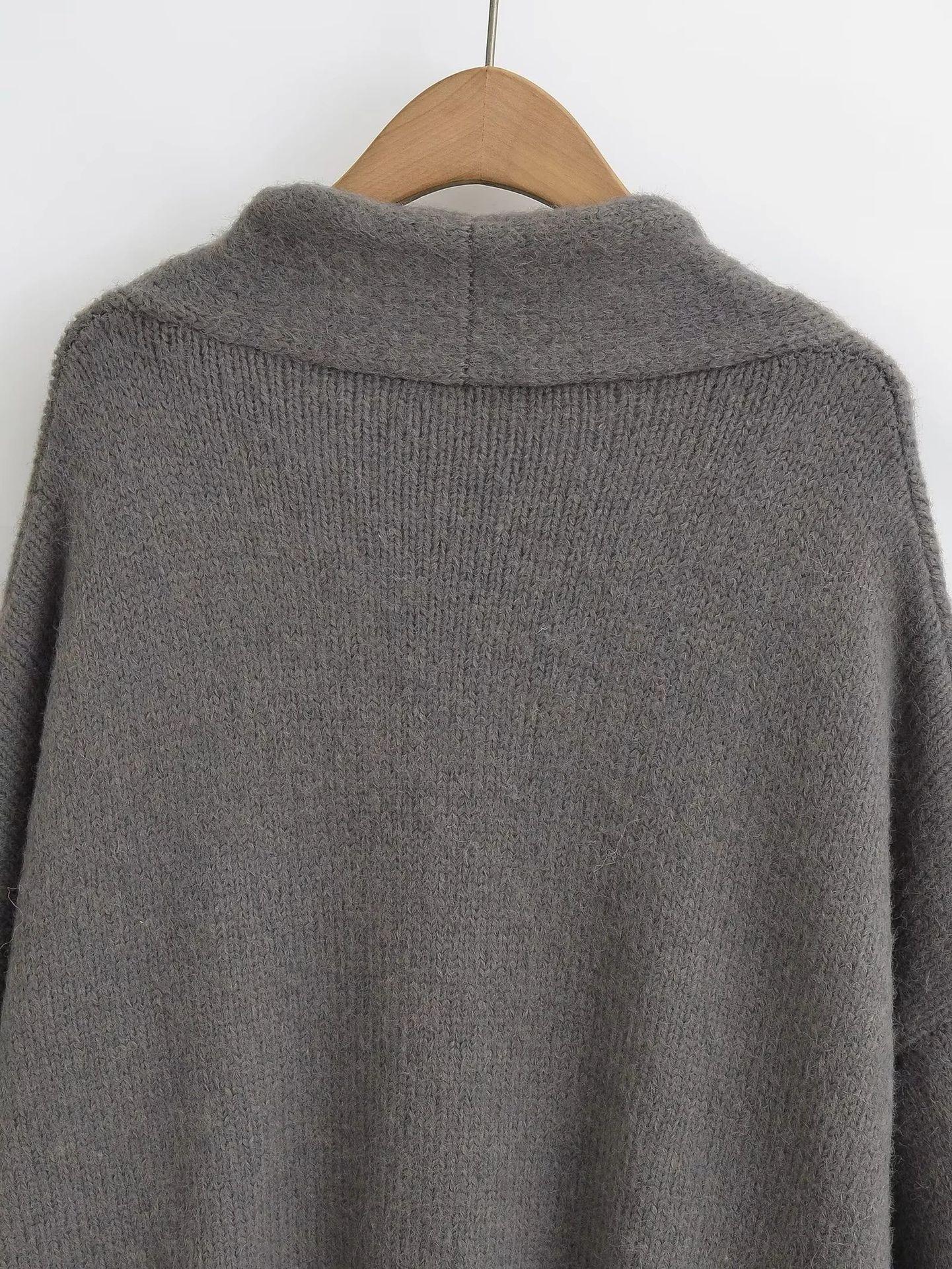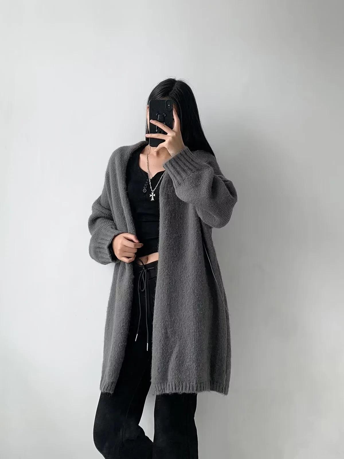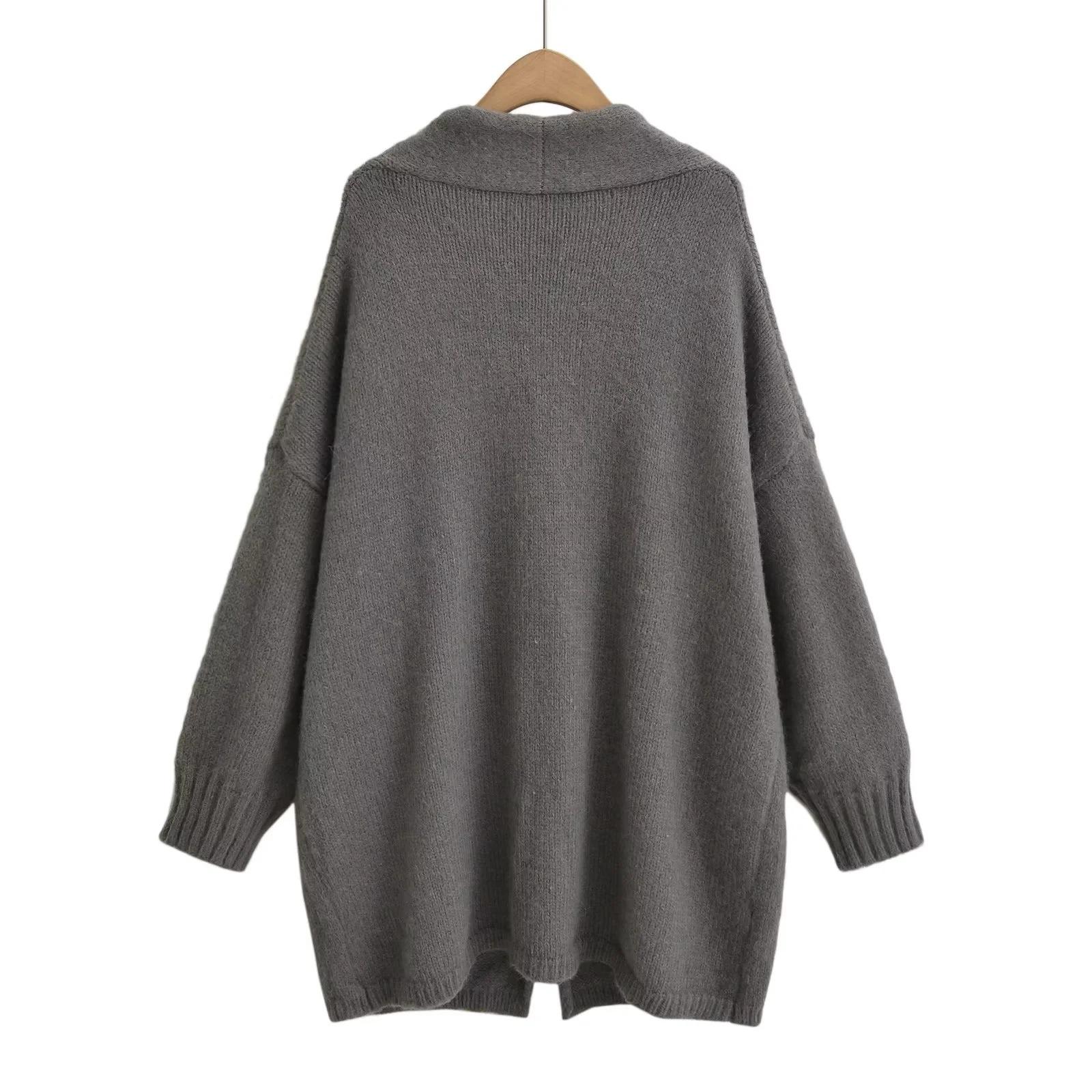 Chaqueta Suéter Retro de Largo Medio con Manga Farol para Mujer Otoño e Invierno Nuevo Abrigo Exterior Estilo Holgazán Cárdigan de Punto Suelto