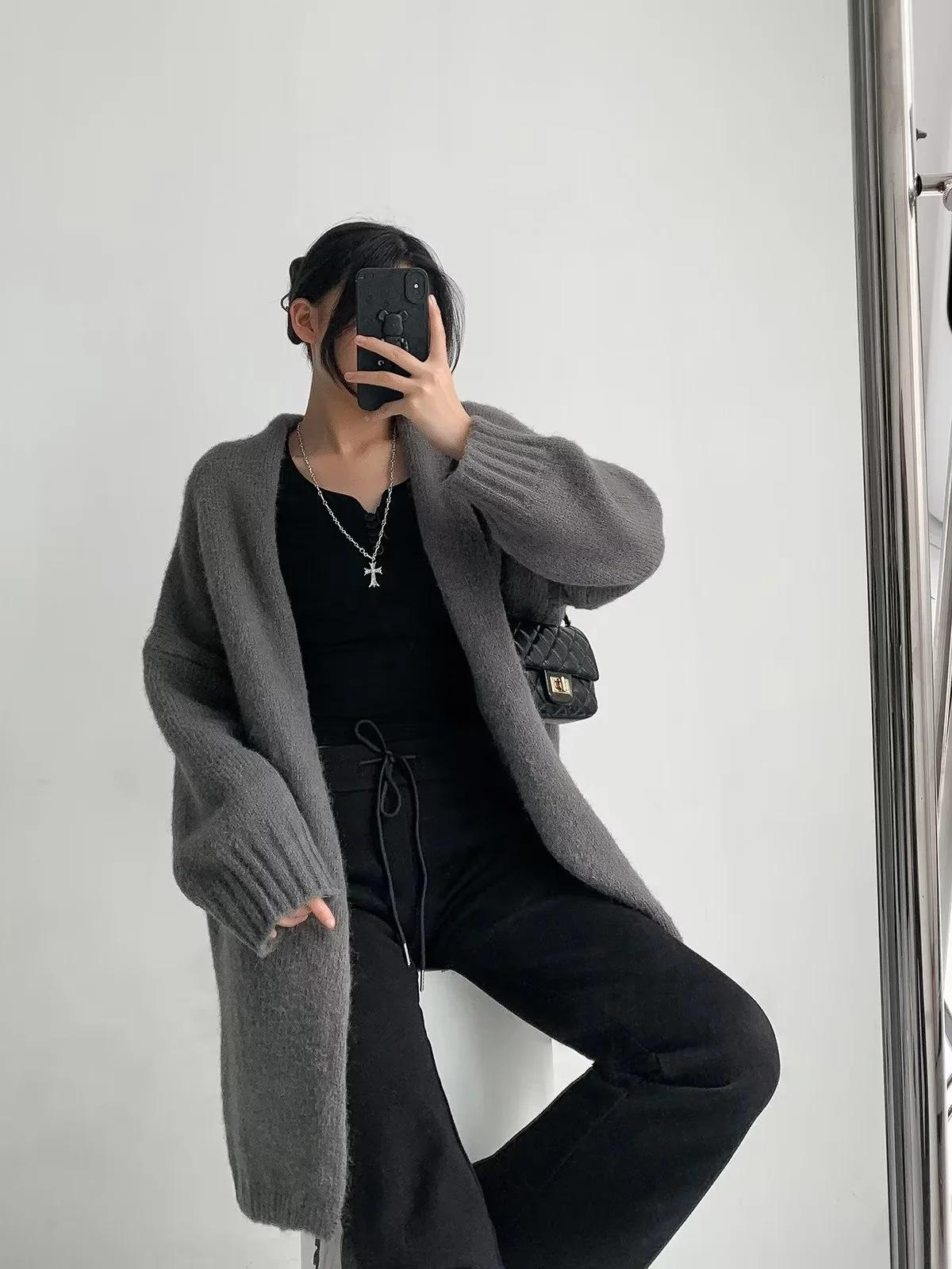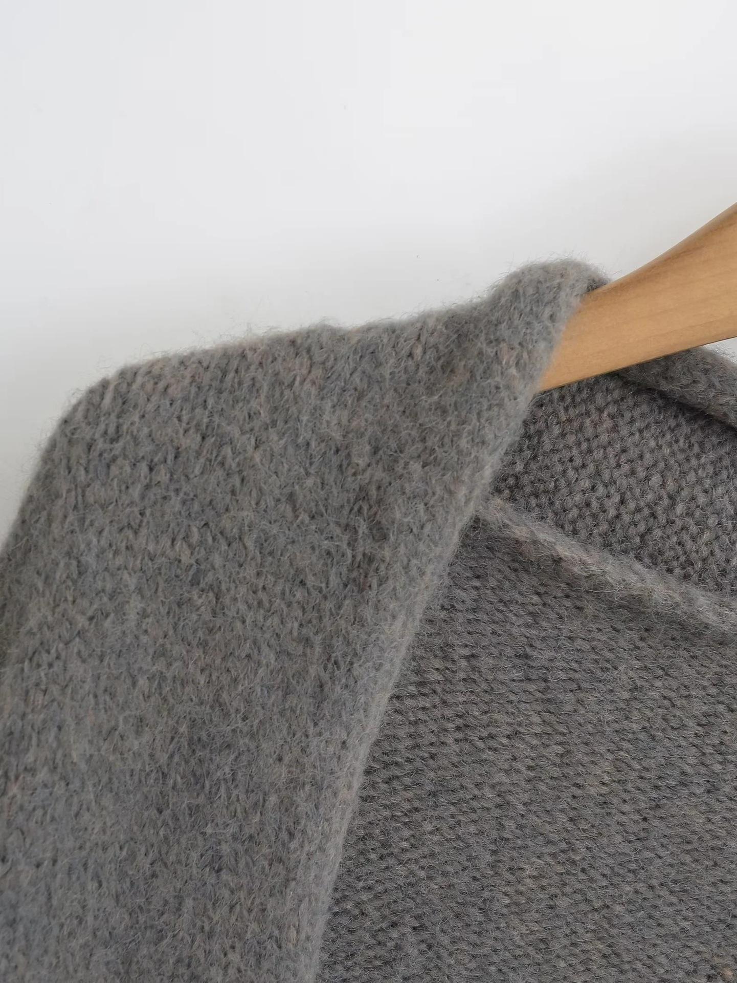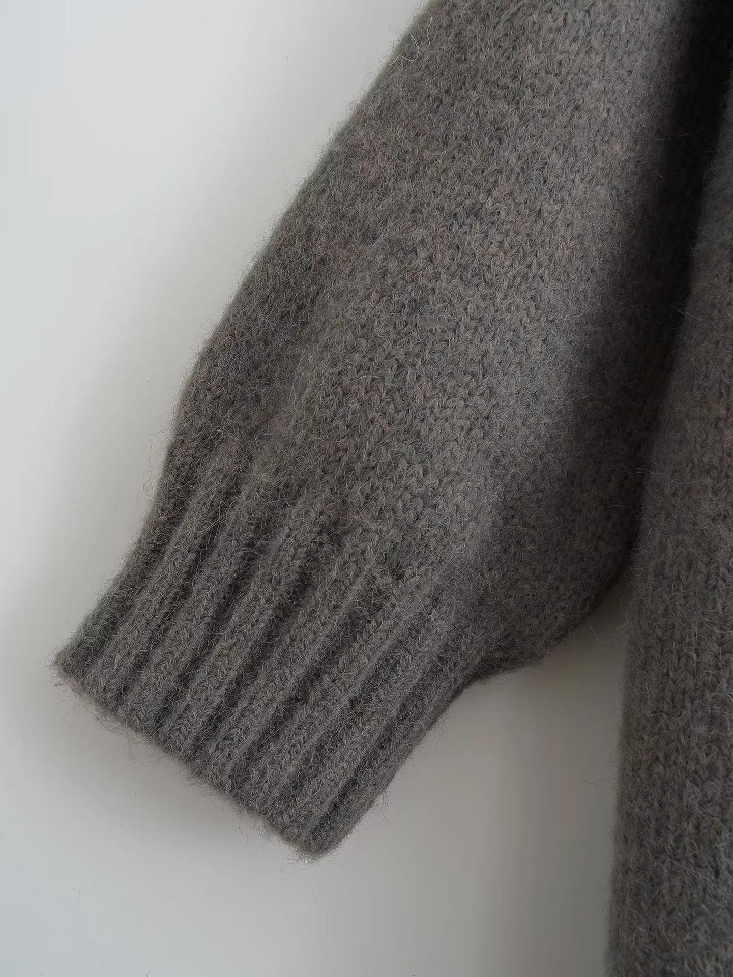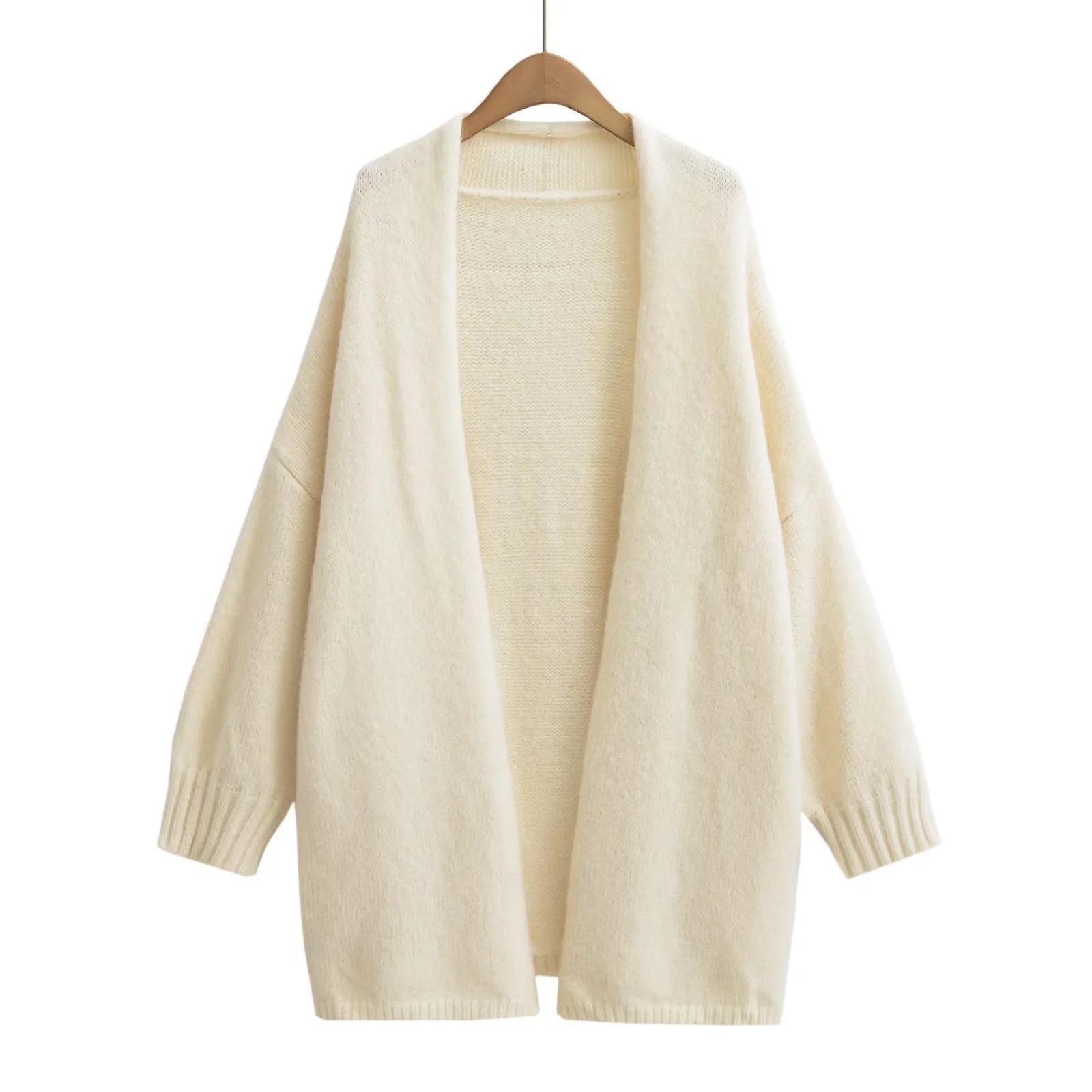 Chaqueta Suéter Retro de Largo Medio con Manga Farol para Mujer Otoño e Invierno Nuevo Abrigo Exterior Estilo Holgazán Cárdigan de Punto Suelto