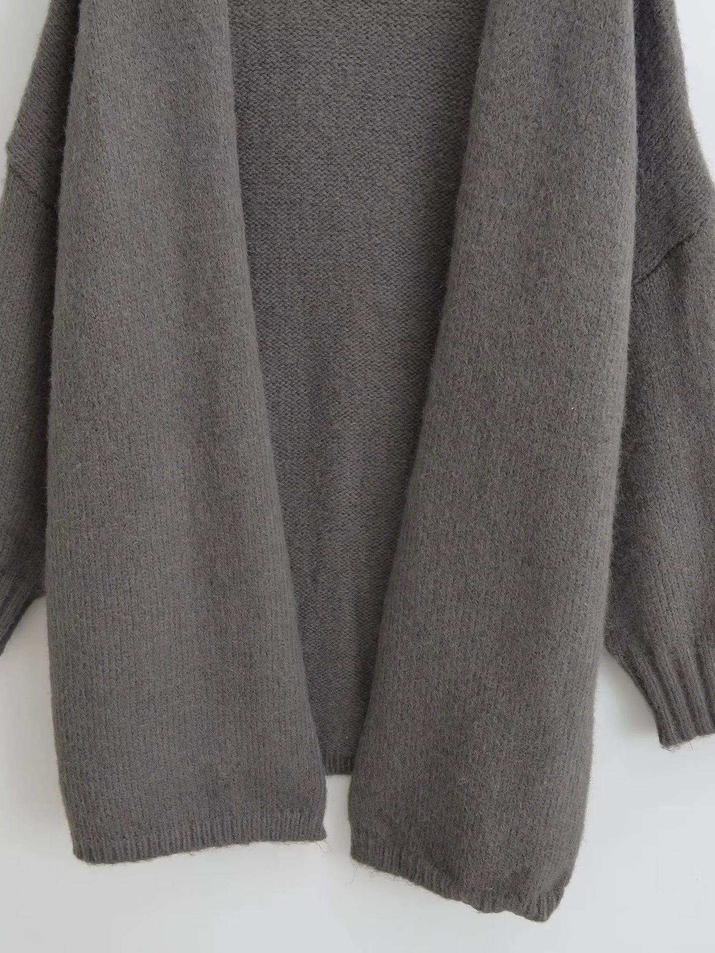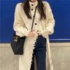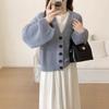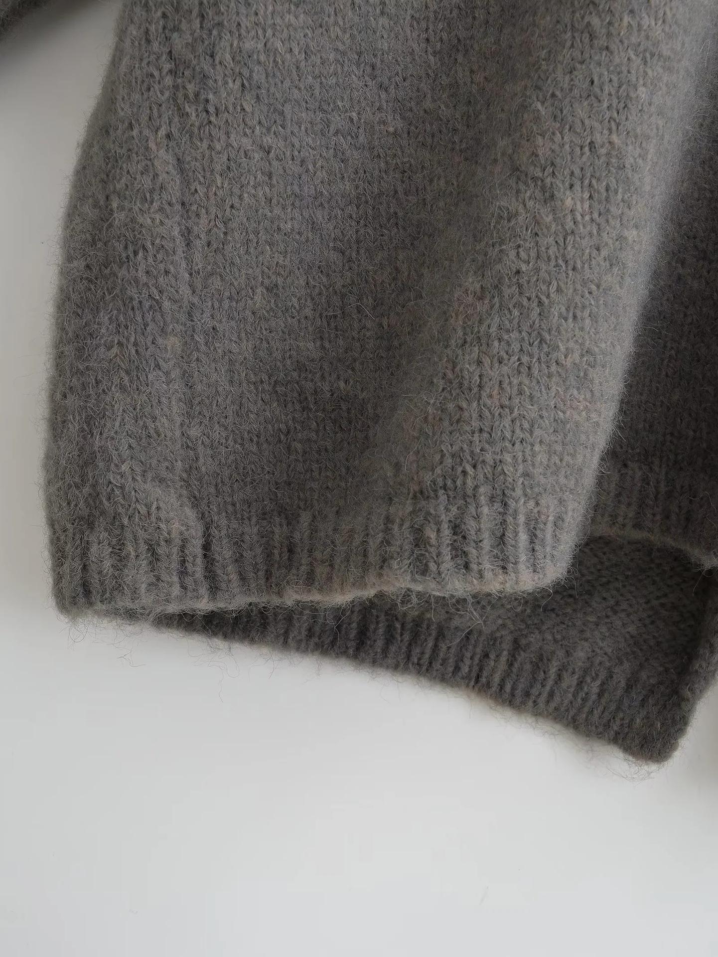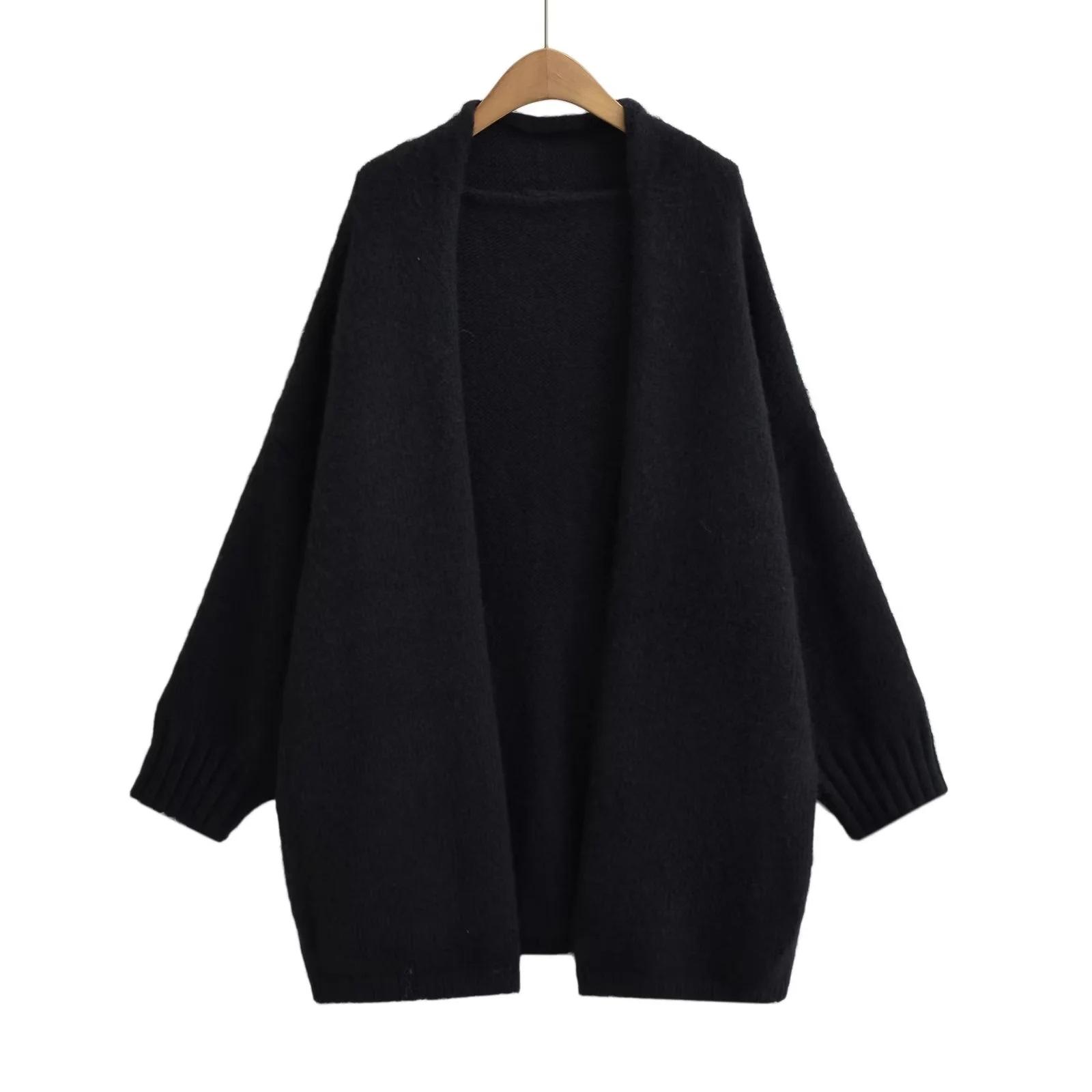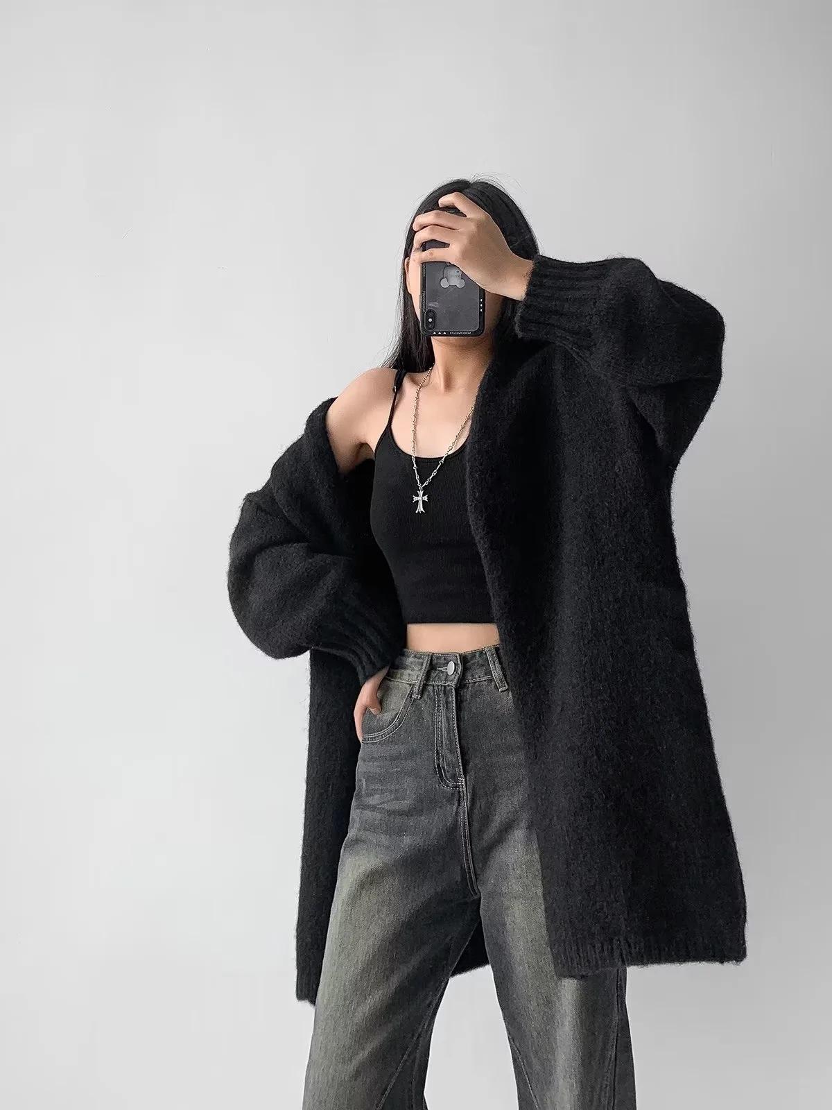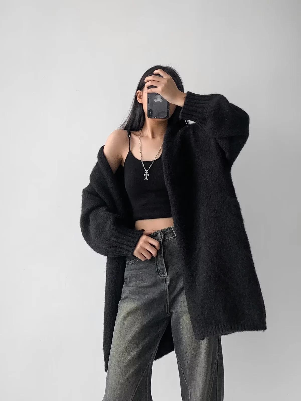 Chaqueta Suéter Retro de Largo Medio con Manga Farol para Mujer Otoño e Invierno Nuevo Abrigo Exterior Estilo Holgazán Cárdigan de Punto Suelto