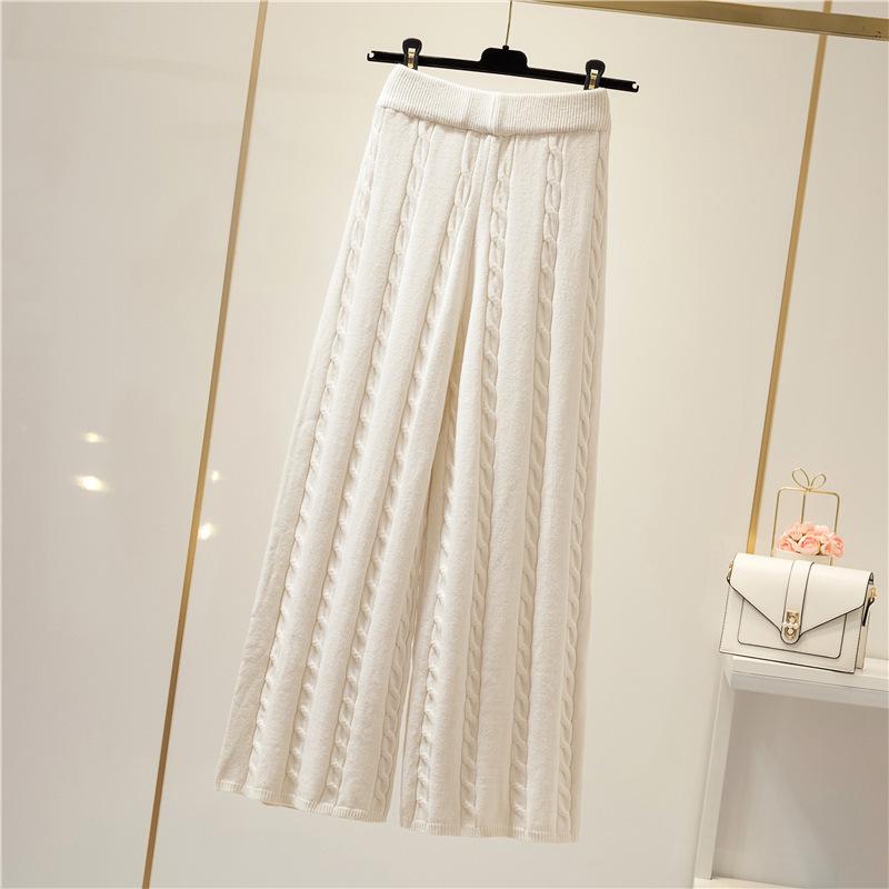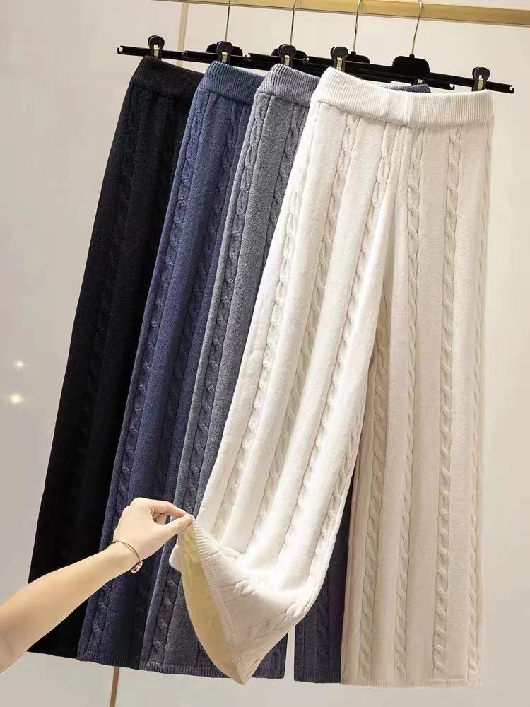 Pantalones anchos de punto para mujer, primavera y otoño, nuevos pantalones de cintura alta, pantalones de invierno rectos, sueltos, de talla grande, largos, adelgazantes