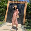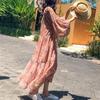 Falda Floral de Chifón Estilo Primavera Nuevo Suelta Vacacional Falda Larga Protección Solar Vestido Elegante de Manga Larga Ropa de Comercio Exterior Europea y Americana