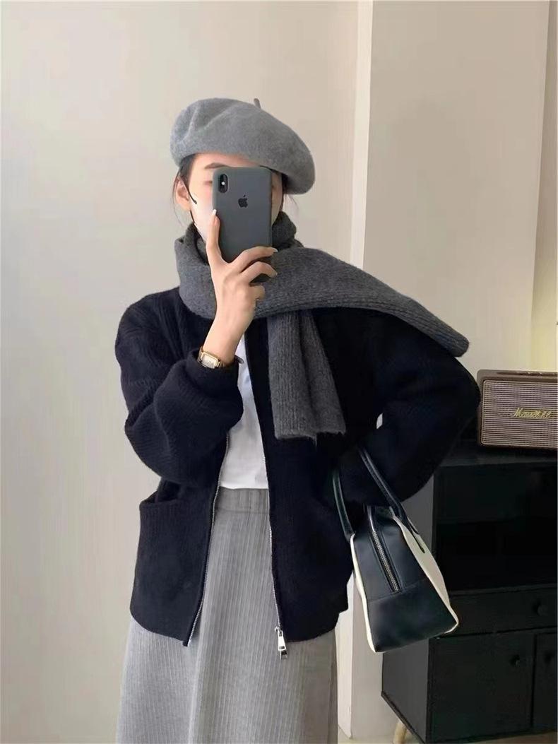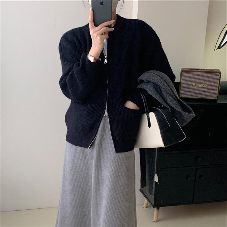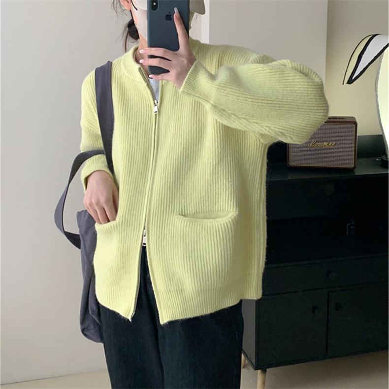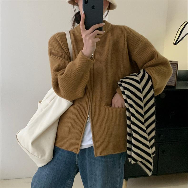 2025 Nuevo Diseño Otoño e Invierno Nicho Pequeño Fragancia Color Puro Suéter Cárdigan Chaqueta de Punto Ropa de Mujer
