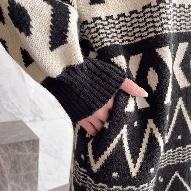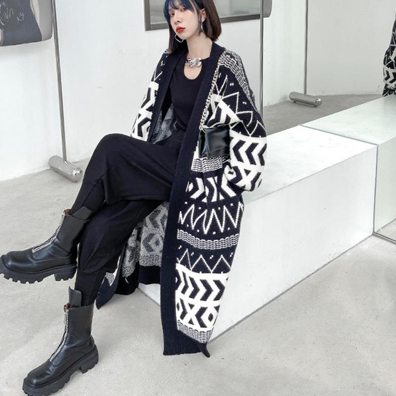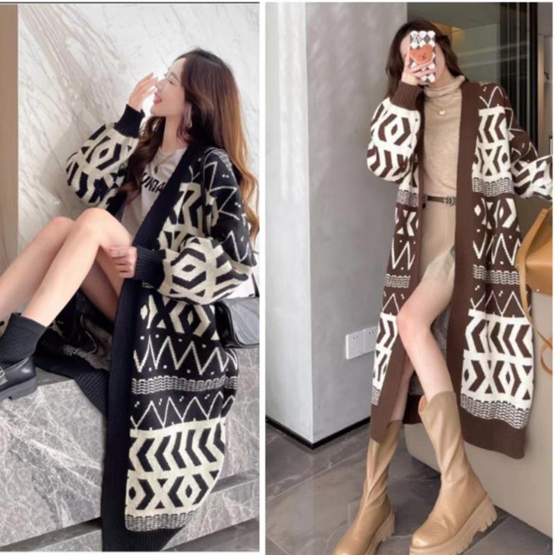 Suéter abrigo cárdigan mujer otoño e invierno largo por encima de la rodilla diseño suelto adelgazante estilo retro perezoso suéter moda