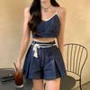 Verano Nuevo Moda Francesa Nicho Cuello en V Top Corto Halter + Shorts de Cintura Alta Traje de Moda Petite para Mujer