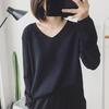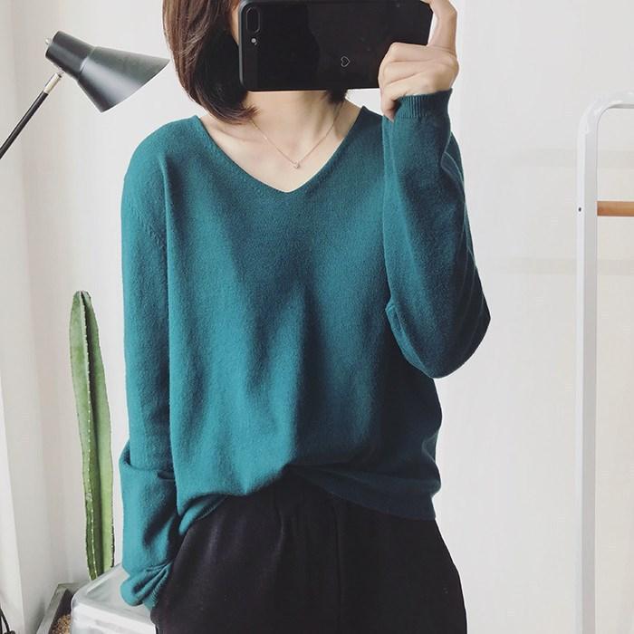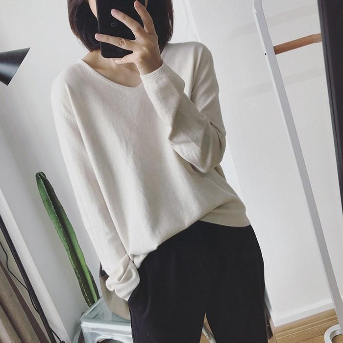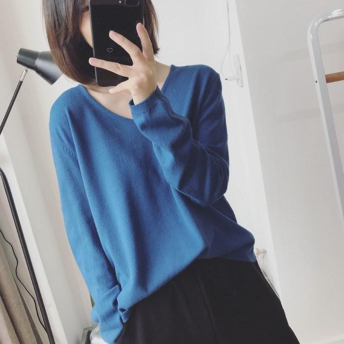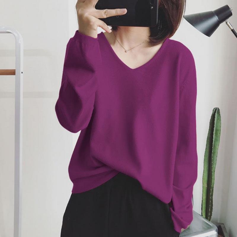 Otoño e Invierno 2025 Nuevo Estilo Coreano Suéter Holgado de Punto de Manga Larga con Cuello en V para Mujer Camiseta Base Suéter de Estudiante para Mujer