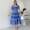 Vestido elegante de verano 2024, estilo suave, con cuello cuadrado y cintura, estilo transfronterizo europeo y americano, Amazon, color liso