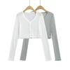 Camisas de Manga Larga Más Vendidas Transfronterizas Europeas y Americanas para Mujer, Ropa de Protección Solar de Largo Medio, Ropa de Verano, Cárdigan Fino con Estampado de Cuadros de Letras