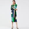 Vestido Miyake Adelgazante de Cintura Look 2025 Primavera Nuevo Elegante Slim Geométrico de Manga Larga Verano Estilo de Mujer