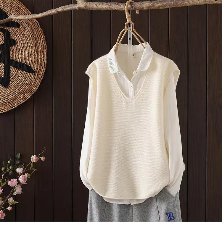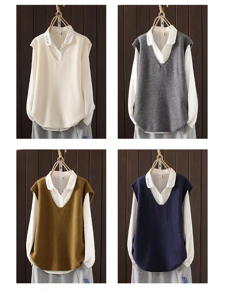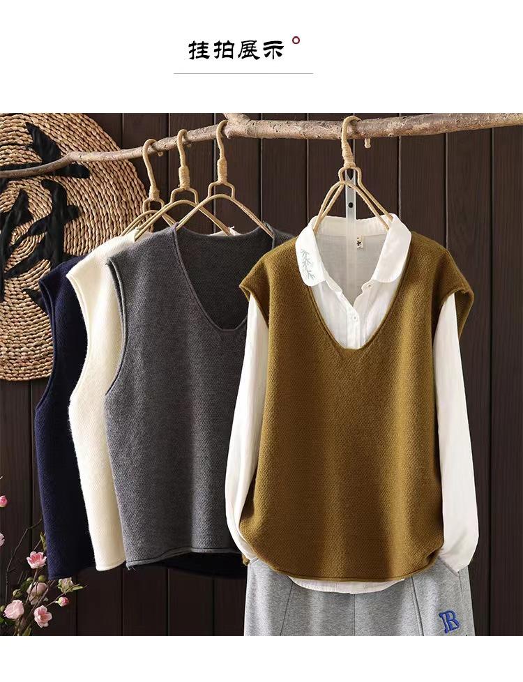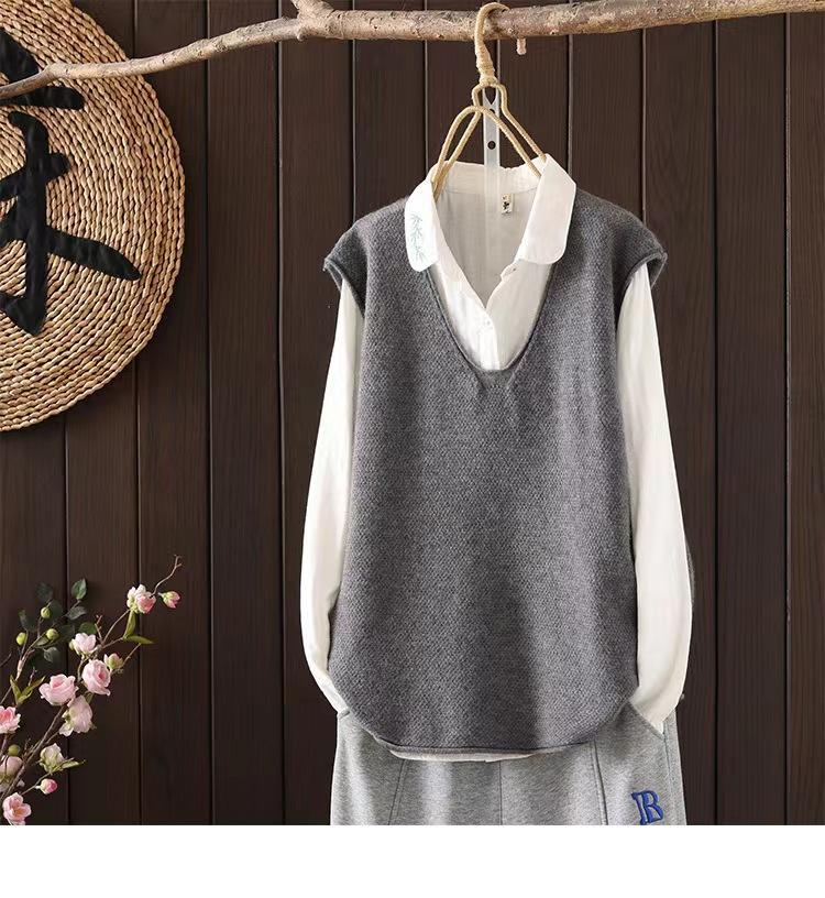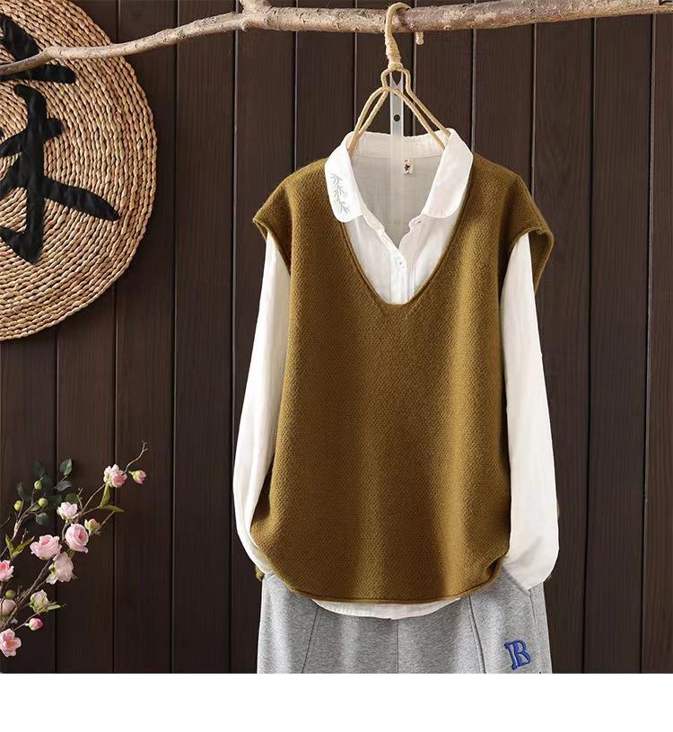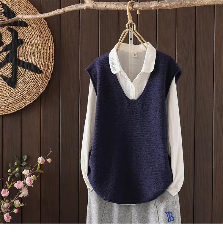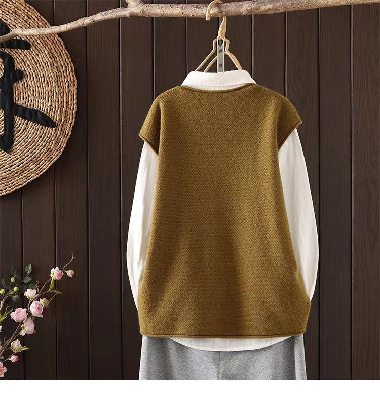 Top Chaleco de Punto Primavera y Otoño 2024 Nuevo Estilo para Mujer Estilo que Reduce la Edad Holgado Prenda Exterior Chaleco Suéter Chaleco Versátil