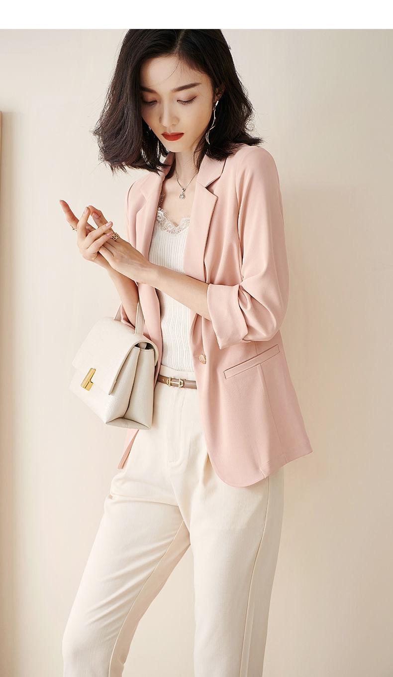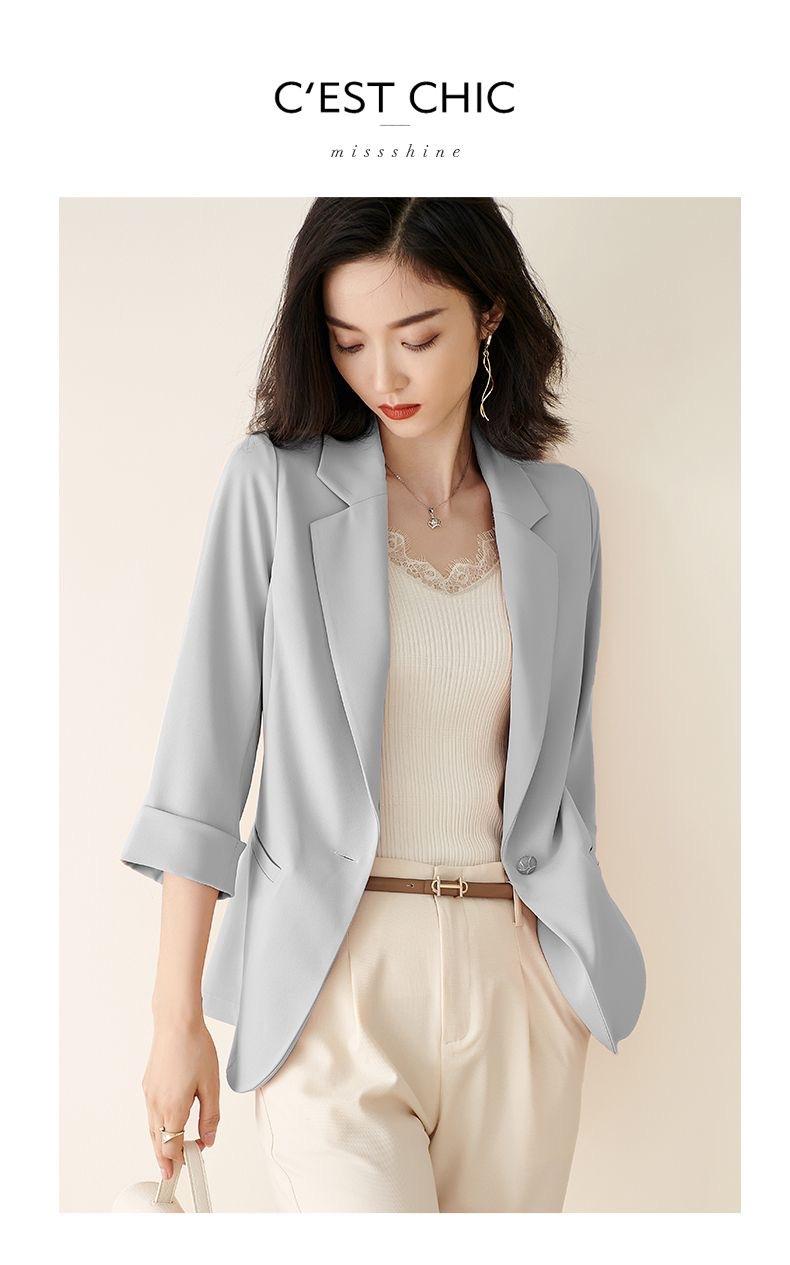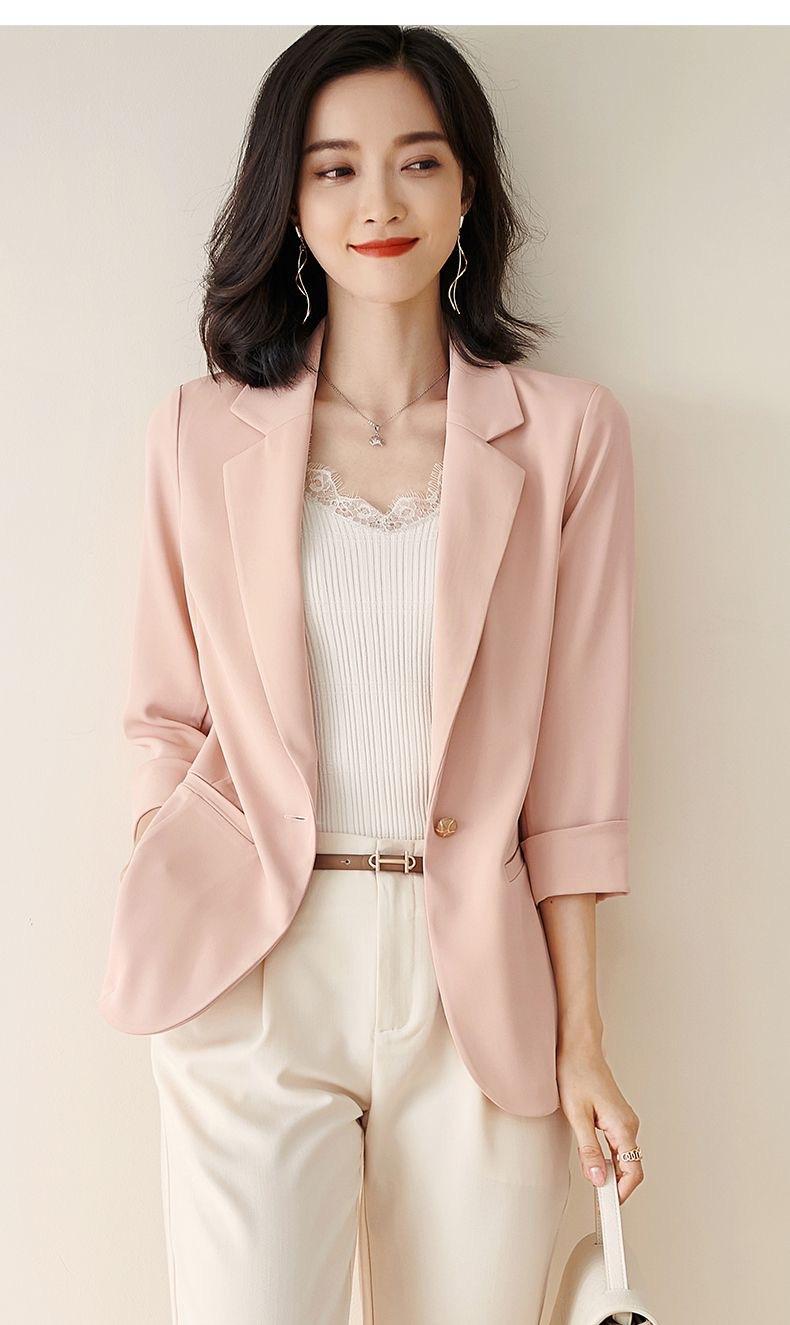 2025 Primavera y Verano Nuevo Estilo Intelectual y Elegante Ajustado de Un Botón Casual Versátil Chaqueta de Traje de Manga Tres Cuartos para Mujer