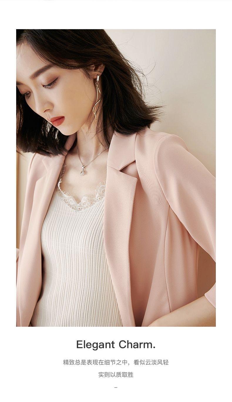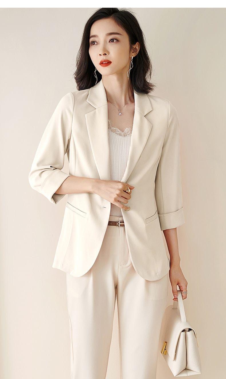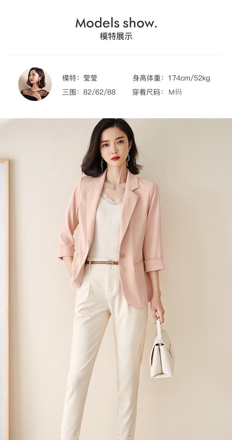 2025 Primavera y Verano Nuevo Estilo Intelectual y Elegante Ajustado de Un Botón Casual Versátil Chaqueta de Traje de Manga Tres Cuartos para Mujer