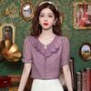 2024 Nueva Camisa de Gasa Fina Estampada para Mujer Verano Camisa Retro Moda Reductora de Edad Temperamento Top Trendy
