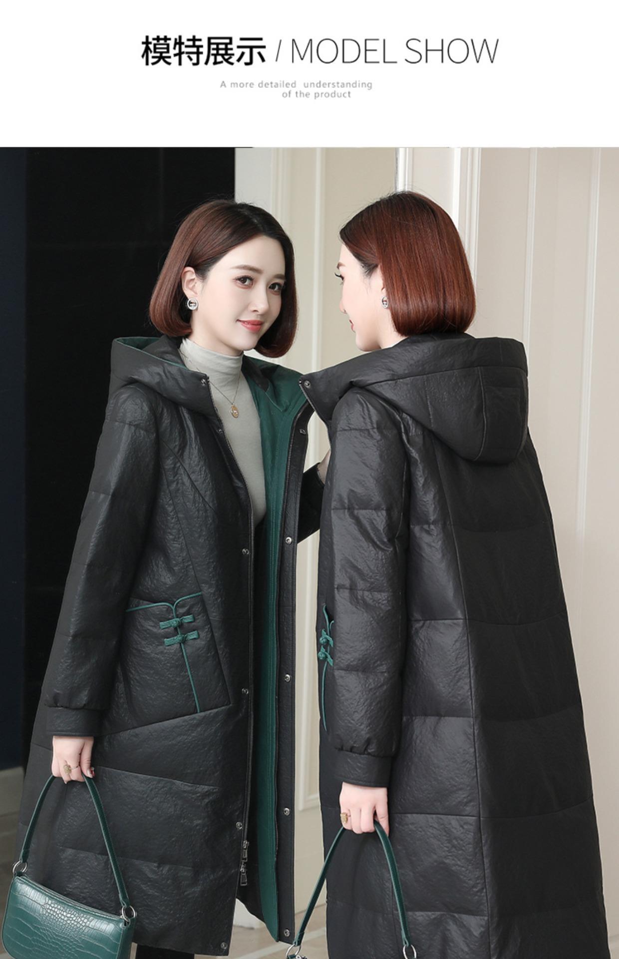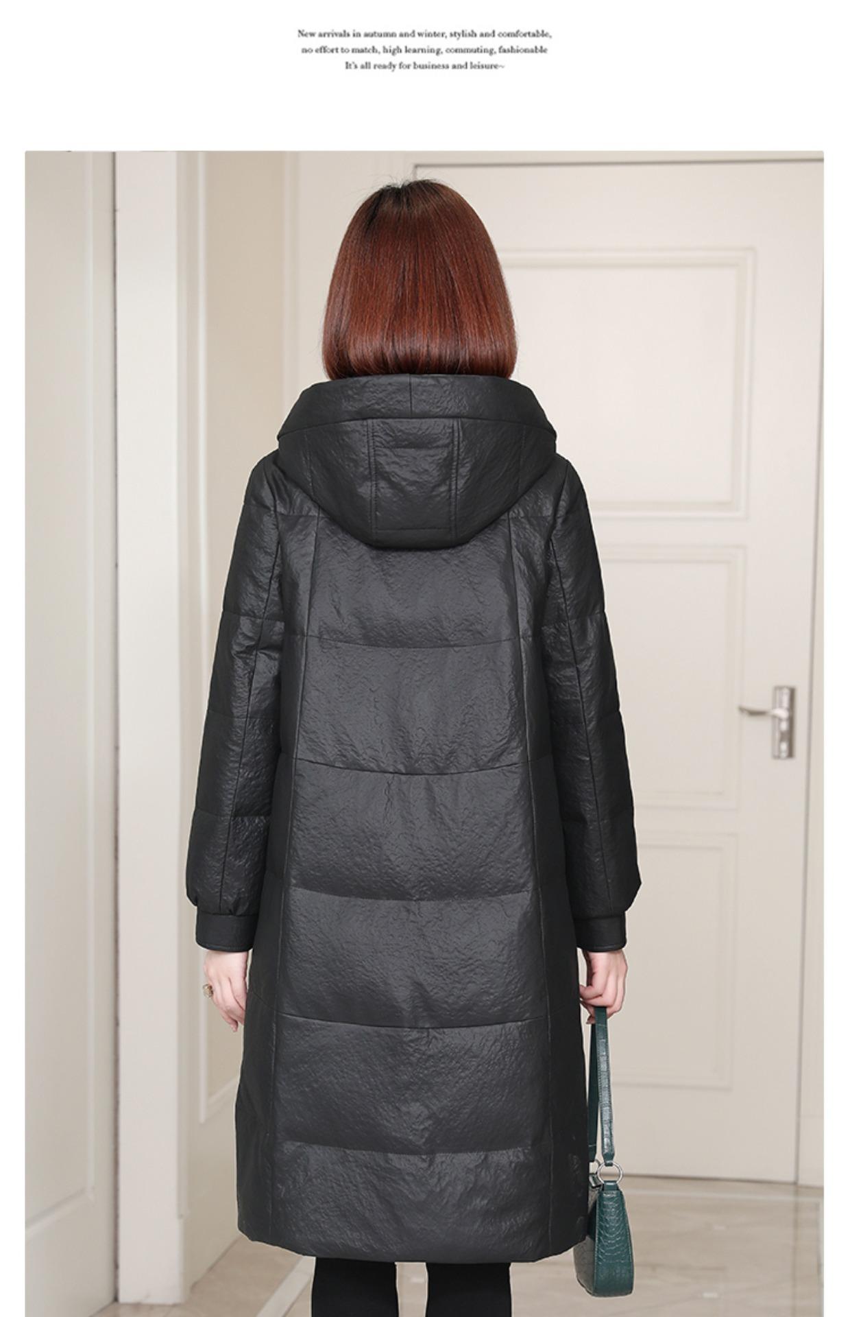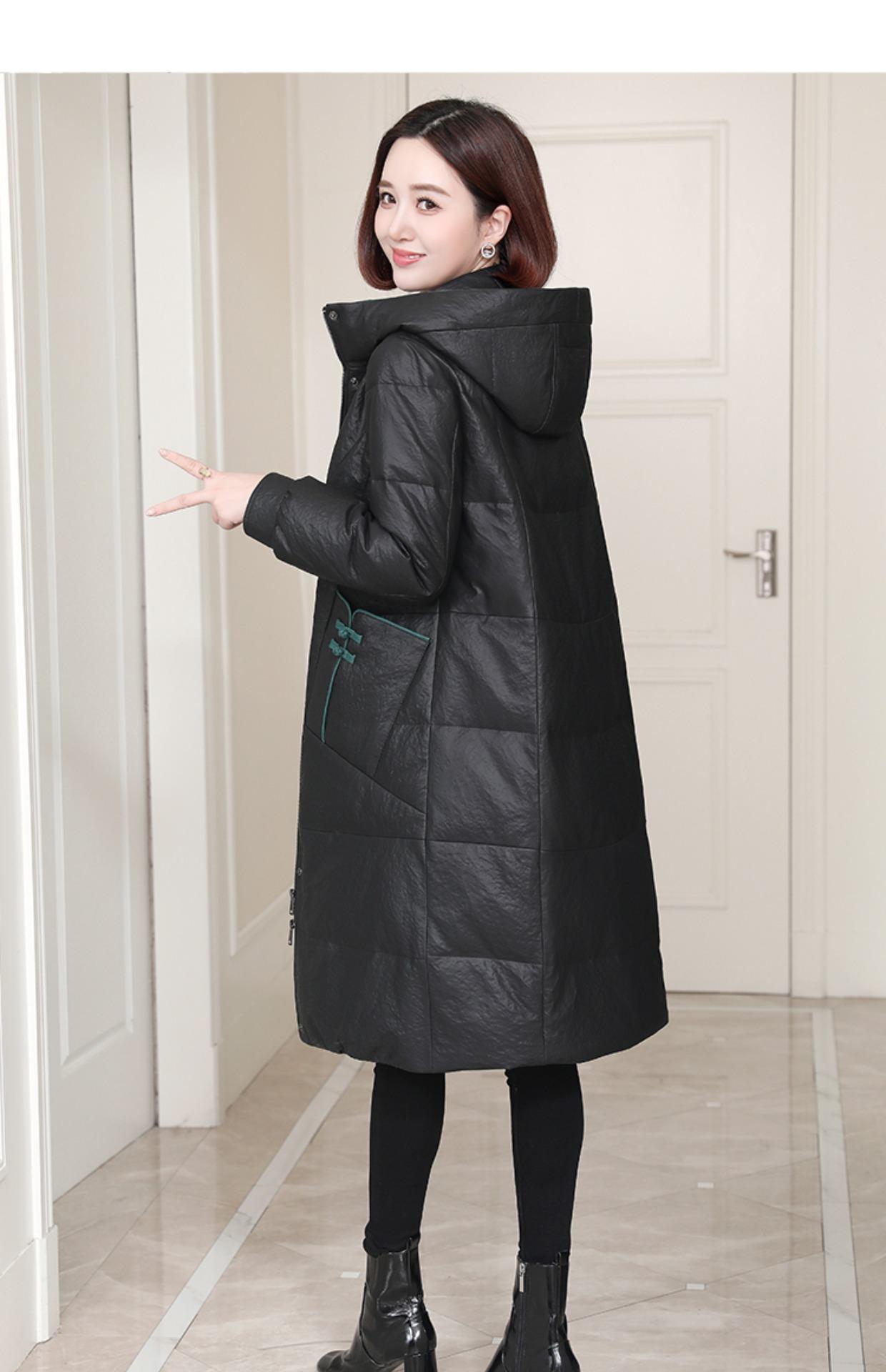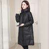 Chamarra de plumón de piel genuina para mujer de longitud media 2024 Haining Invierno Nueva Suelta con capucha Piel de cabra Chamarra de plumón Moderna