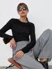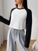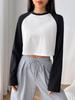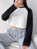 Ropa Europea y Americana Transfronteriza 2024 Otoño e Invierno Nueva Camiseta Top Ultracorta de Manga Larga Holgada Casual con Empalme de Color en Contraste