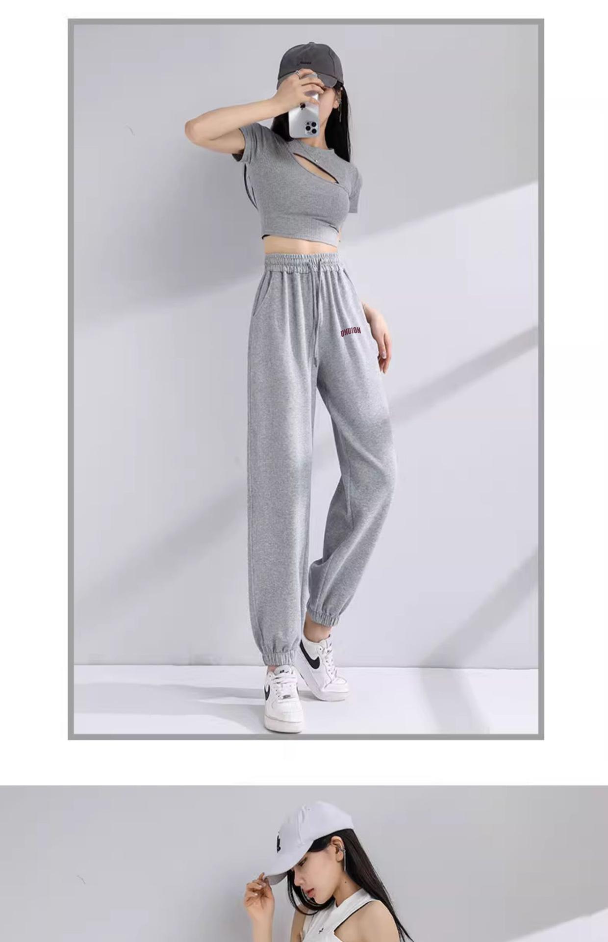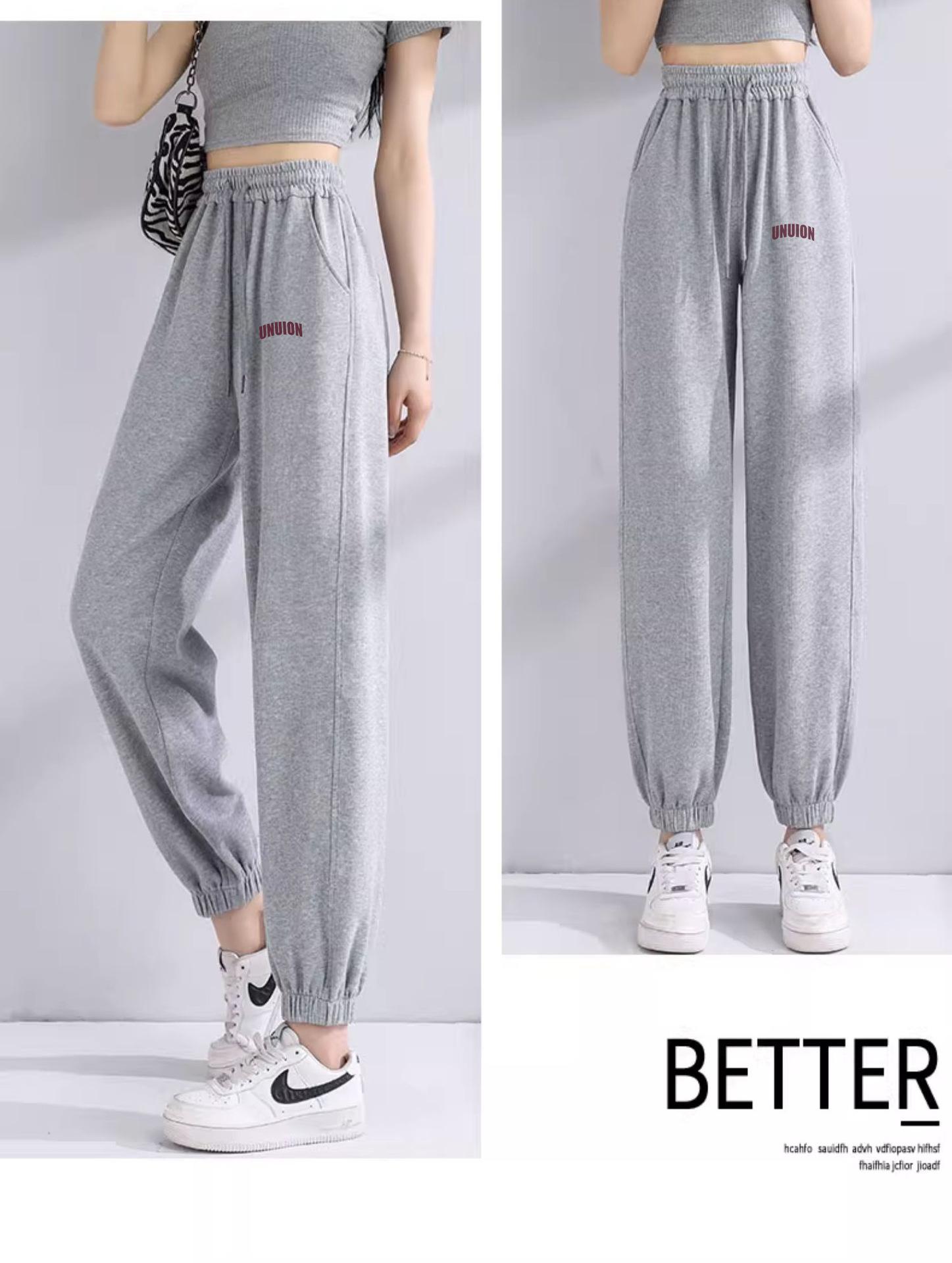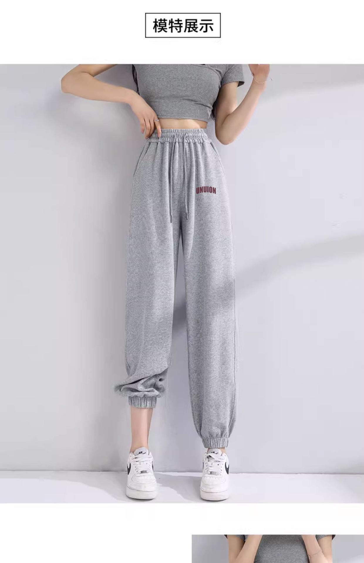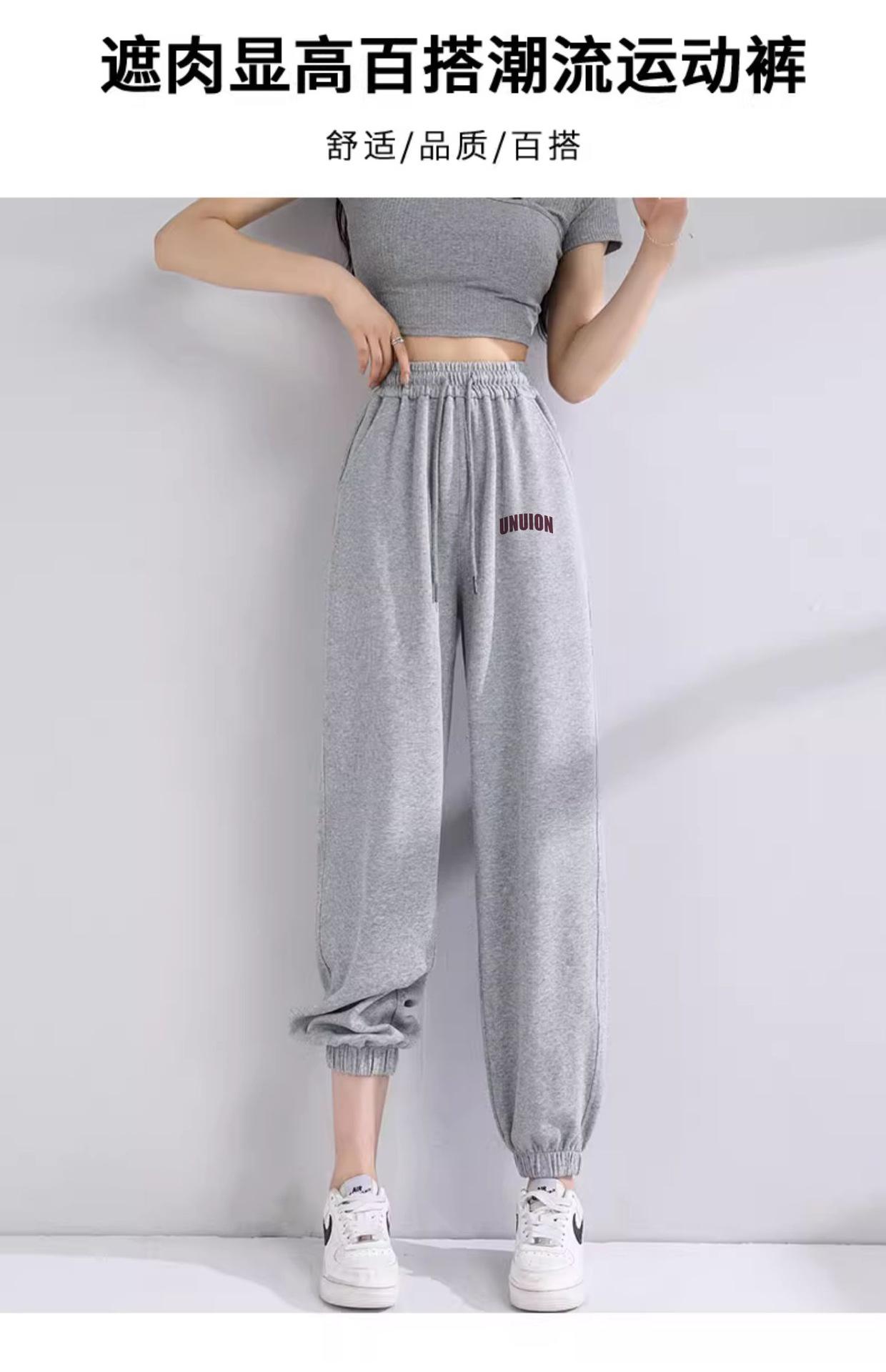 Pantalones Deportivos Pantalones de Mujer Otoño e Invierno 2023 Nueva Llegada Nueve puntos Sueltos Casual Combinan con todo Pie pequeño Gris Pantalones de Sudor