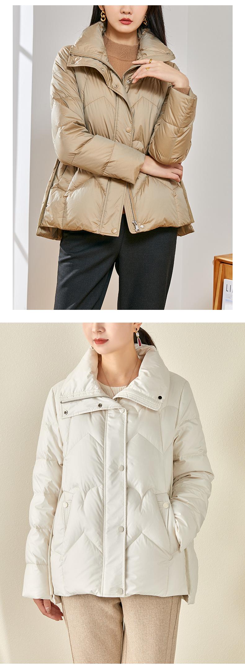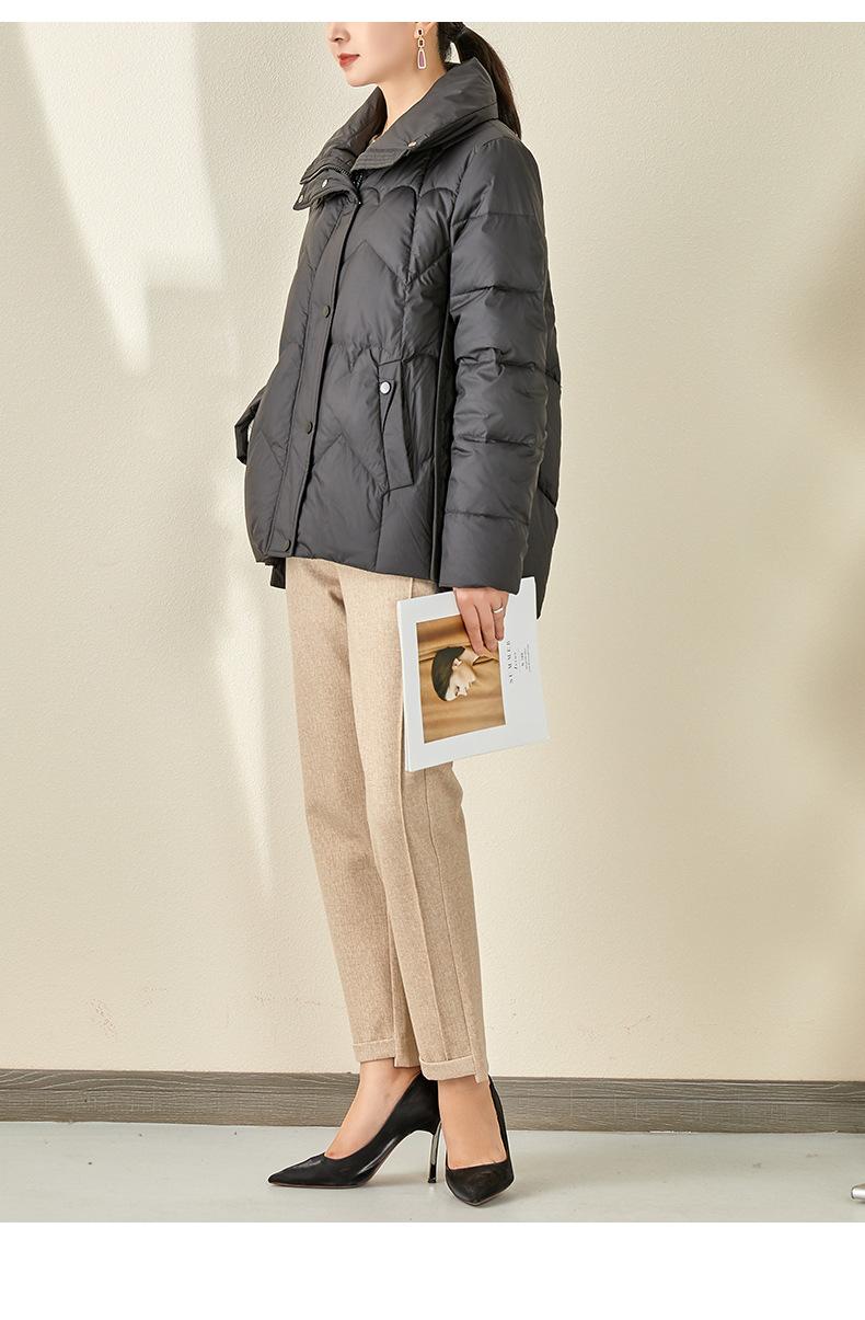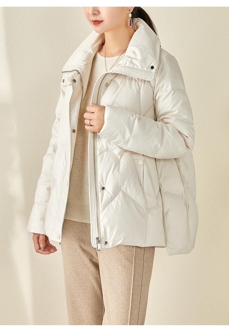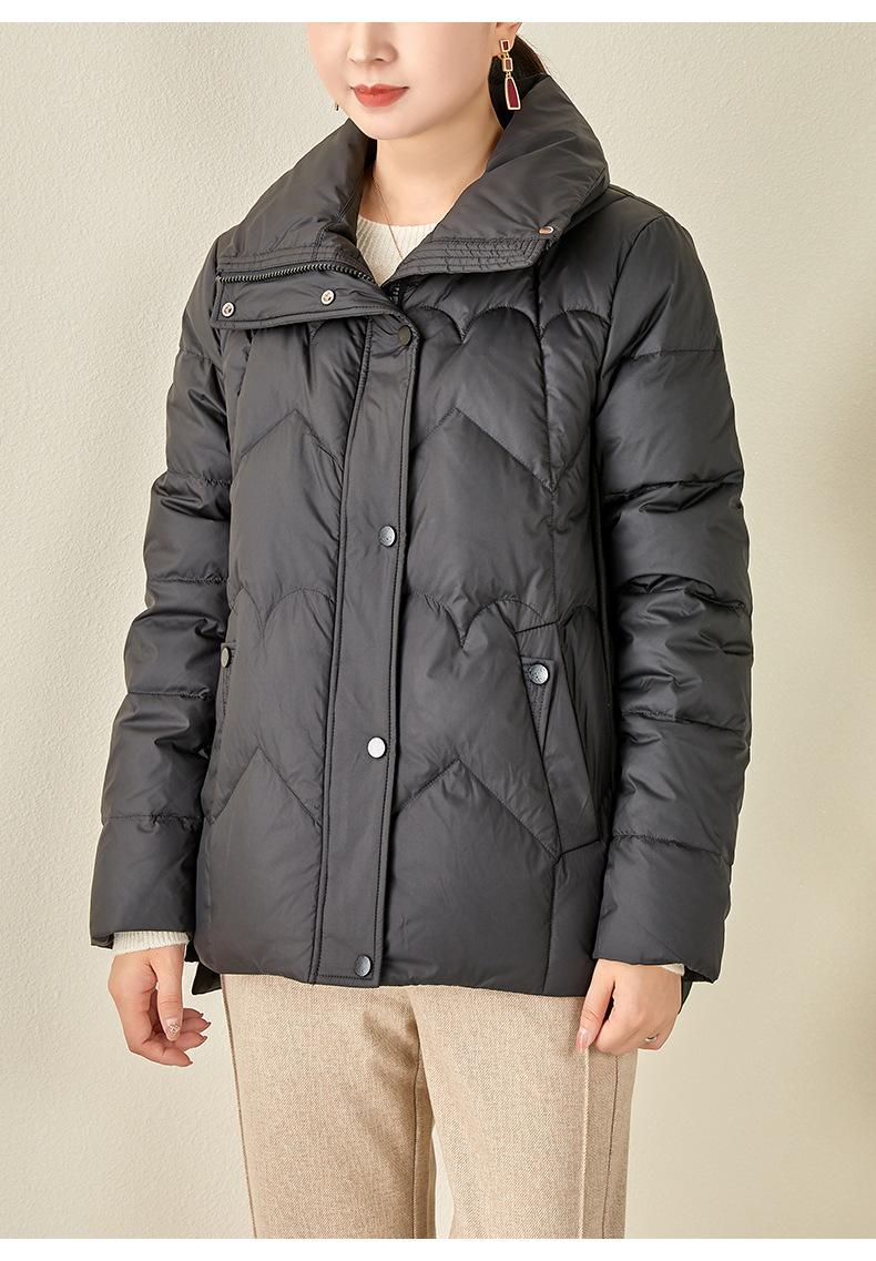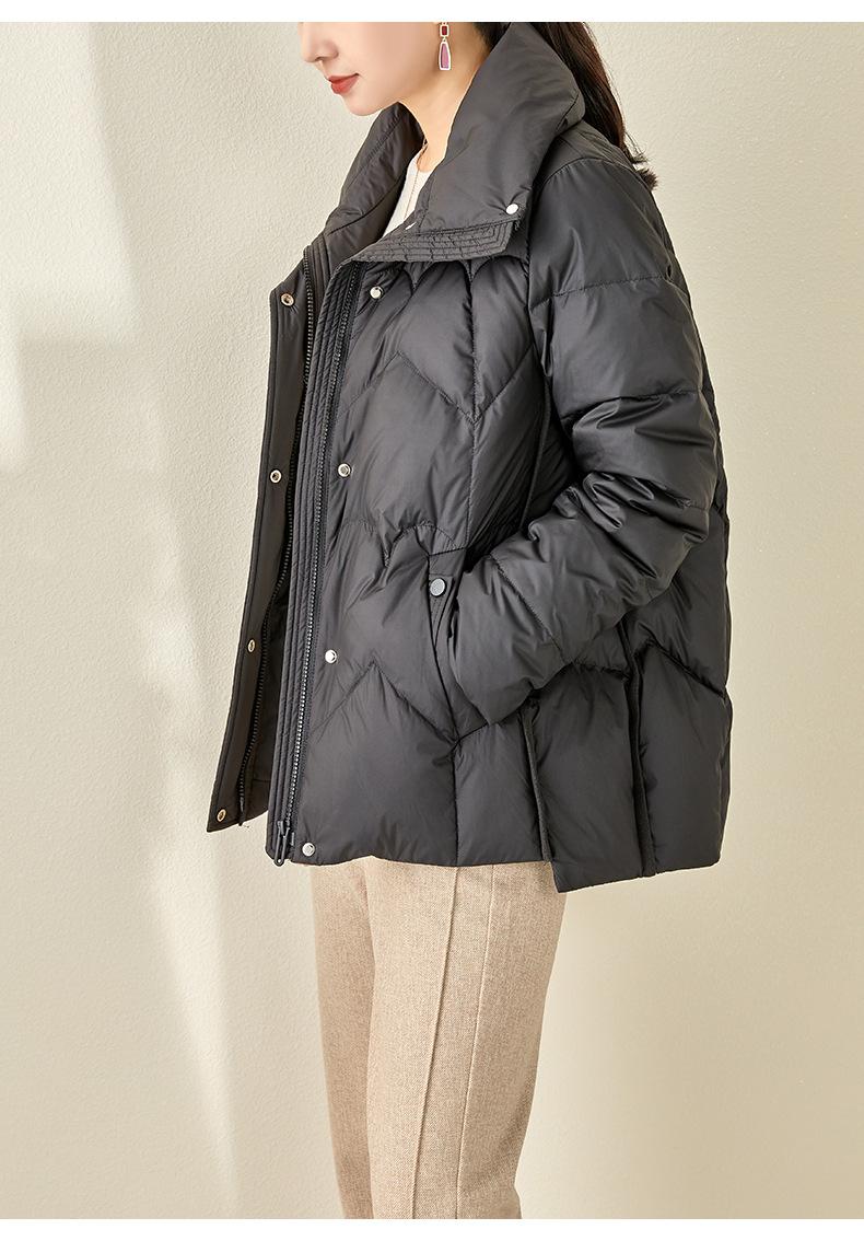 [Beneficios de Talla Grande] Chaqueta Corta de Invierno de Plumón de Ganso Chaqueta para Desplazamientos Solapa Versión Holgada Casual Color Sólido Chaqueta de Plumón para Mujer