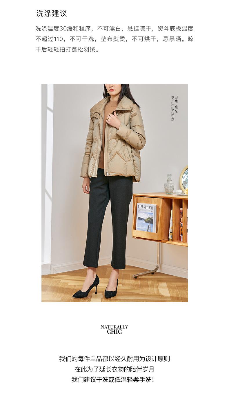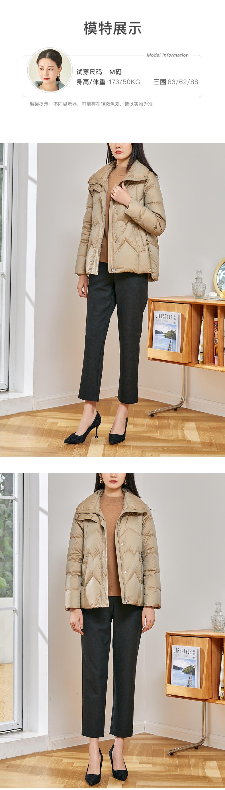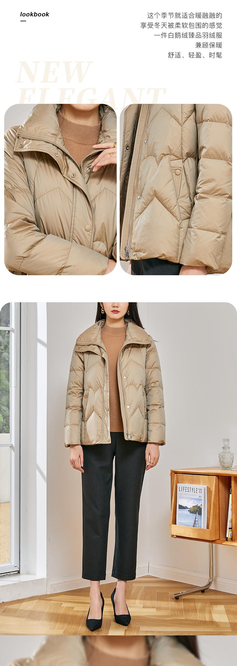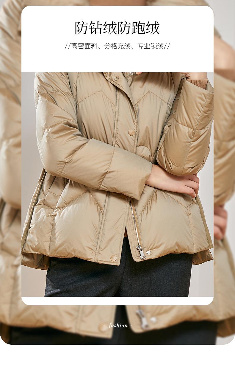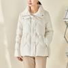 [Beneficios de Talla Grande] Chaqueta Corta de Invierno de Plumón de Ganso Chaqueta para Desplazamientos Solapa Versión Holgada Casual Color Sólido Chaqueta de Plumón para Mujer