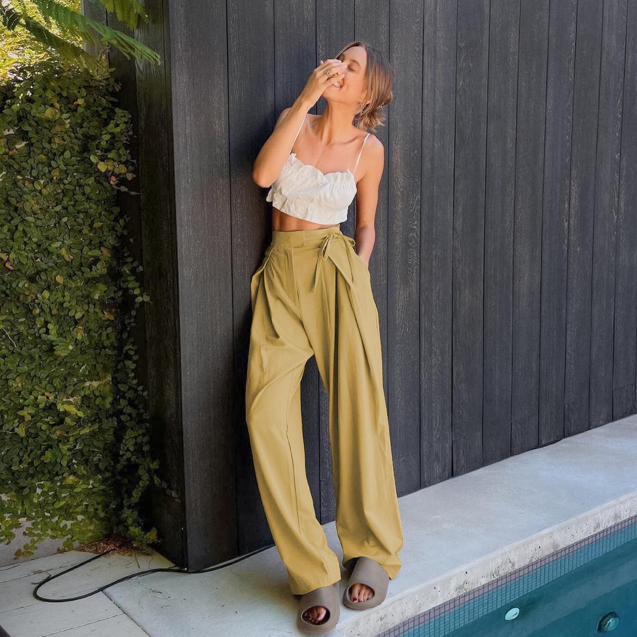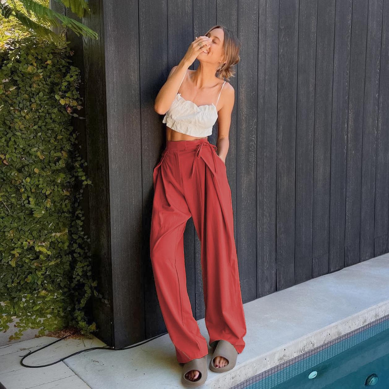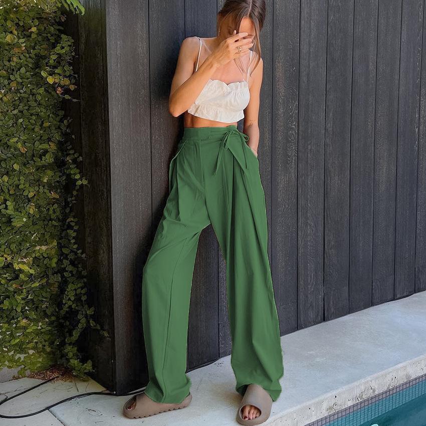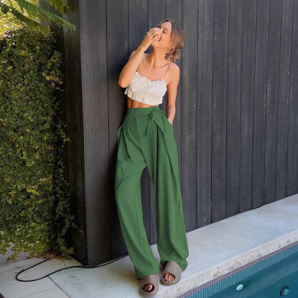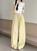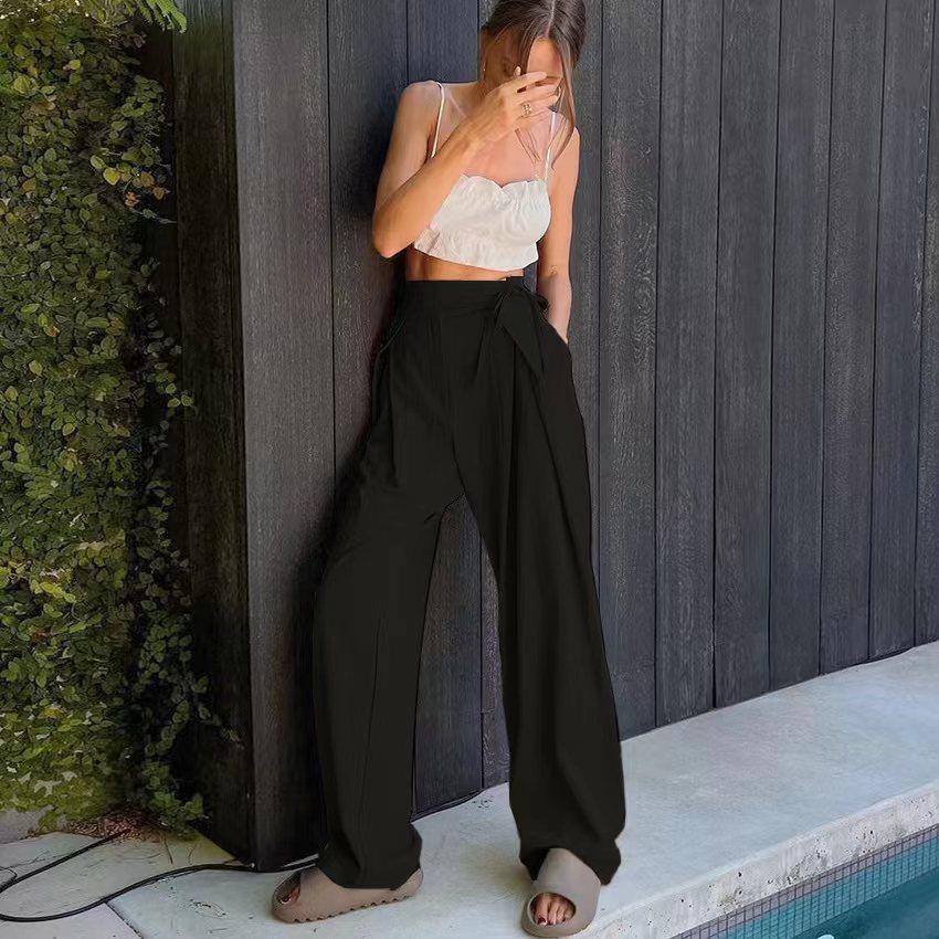 Pantalones Largos Sueltos de Verano Nuevos Europeos y Americanos 2025 Pantalones Rectos Sueltos de Cintura Alta Casuales a la Moda Pantalones de Pierna Ancha Drapeados para Mujer