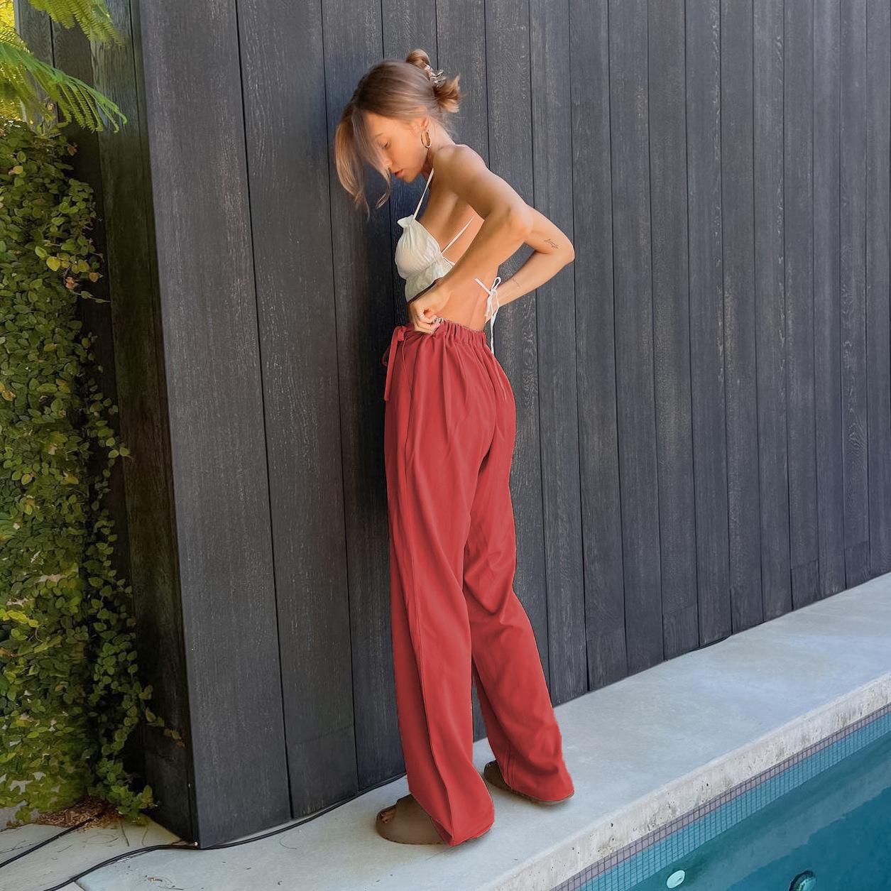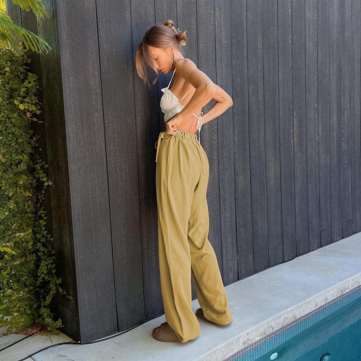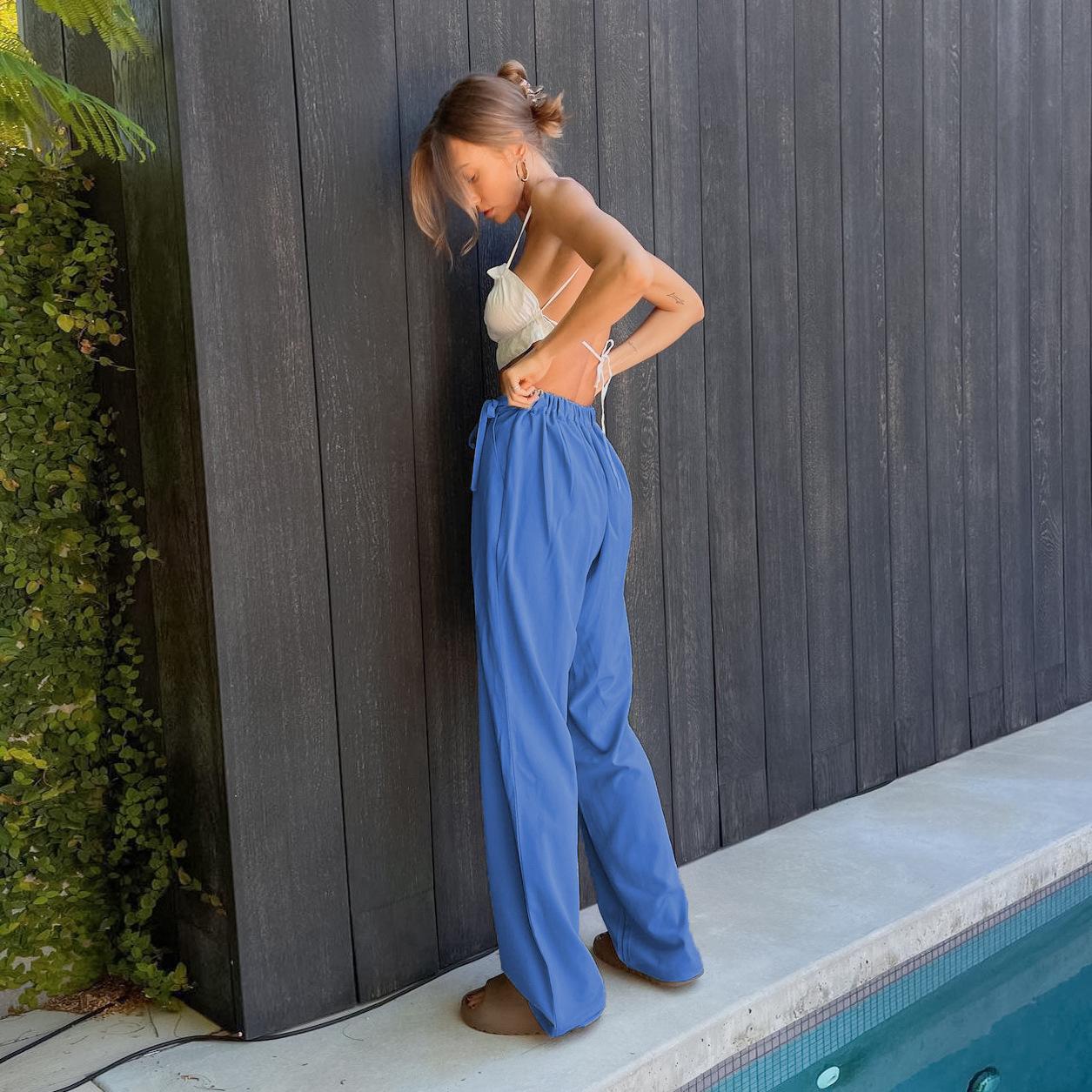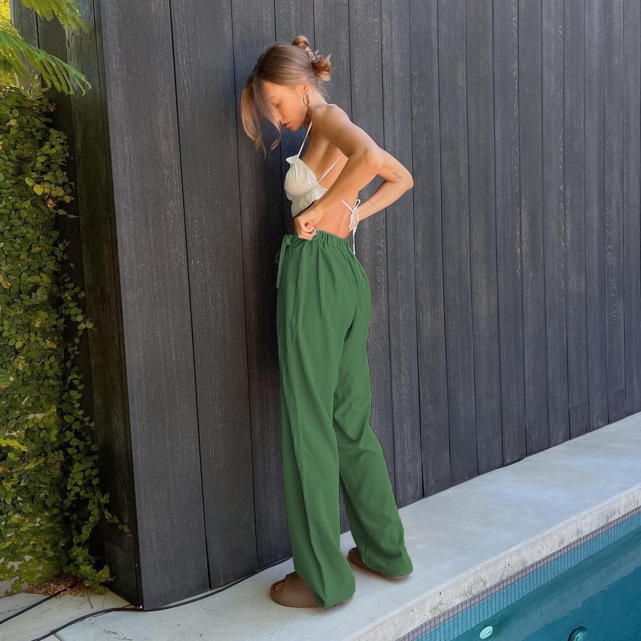 Pantalones Largos Sueltos de Verano Nuevos Europeos y Americanos 2025 Pantalones Rectos Sueltos de Cintura Alta Casuales a la Moda Pantalones de Pierna Ancha Drapeados para Mujer