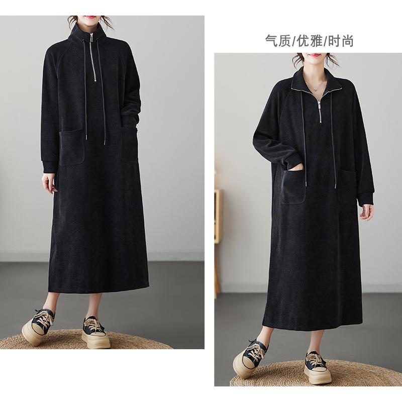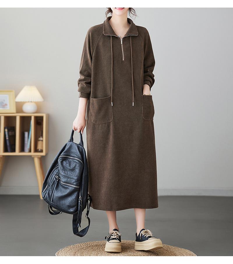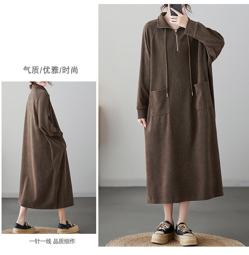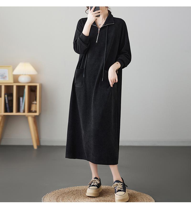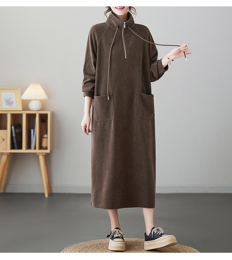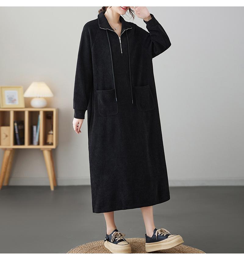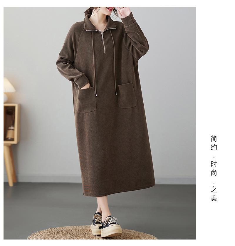 2025 Otoño e Invierno Nuevo Vestido de Color Puro Engrosado Holgado con Aspecto Adelgazante