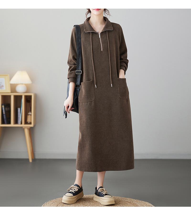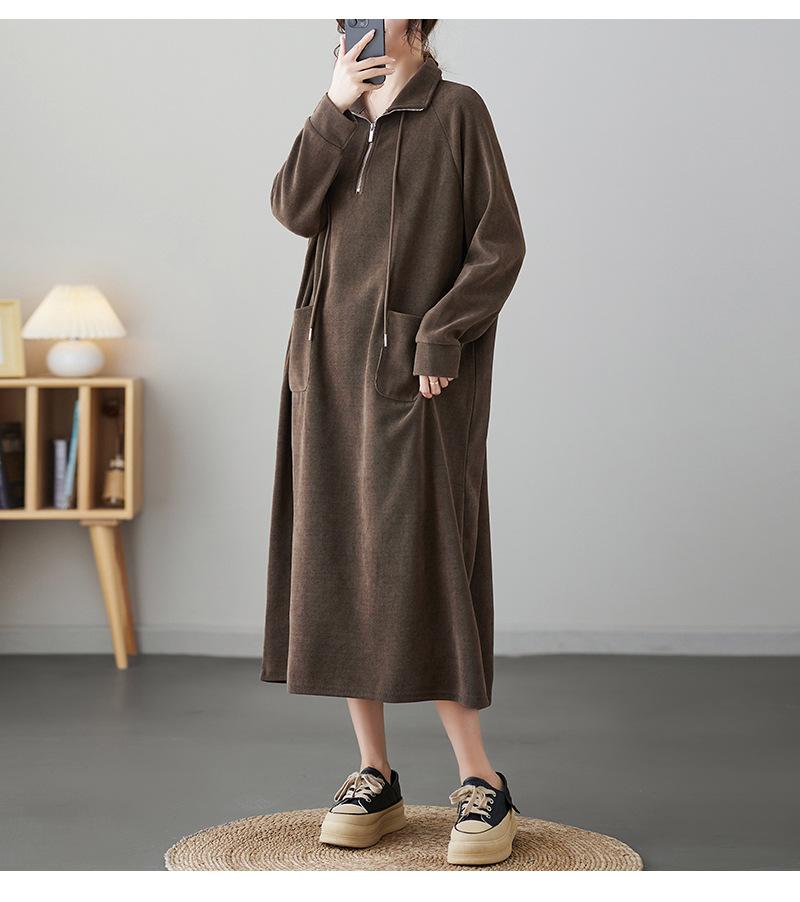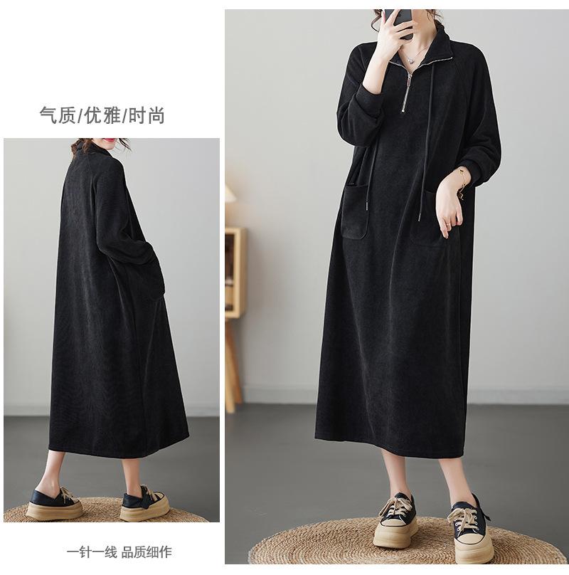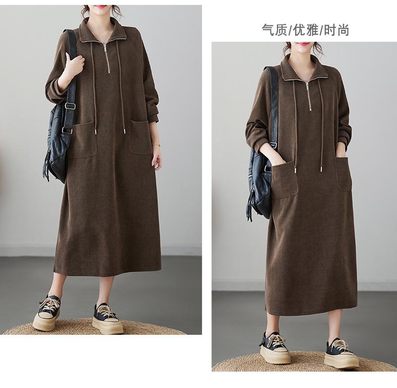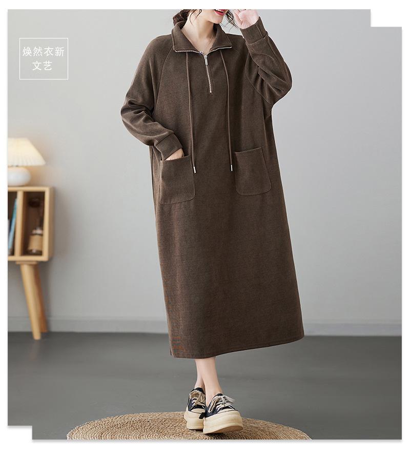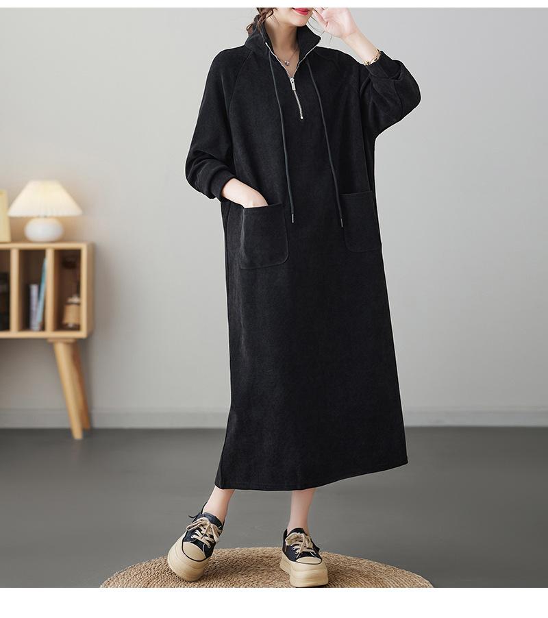 2025 Otoño e Invierno Nuevo Vestido de Color Puro Engrosado Holgado con Aspecto Adelgazante