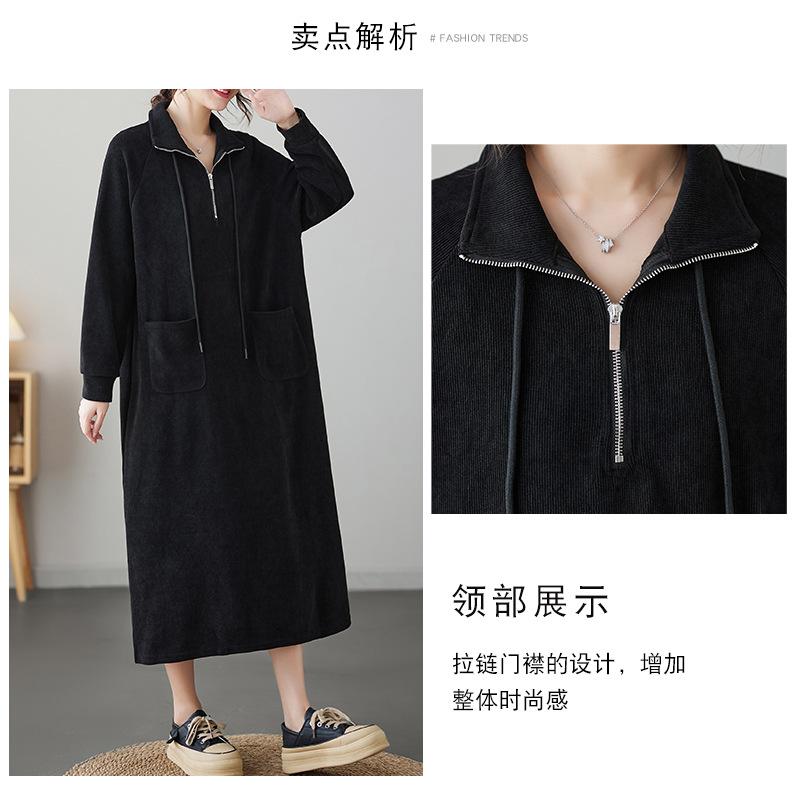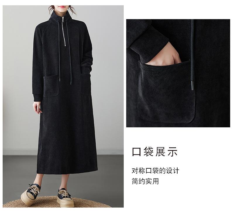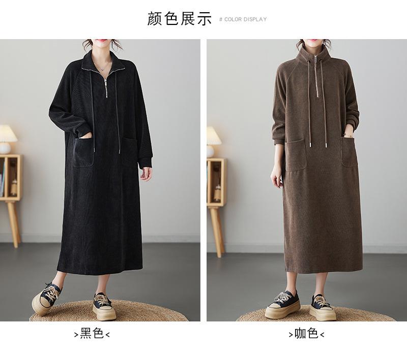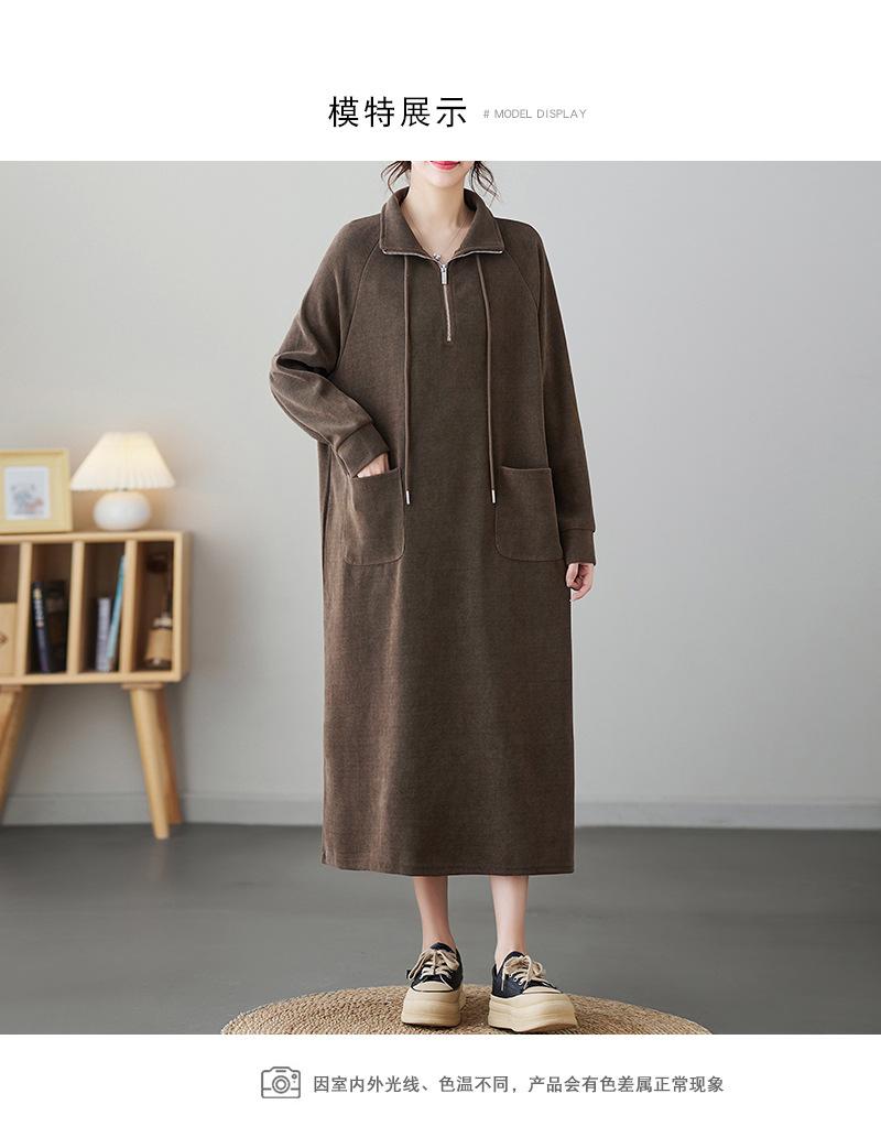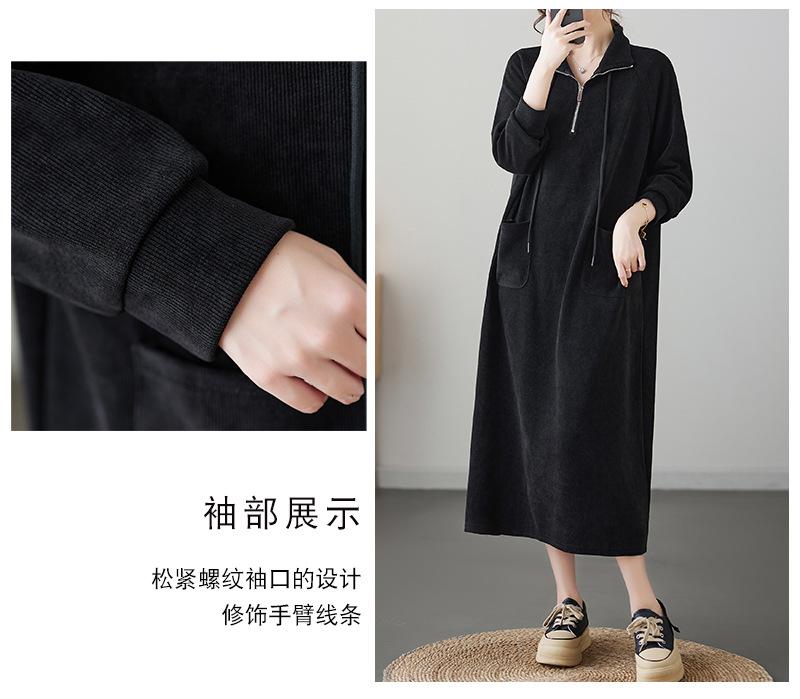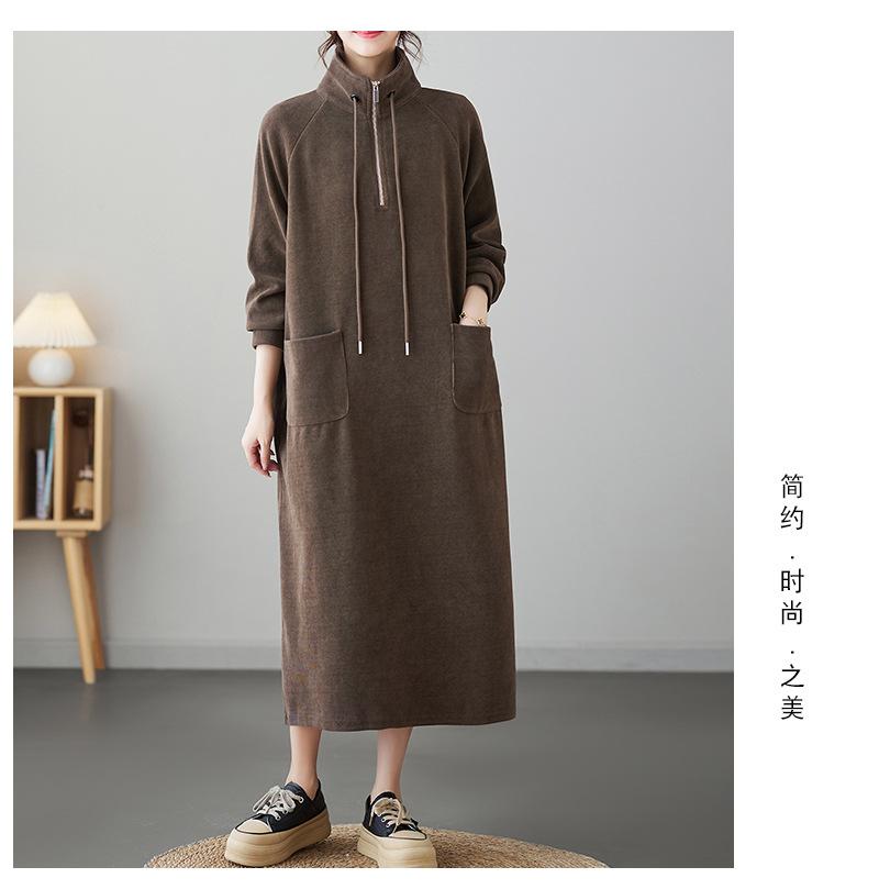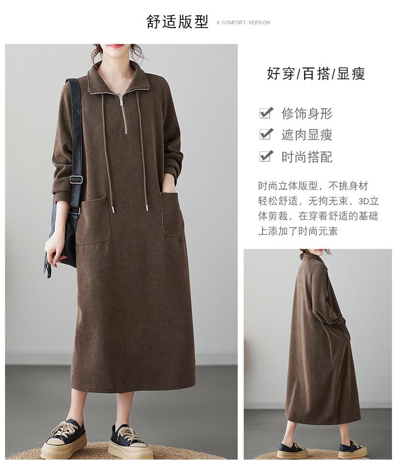 2025 Otoño e Invierno Nuevo Vestido de Color Puro Engrosado Holgado con Aspecto Adelgazante