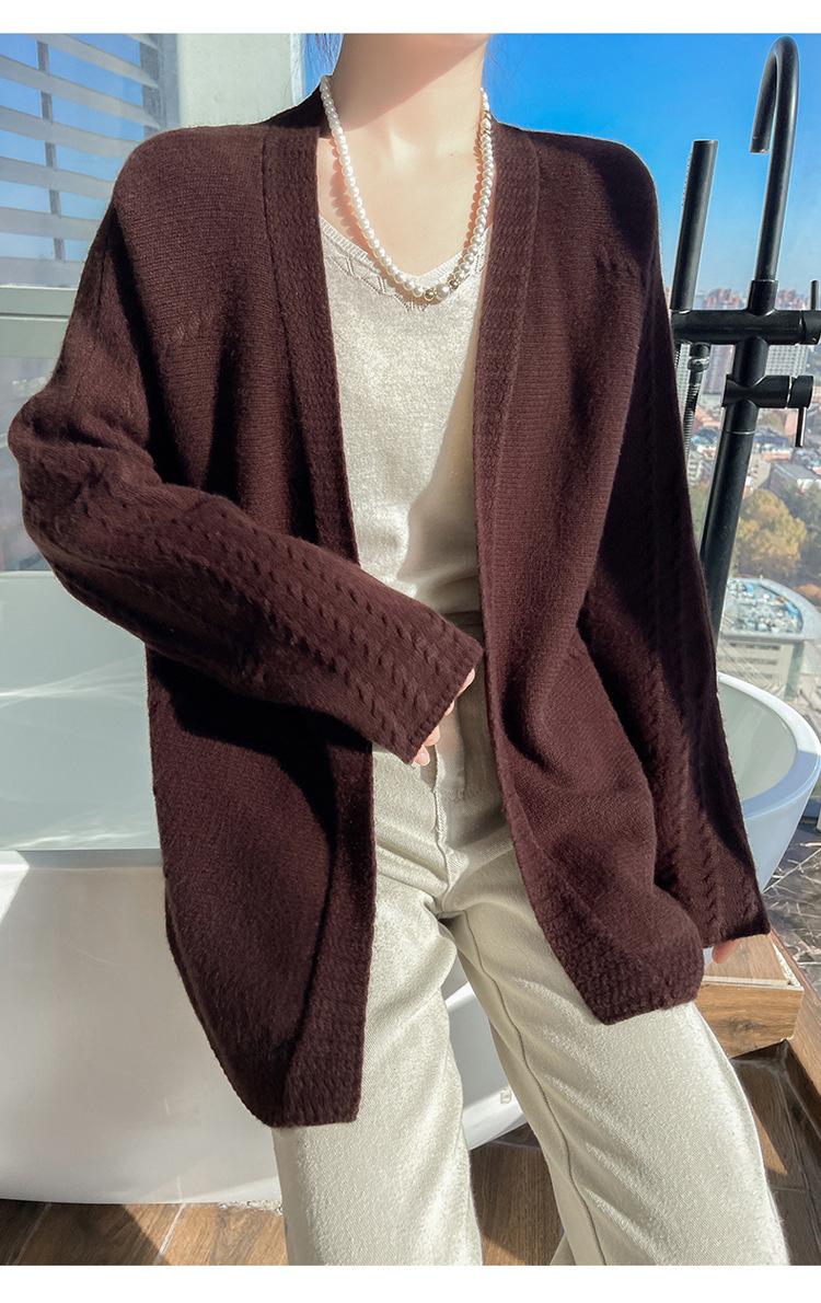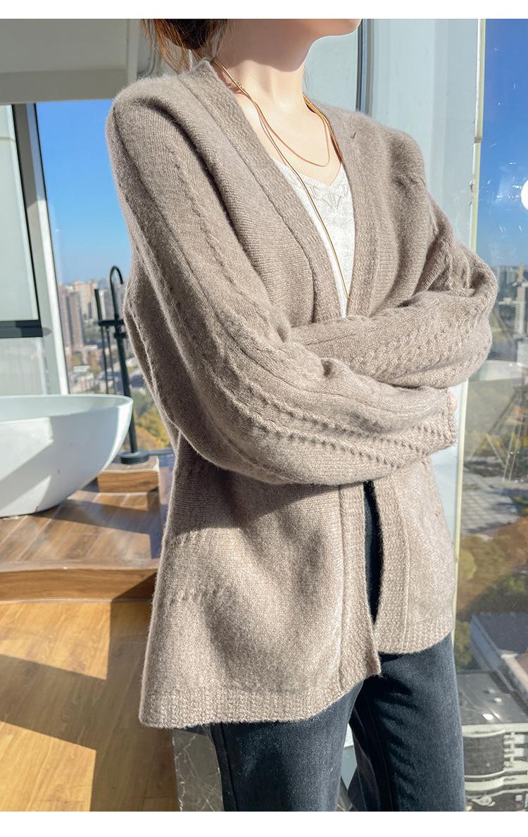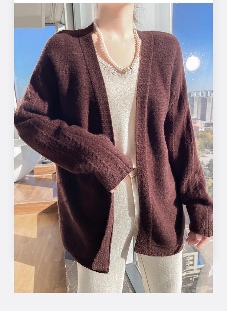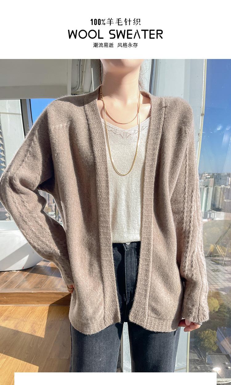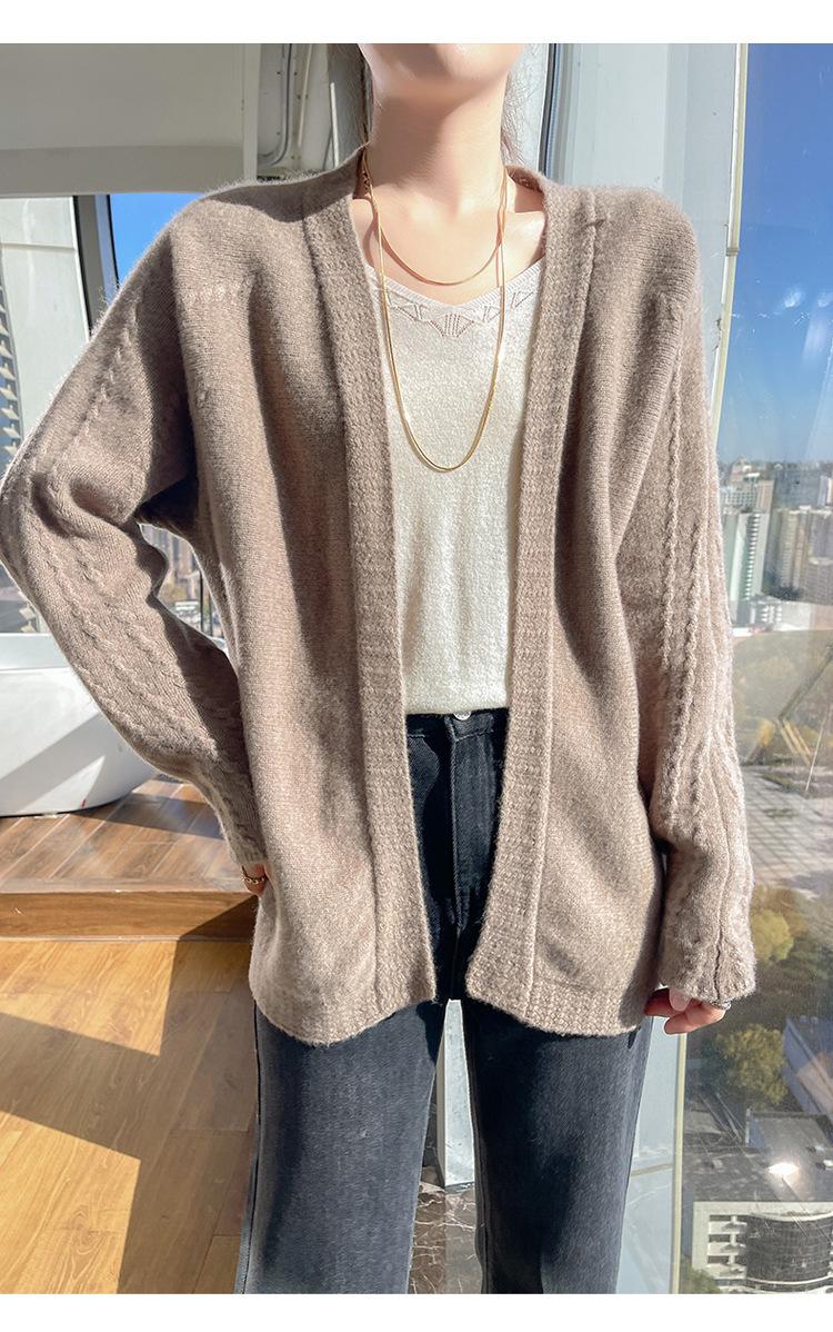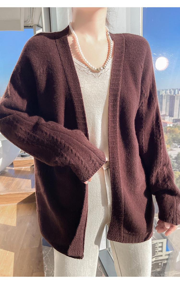 Estilo Coreano Otoño e Invierno Nuevo 2024 Cárdigan de Lana para Mujer Cuello en V Mangas de Hombro Caído Jacquard Grueso Suéter Exterior Cachemira Tejido