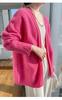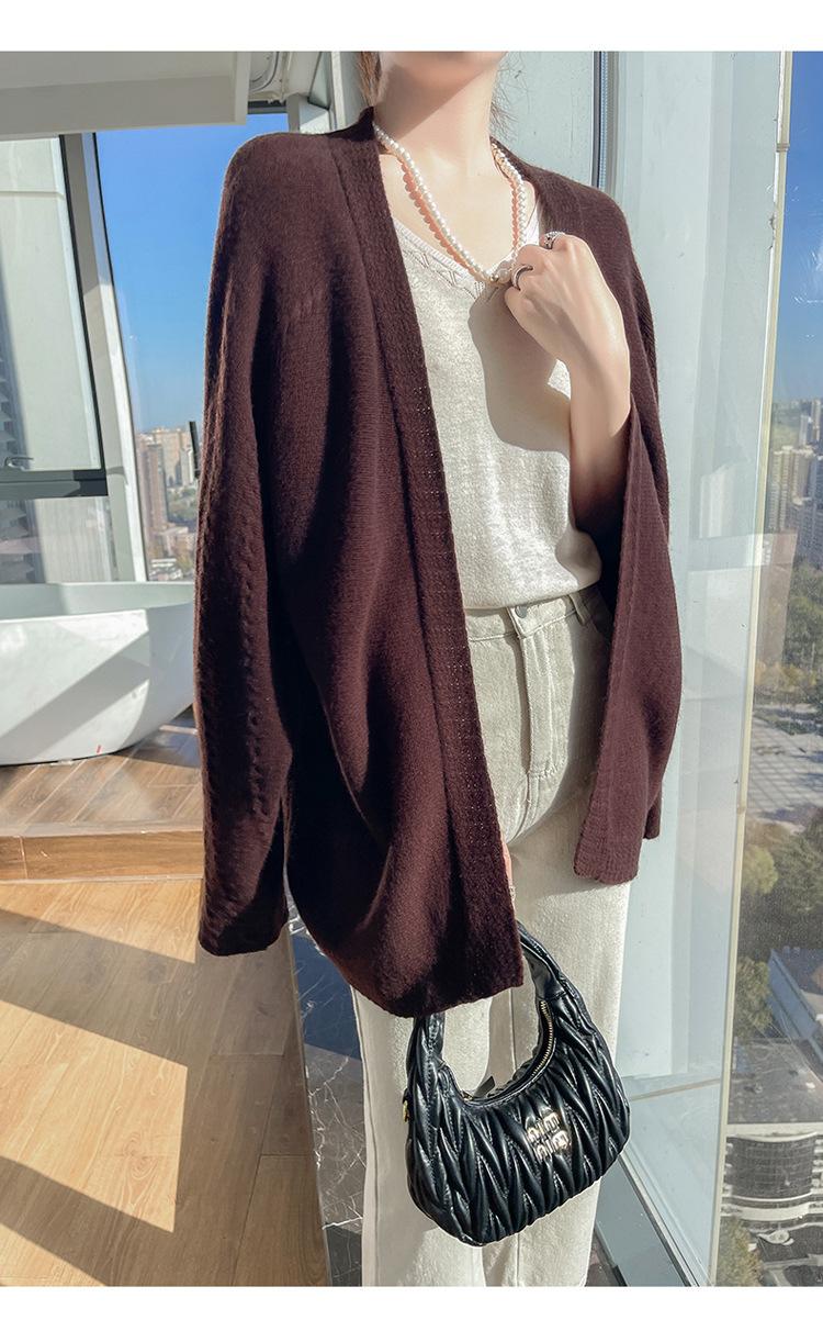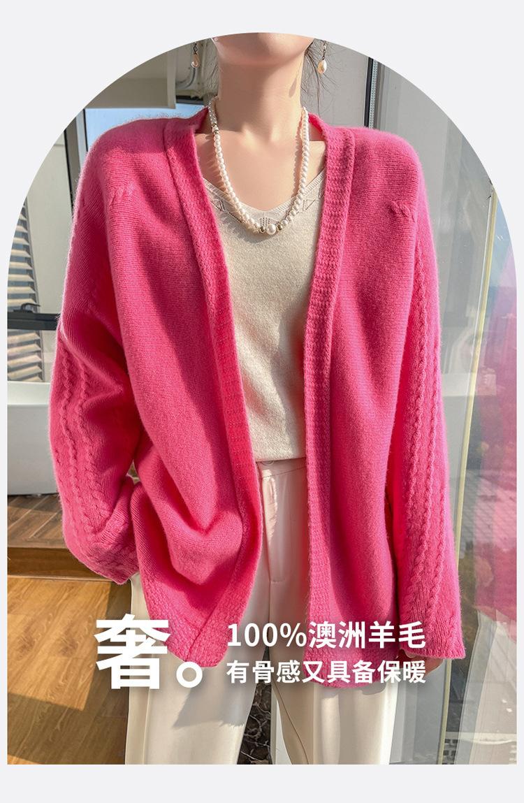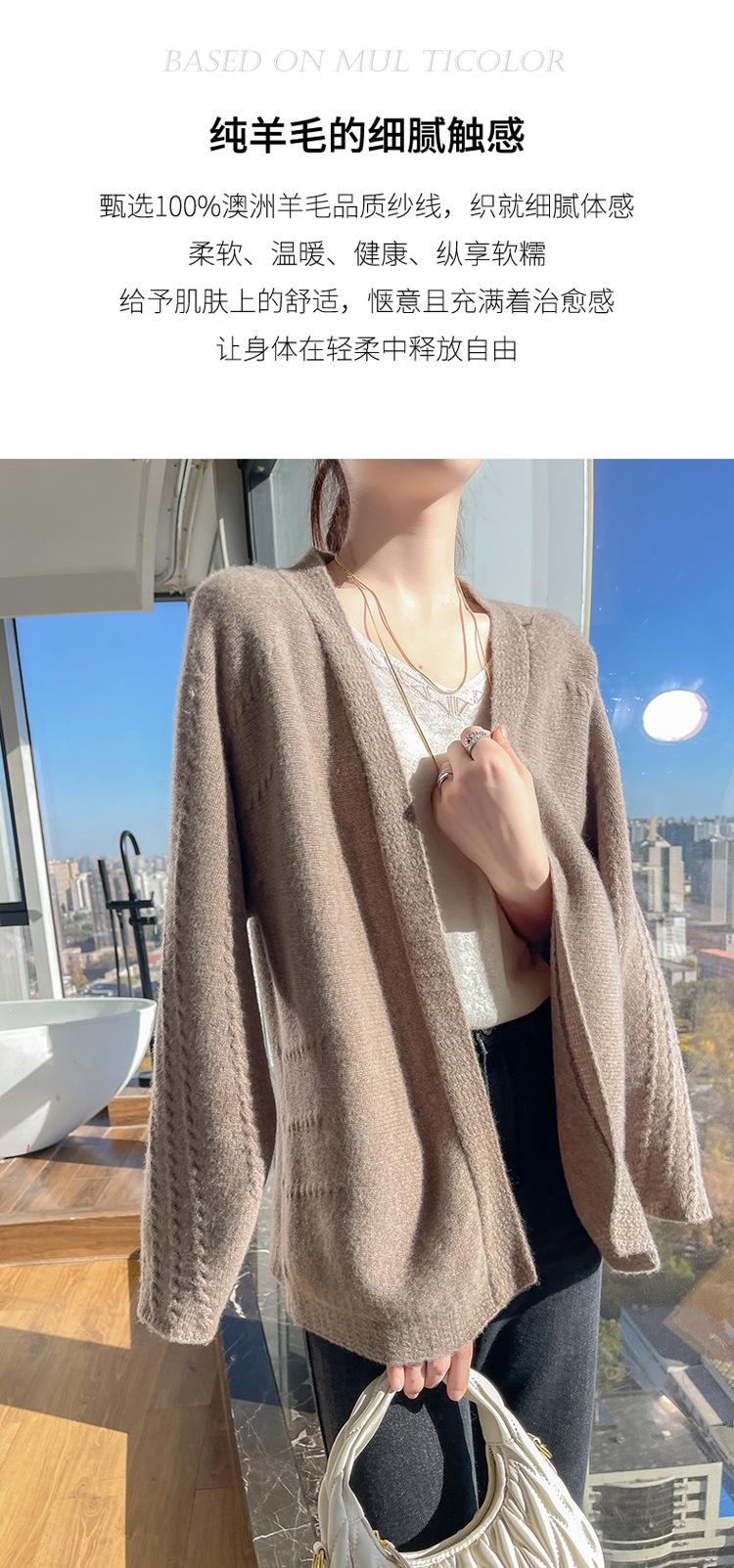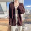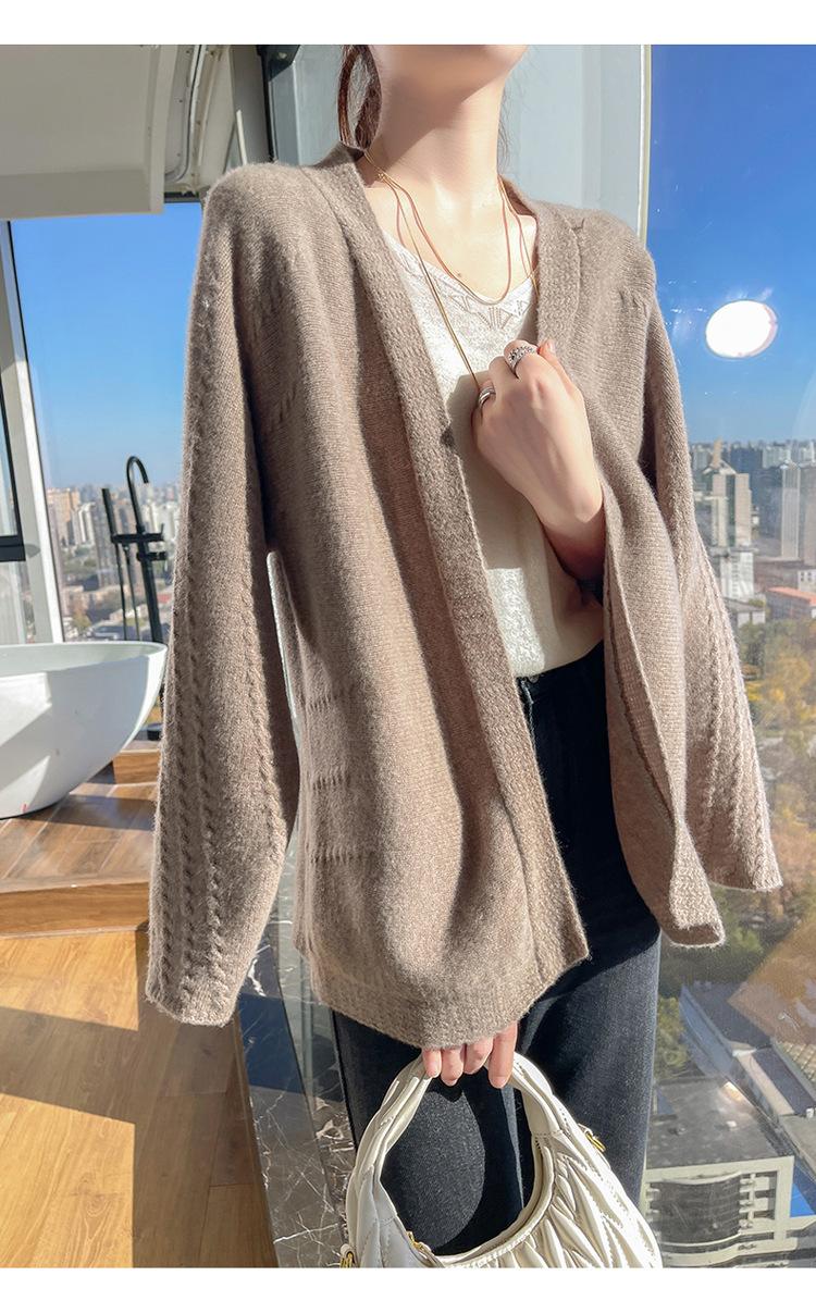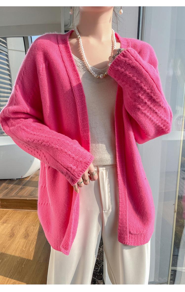 Estilo Coreano Otoño e Invierno Nuevo 2024 Cárdigan de Lana para Mujer Cuello en V Mangas de Hombro Caído Jacquard Grueso Suéter Exterior Cachemira Tejido