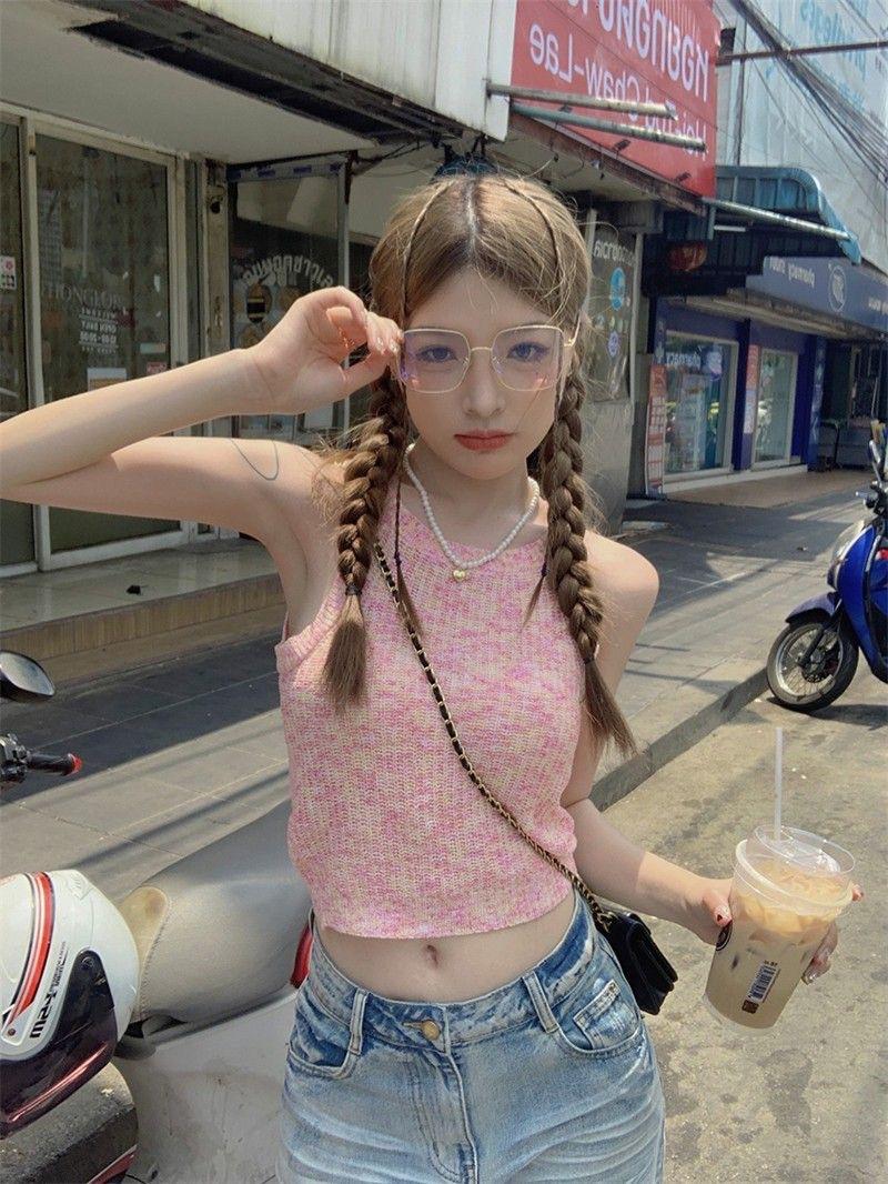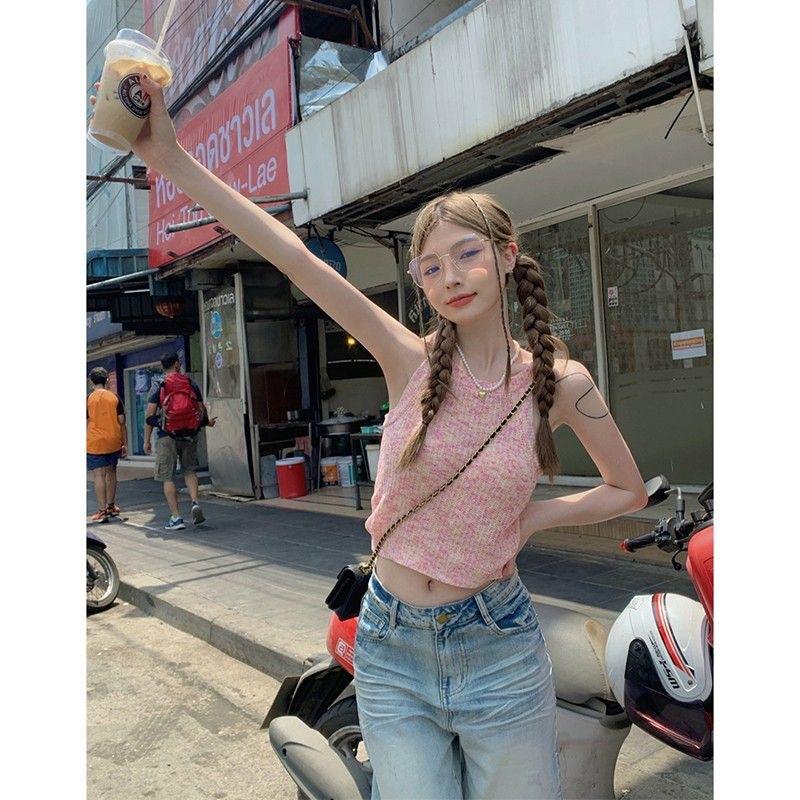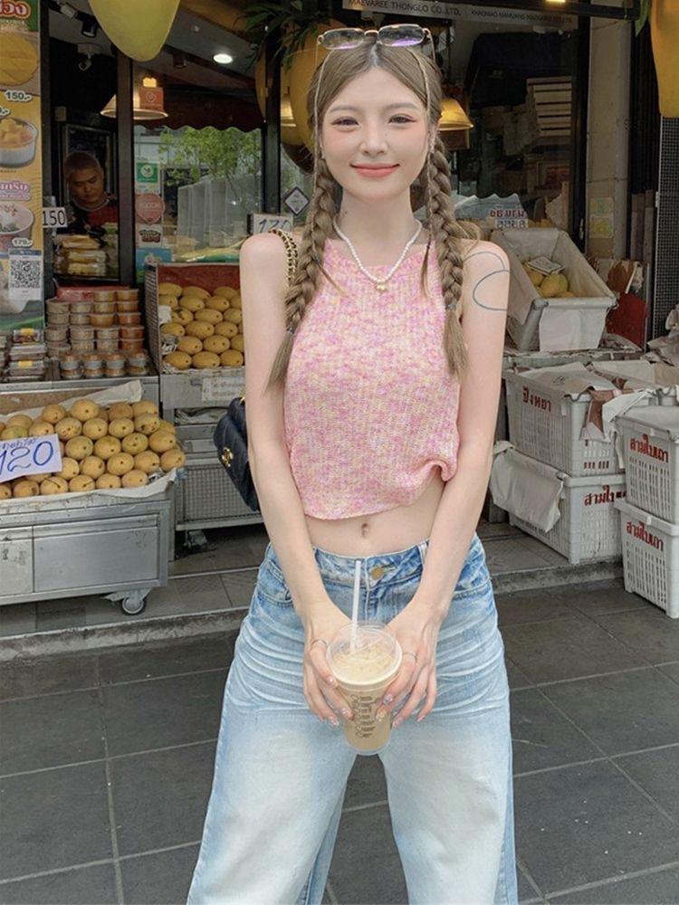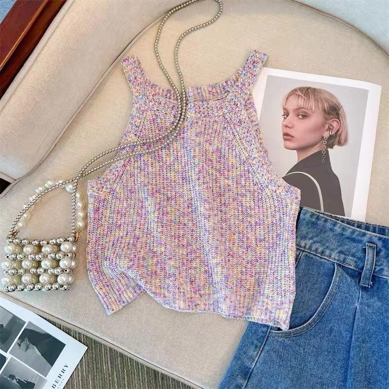 Camisola de punto corta con hombros descubiertos para chica dulce y sexy, nueva prenda exterior de verano para mujer, diseño adelgazante y ajustado.