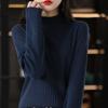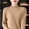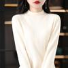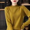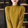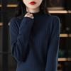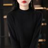 Otoño e Invierno Algodón Peinado Cuello Alto Medio Ropa de Punto para Fondo Jersey de Mujer Cálido de Manga Larga Corto Color Puro Versátil Top